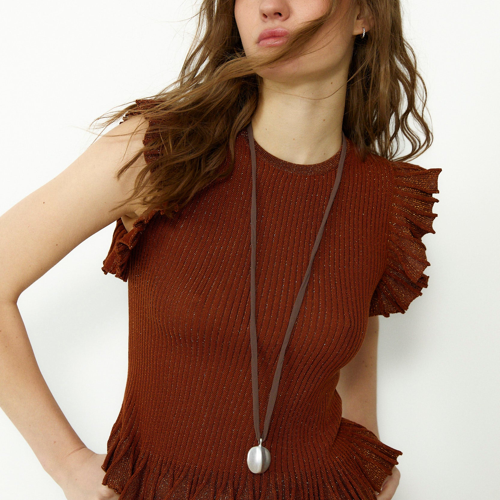 JOY | Brown Ribbed Knit Top