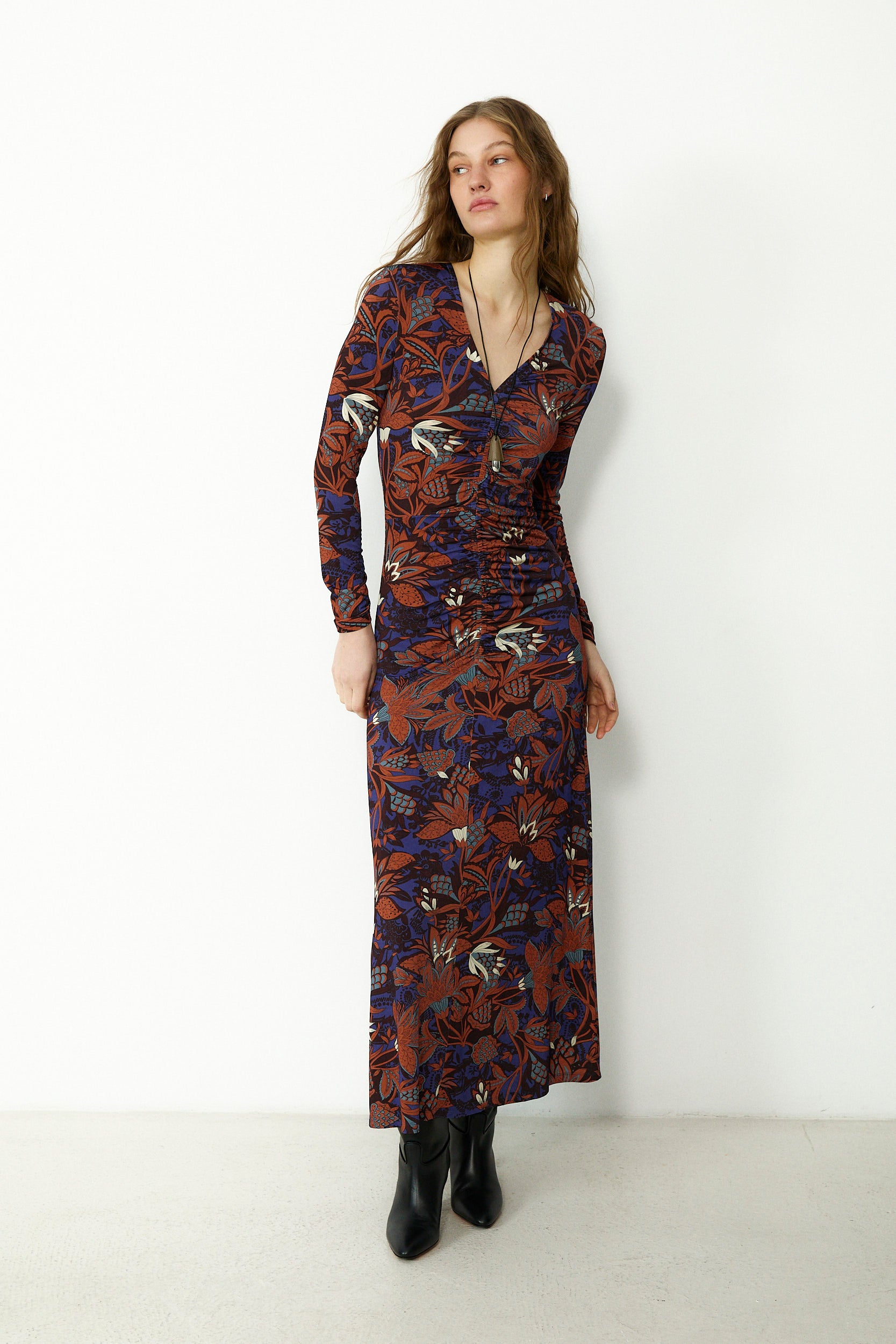 SIENNA | Indigo Blue Ruched Cotton Midi Dress
