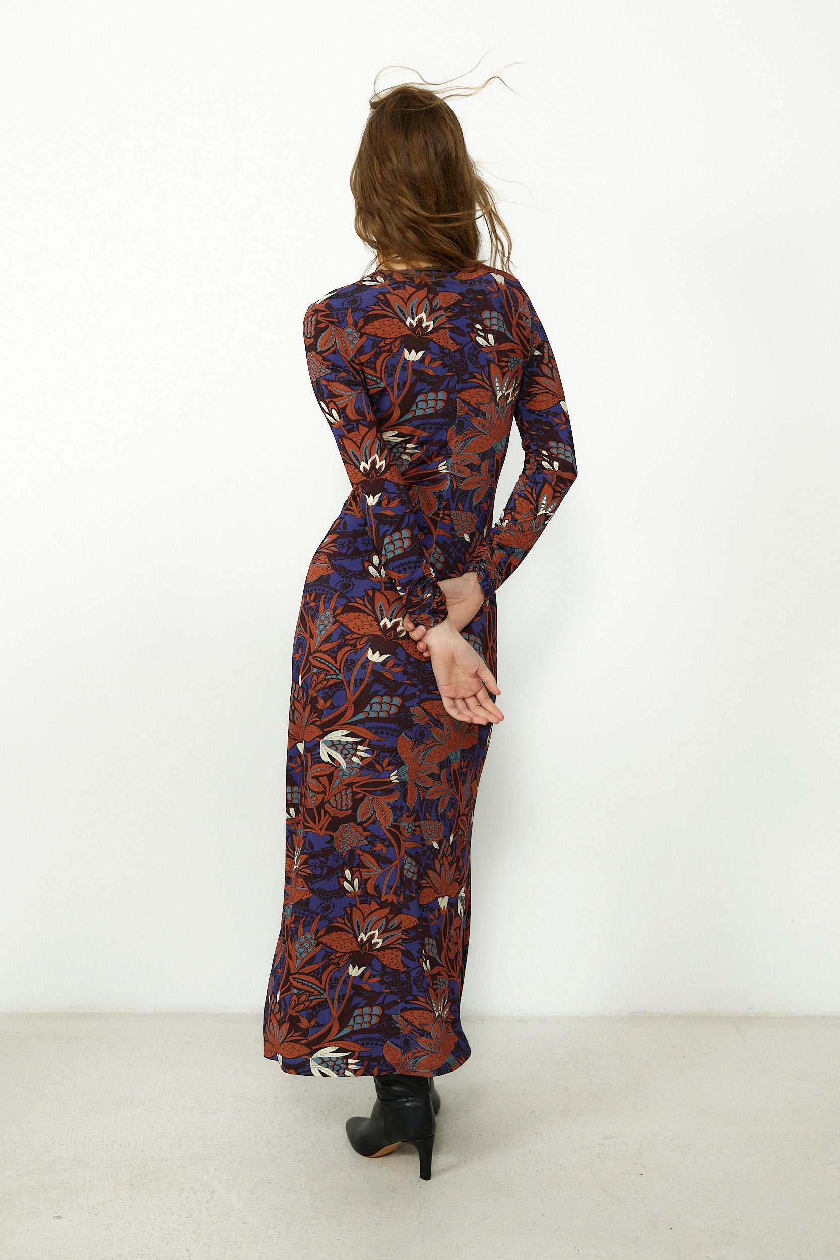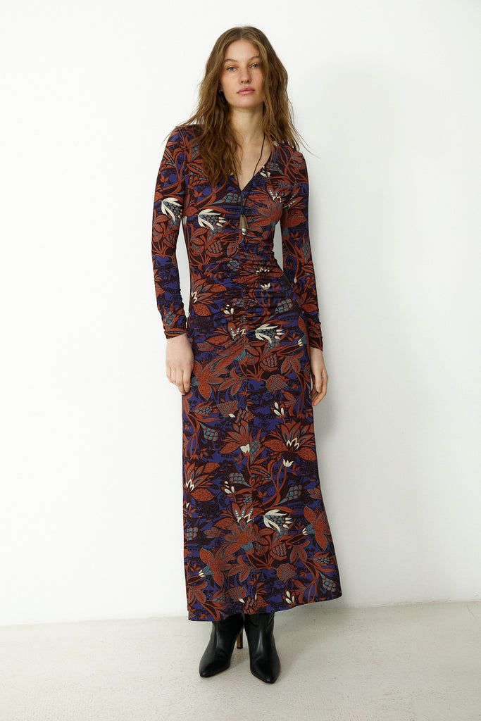 LUCY | Brown Printed Long Sleeve Midi Dress