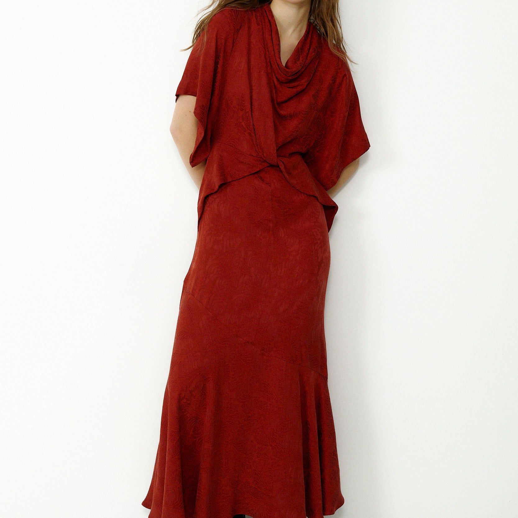 NATALIA | Claret Satin Midi Skirt