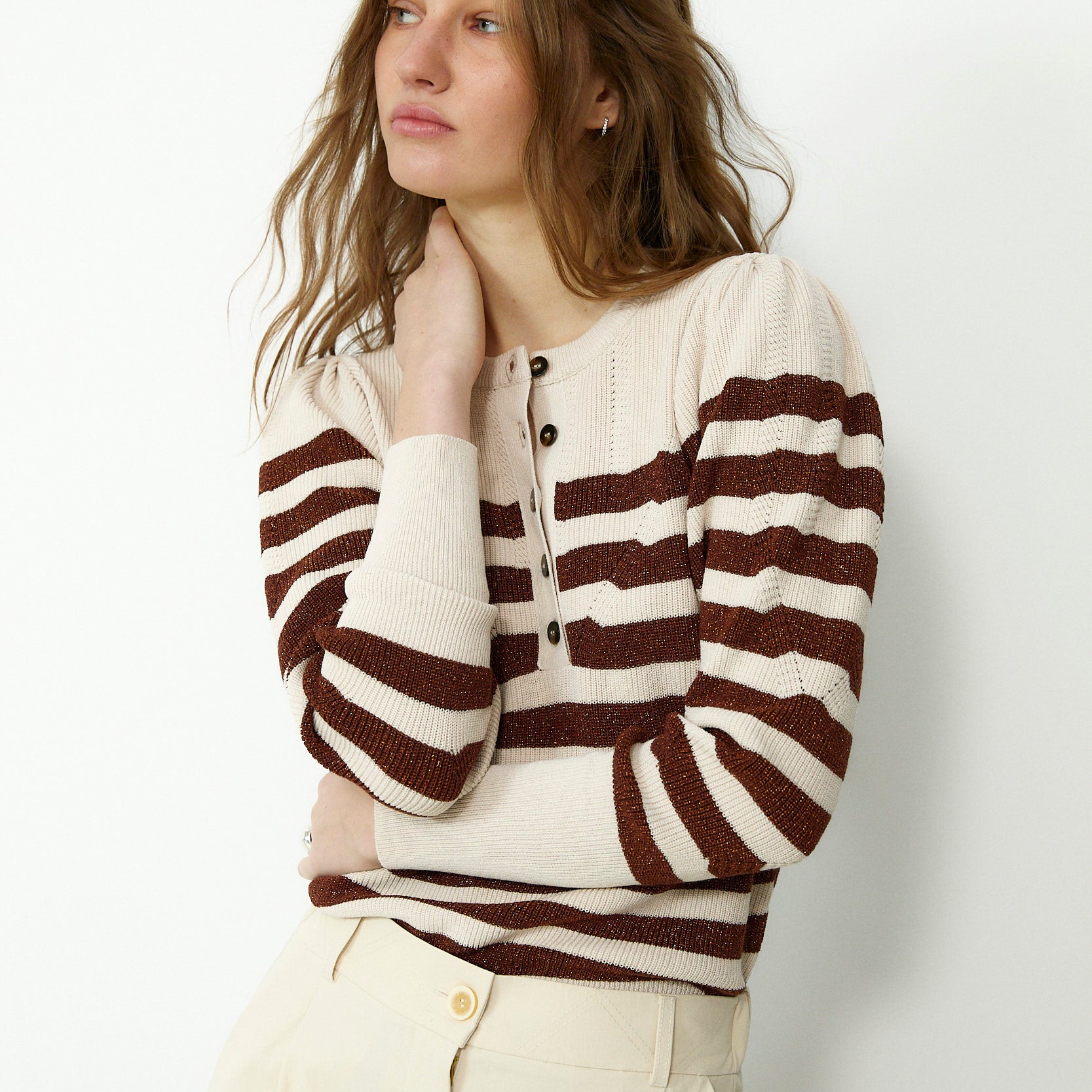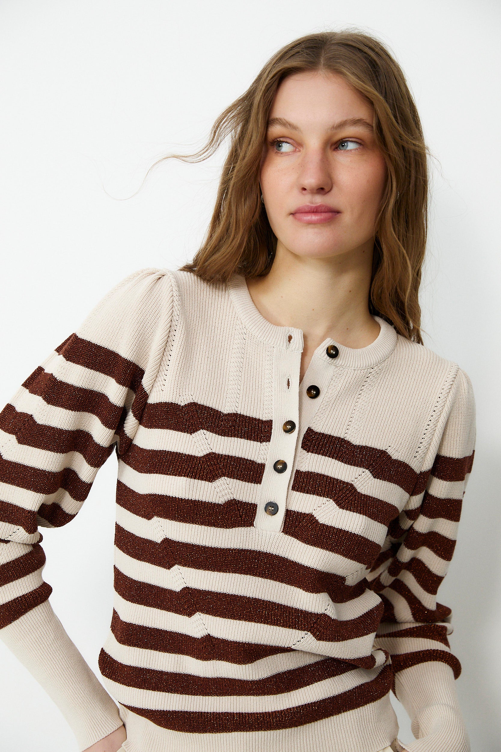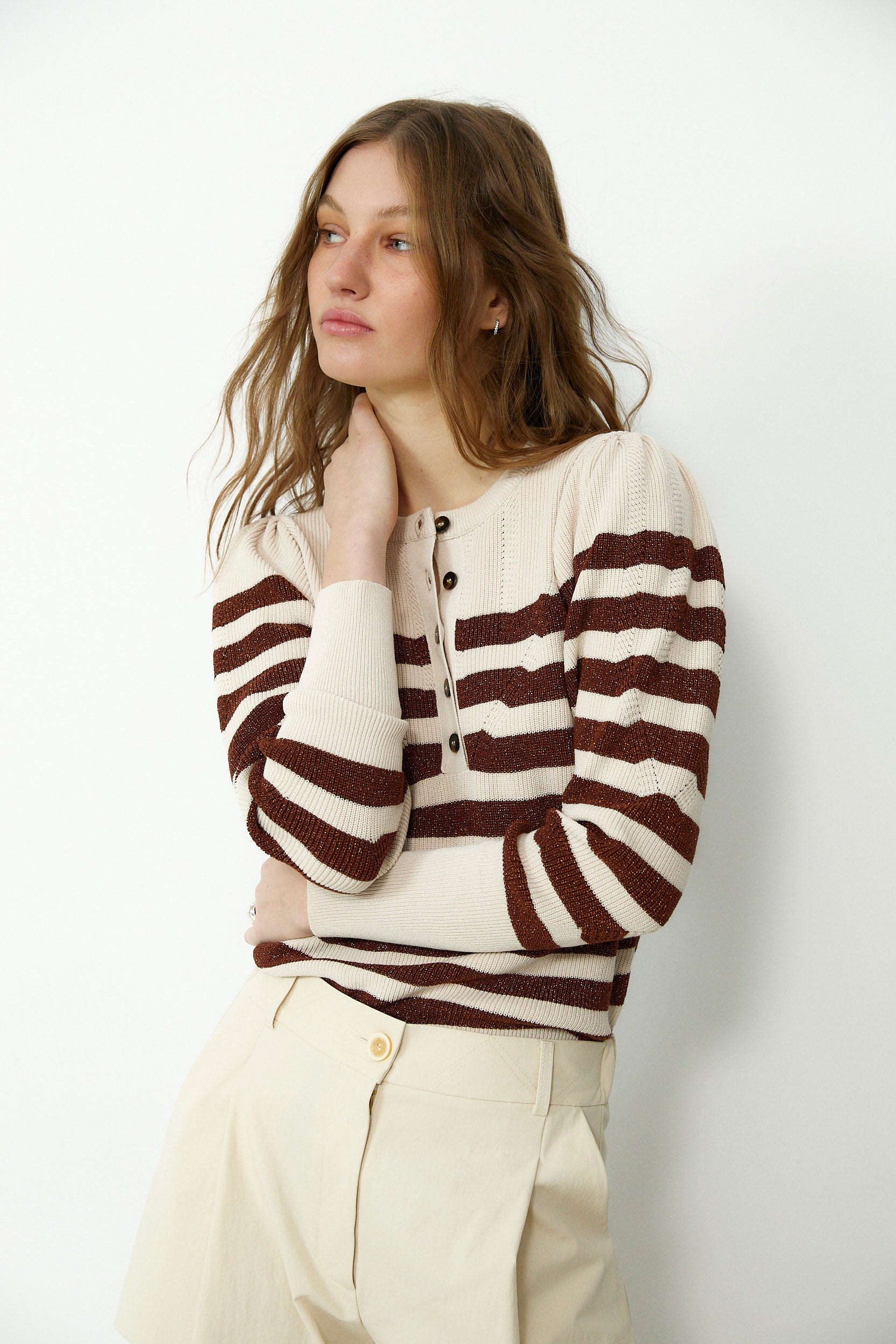 SABRINA | Metallic Brown & Cream Striped Knit Sweater