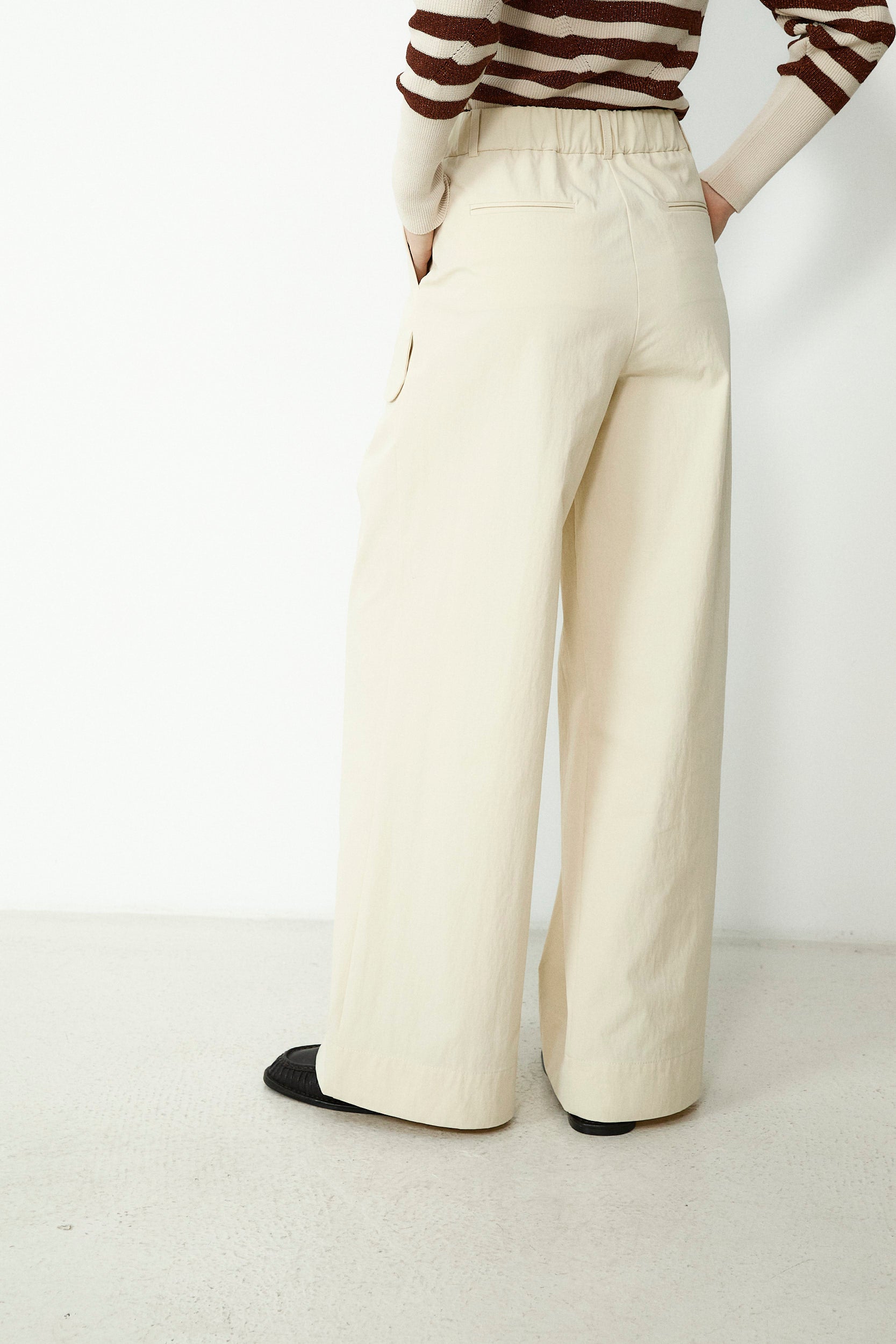 ODETTE | Beige Cotton Wide Leg Trousers