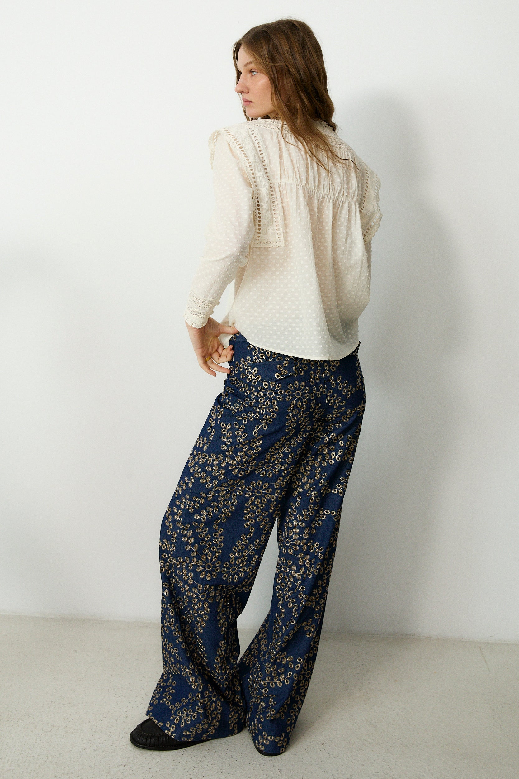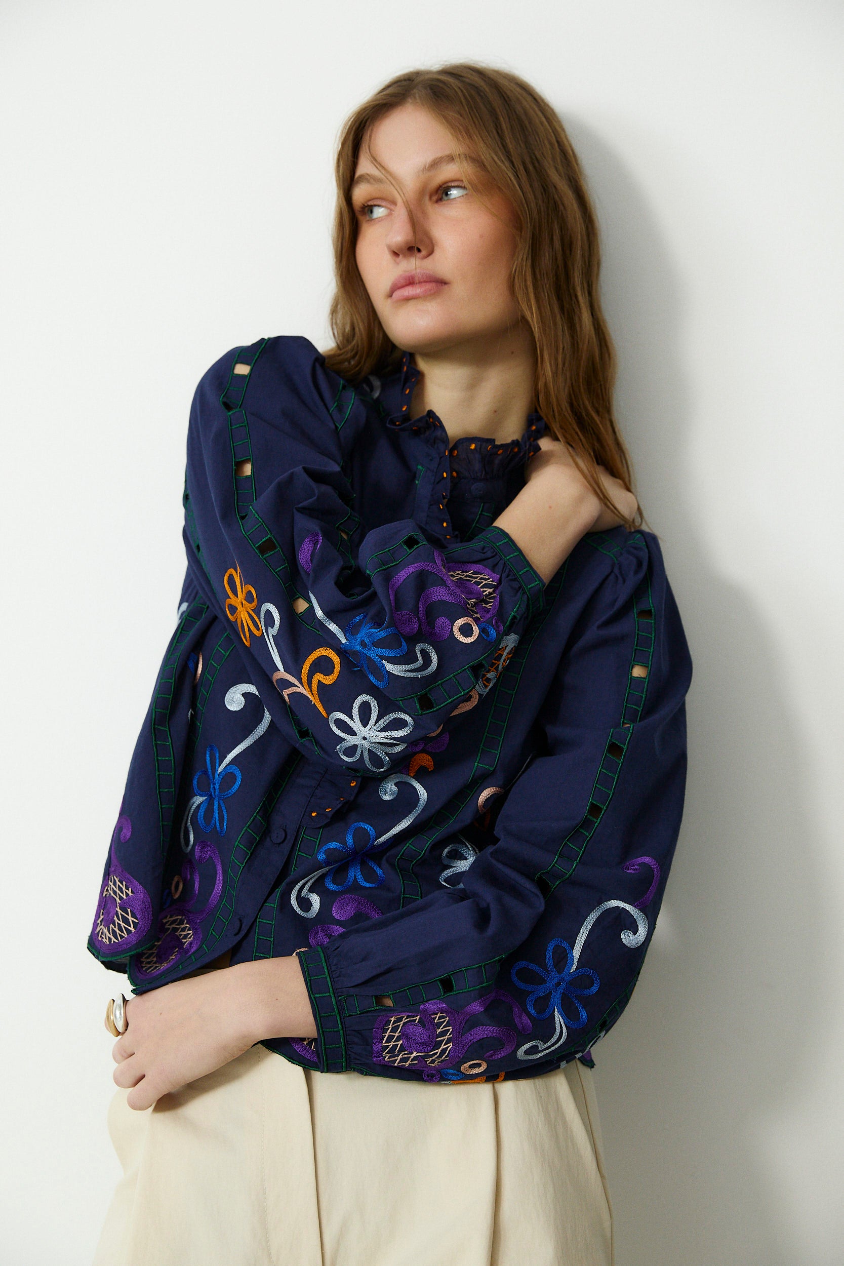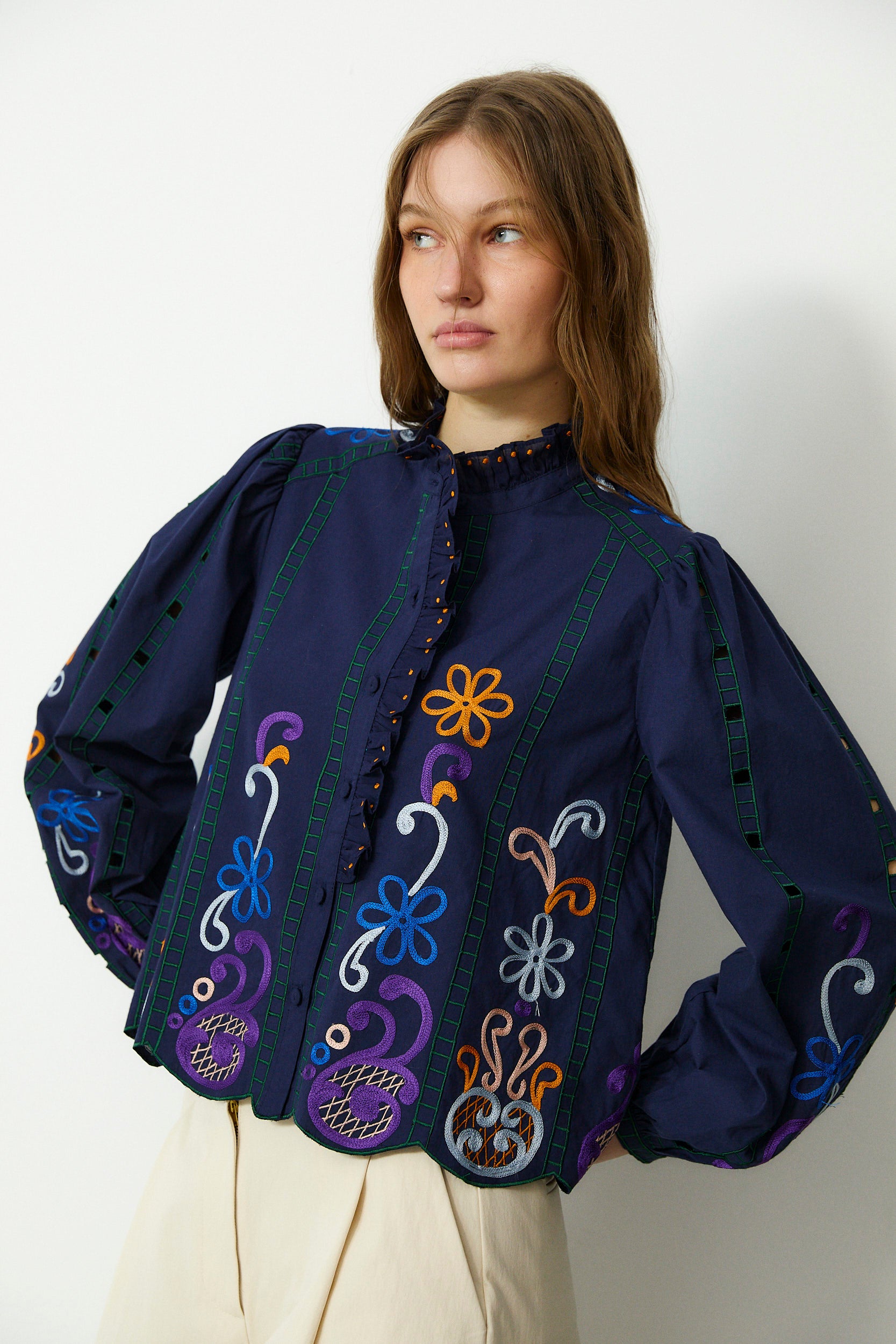MADIE | Navy Embroidered Cotton Blouse