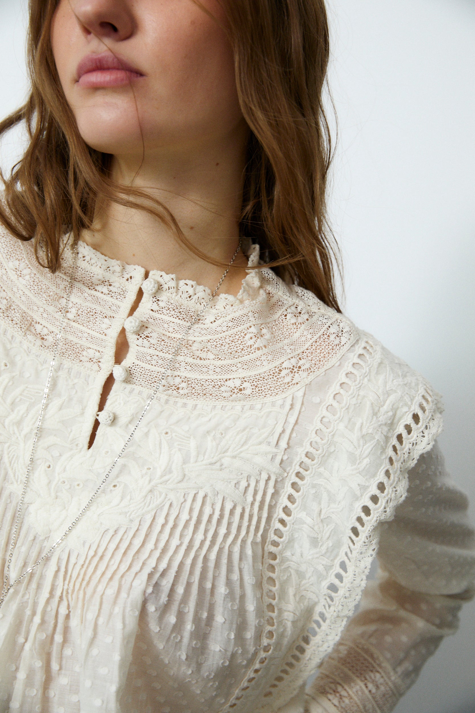 ORGANDELA | Ivory Pleated Cotton Blouse