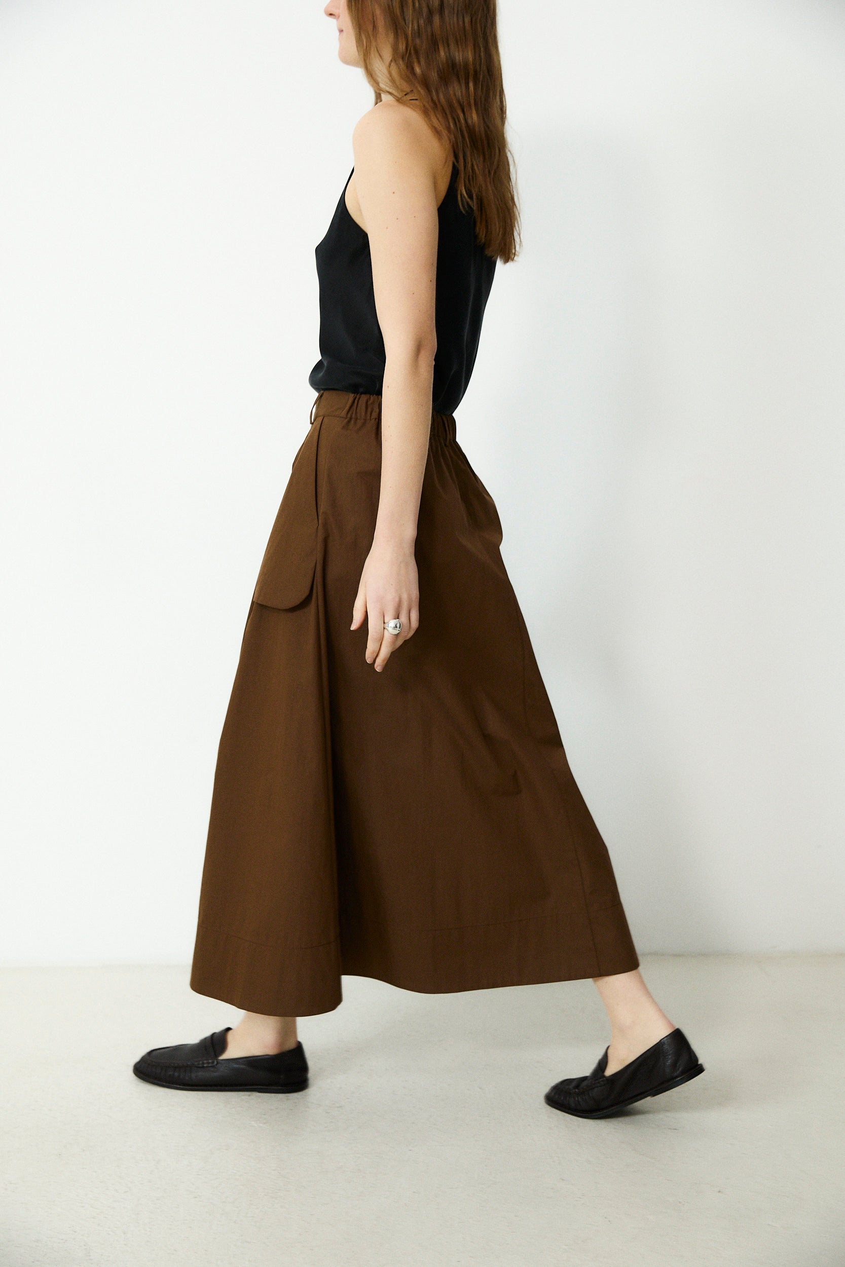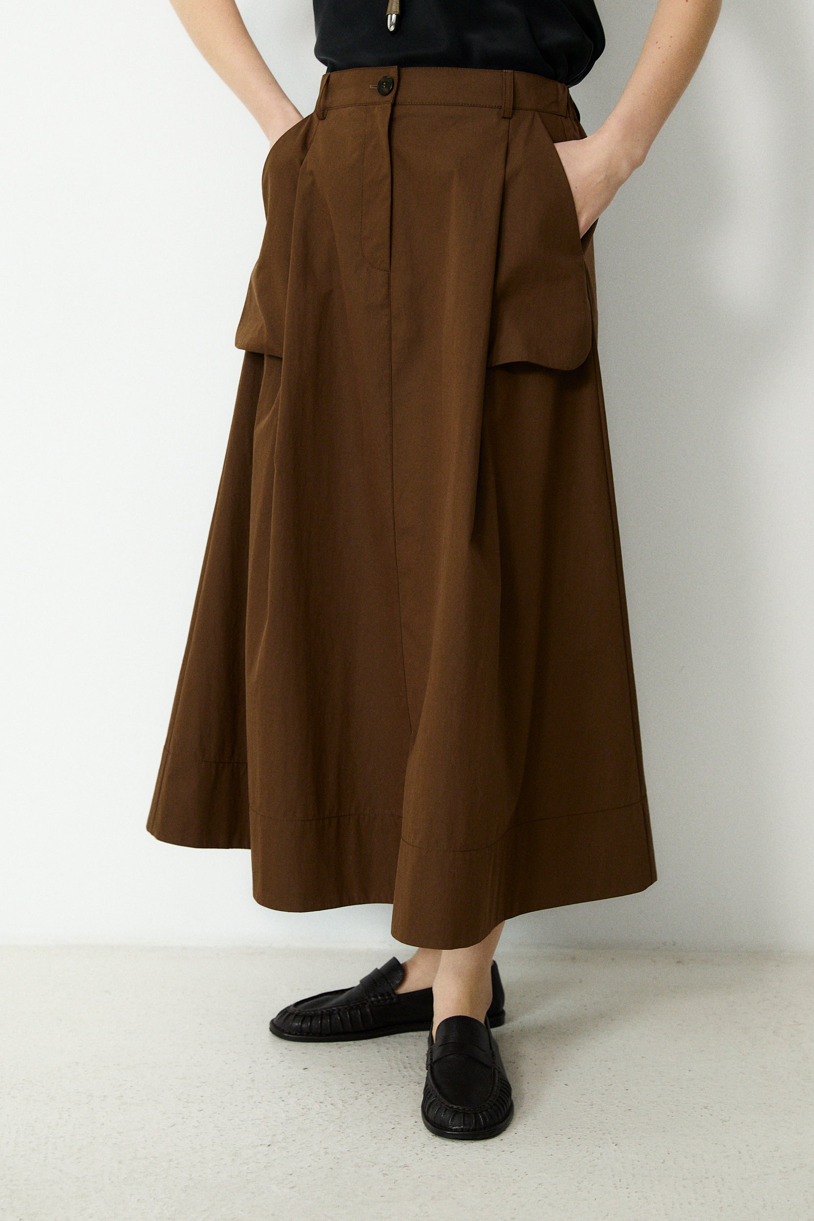ODETTE | Brown Cotton Midi Skirt
