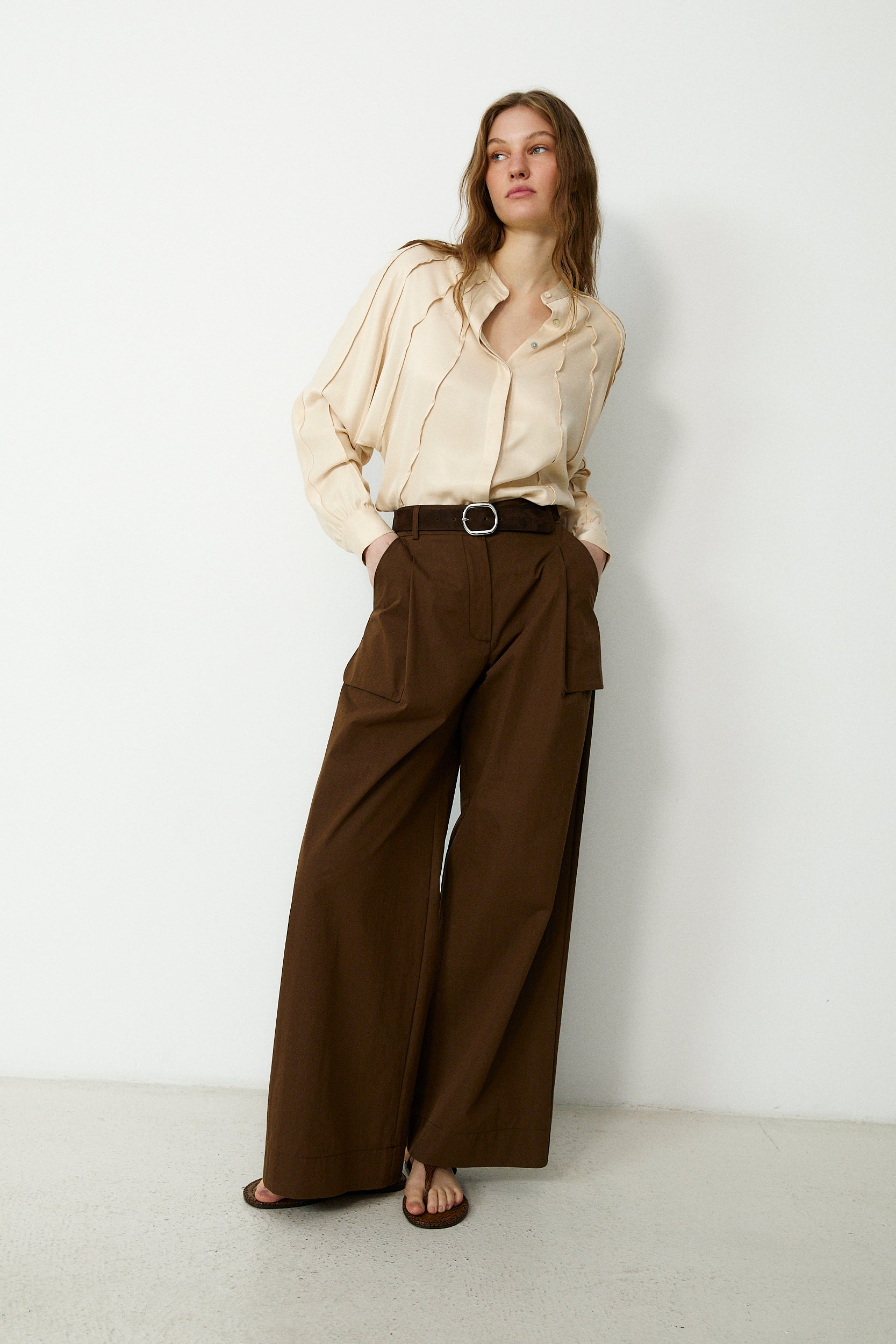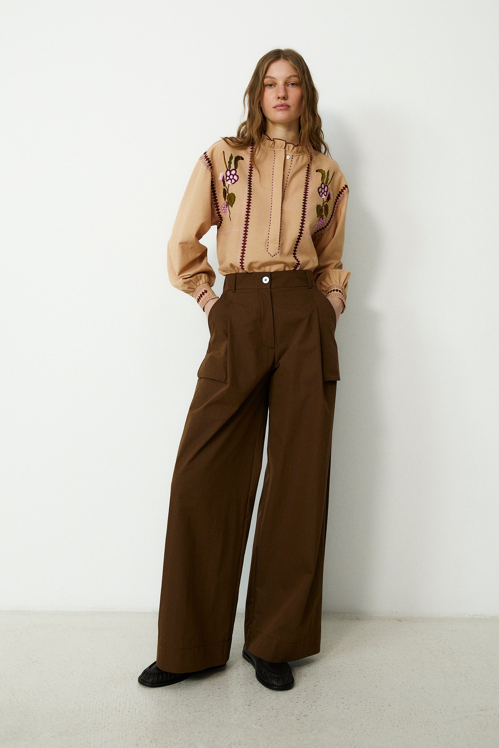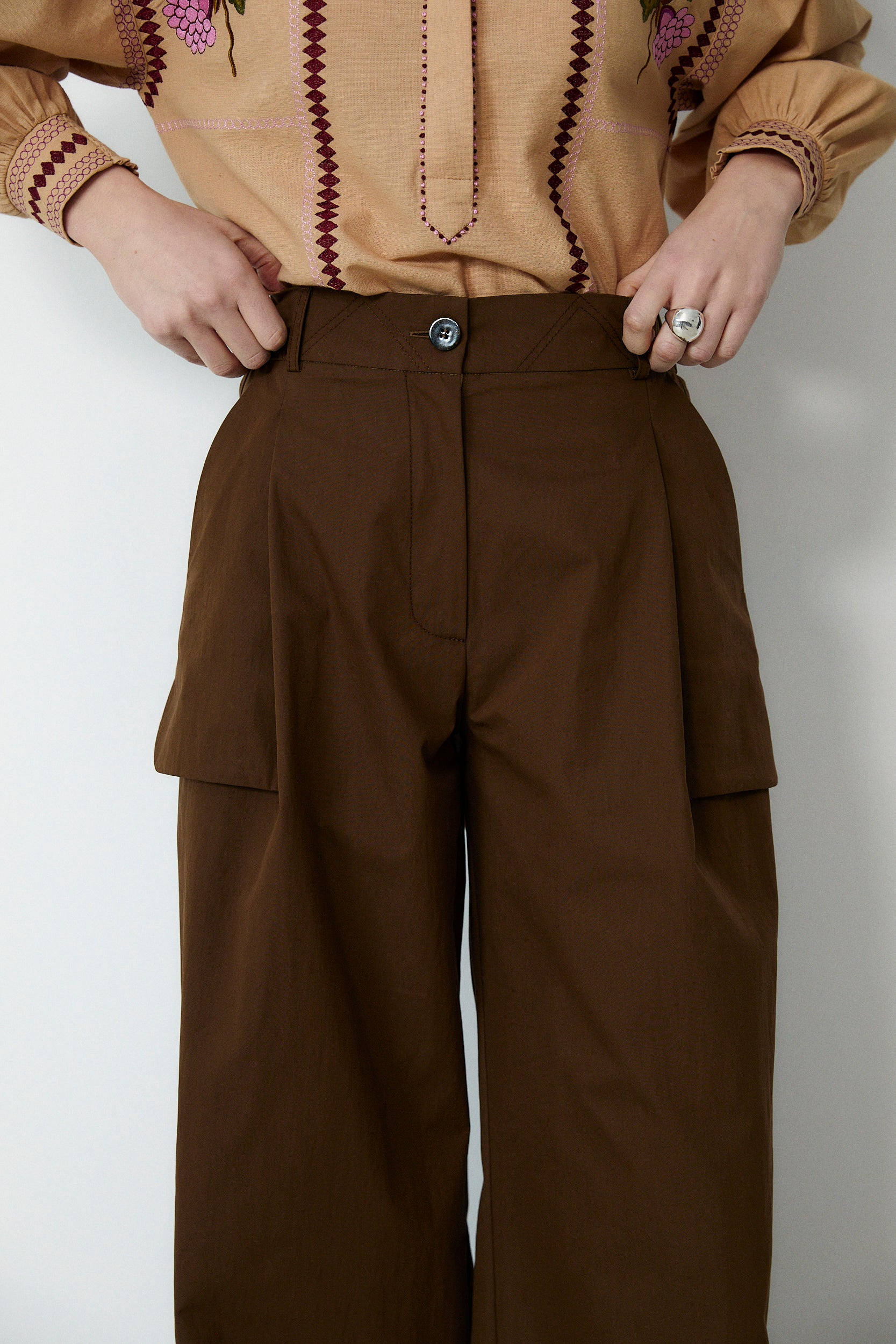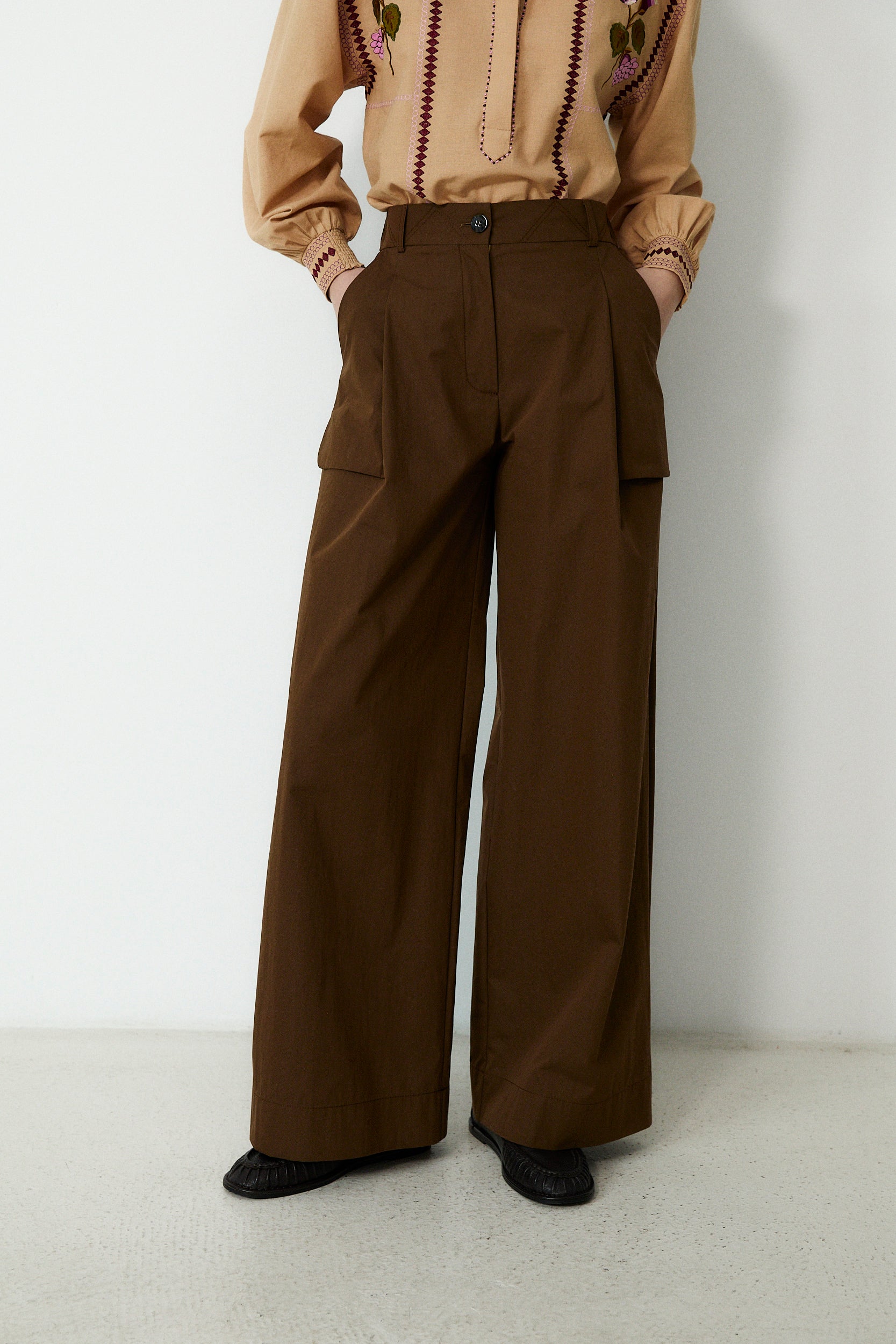 ODETTE | Brown Cotton Wide Leg Trousers