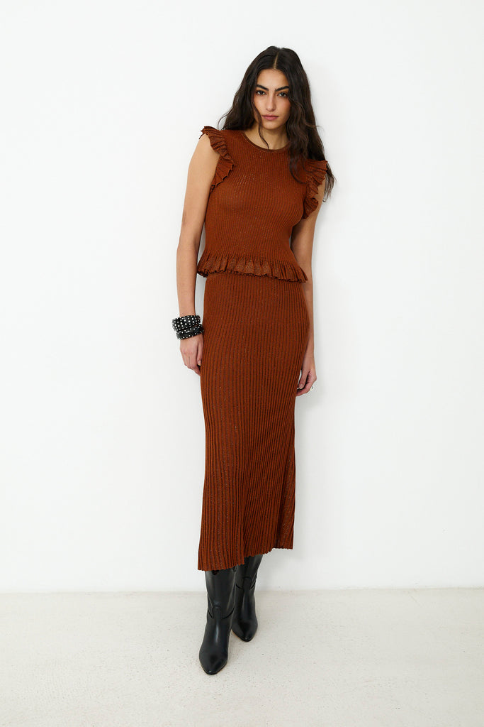 JOY | Brown Ribbed Knit Skirt
