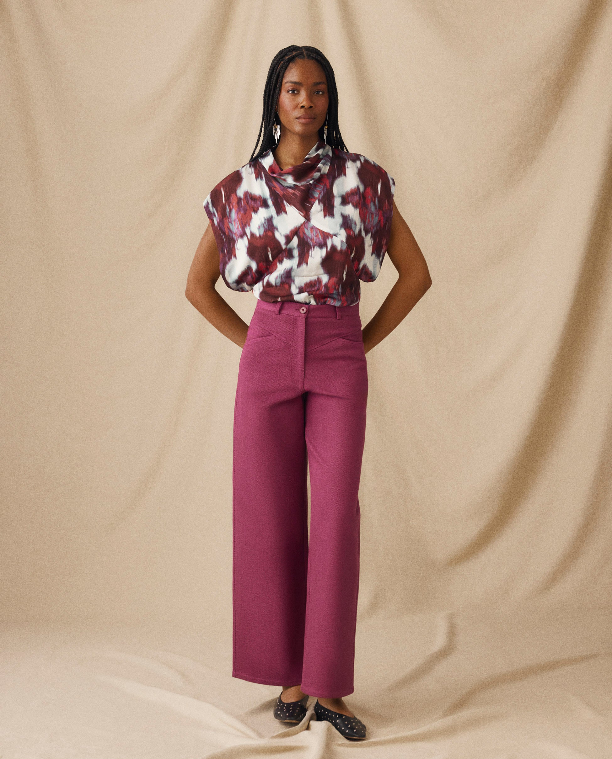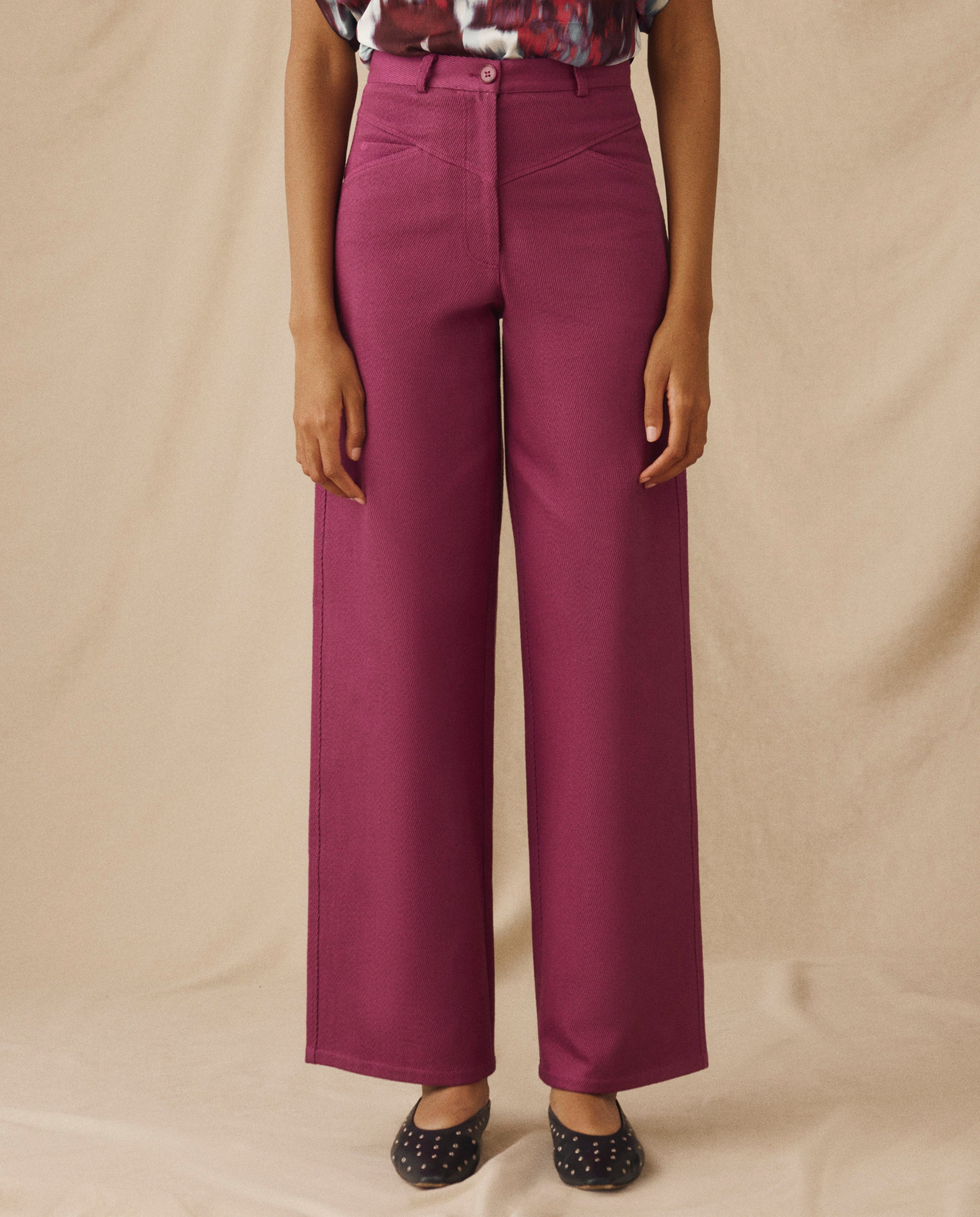 CAPUCINE | Magenta Cotton Wide-Leg Trousers