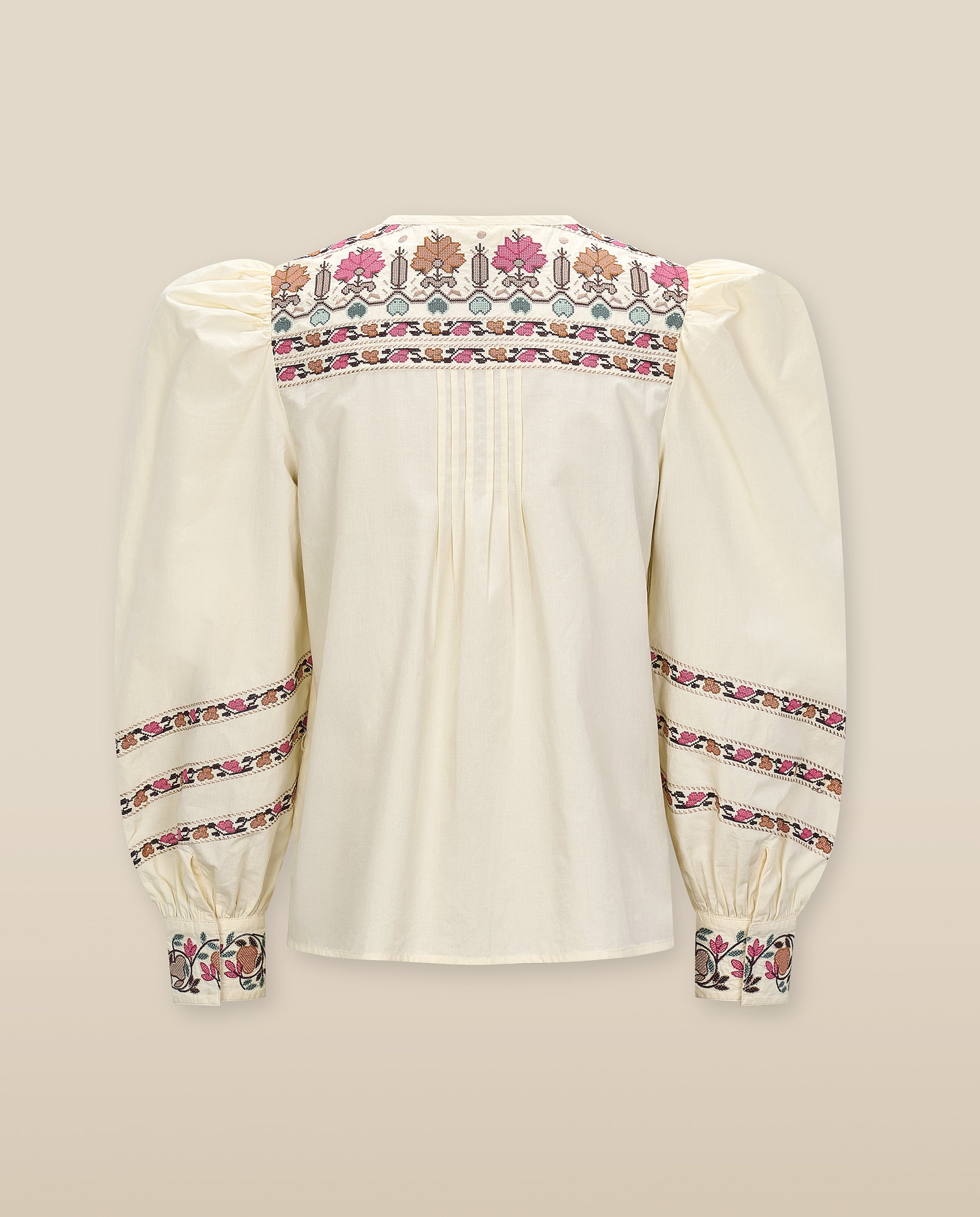 DEVIKA | Cream Flower Embroidery Cotton Blouse