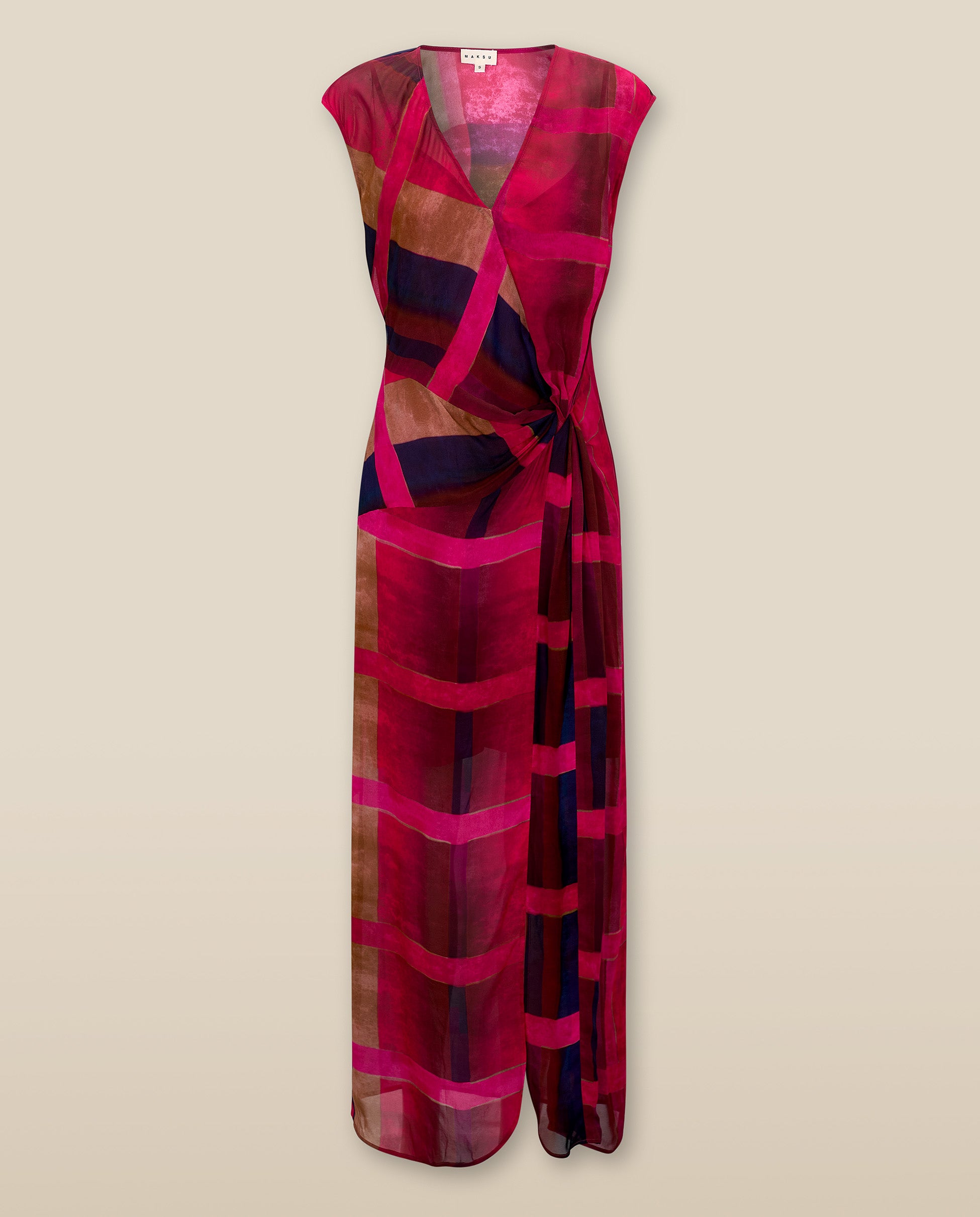 Celebrate vibrant style in the Dorothea Dress, where bold prints meet MAKSU’s breezy elegance. Designed in a lightweight, semi-sheer fabric, it drapes with fluid grace, allowing every movement to exude understated glamour. A relaxed silhouette drapes beautifully over the body, while sculptural accents and a subtle waist twist highlight your figure in a quietly sophisticated way. From garden parties to evening cocktails, this statement-making design ensures a standout finish.