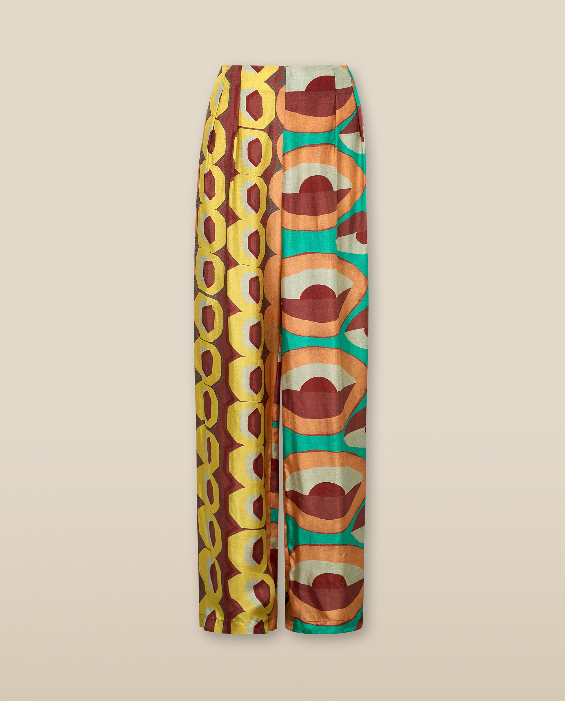 EMBER | Multicoloured Geometric Print Satin Wide Leg Trousers