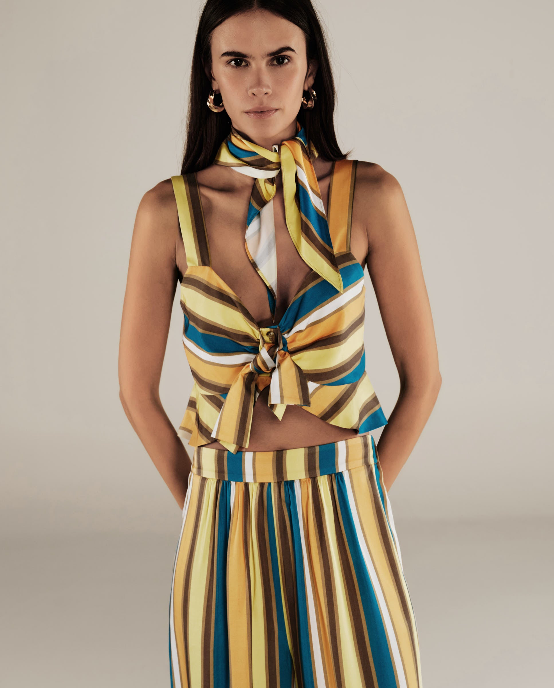 EYRE | Multicoloured Stripe Tie Front Crop Blouse
