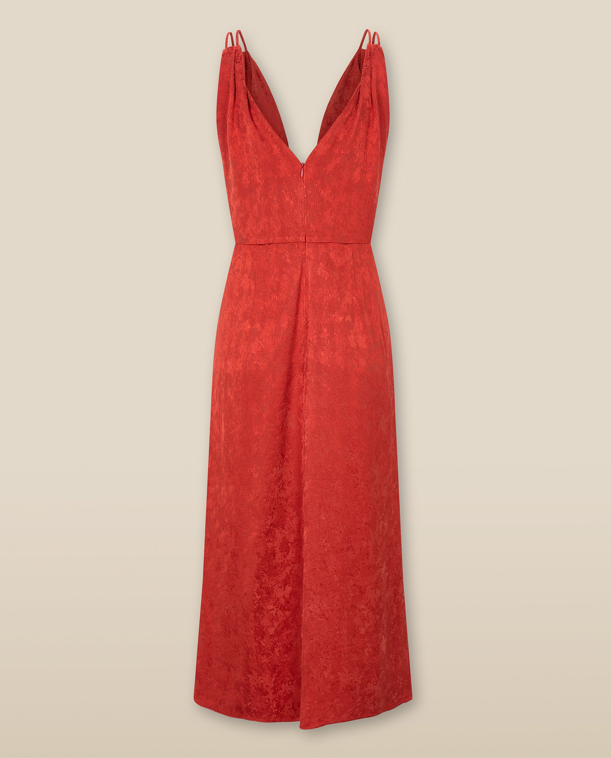 LATINA | Red Jacquard Twist Front V-Neck Midi Dress