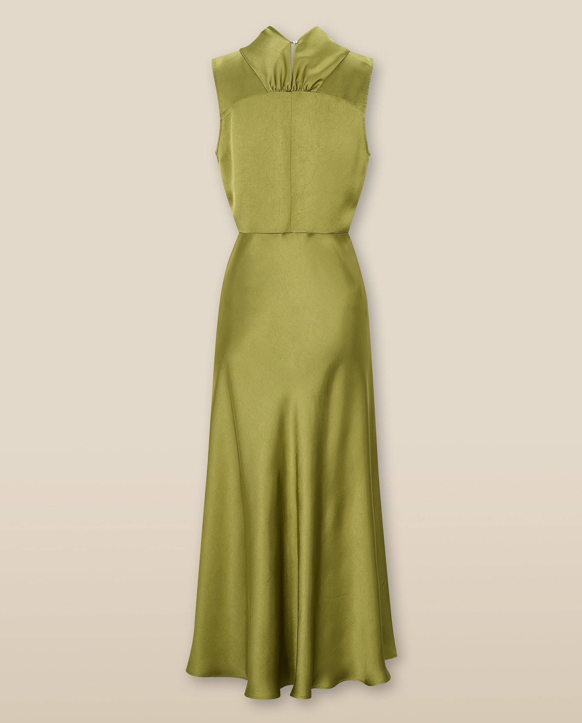 Radiant and refined, the Ranya Dress in green embodies timeless sophistication. Crafted from luxurious satin with a gentle sheen, this dress offers both elegance and softness, making it perfect for any special occasion. Its vintage-inspired design, featuring a slightly fitted bodice, flatters the figure, while the draped scarf-style neckline adds a touch of refinement and allure. The flowing skirt creates graceful movement, making this dress a breathtaking choice for spring and summer weddings or other elegant events.