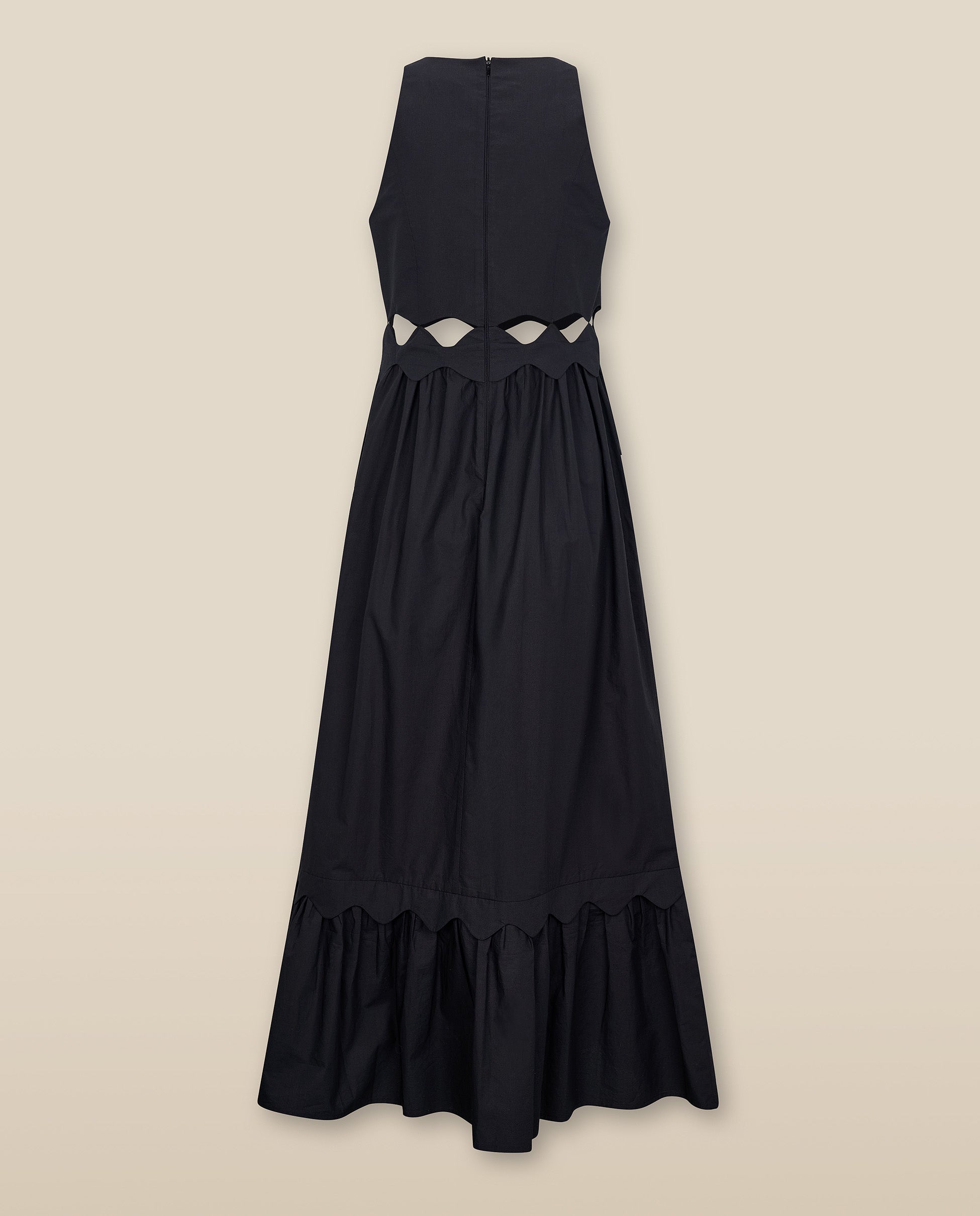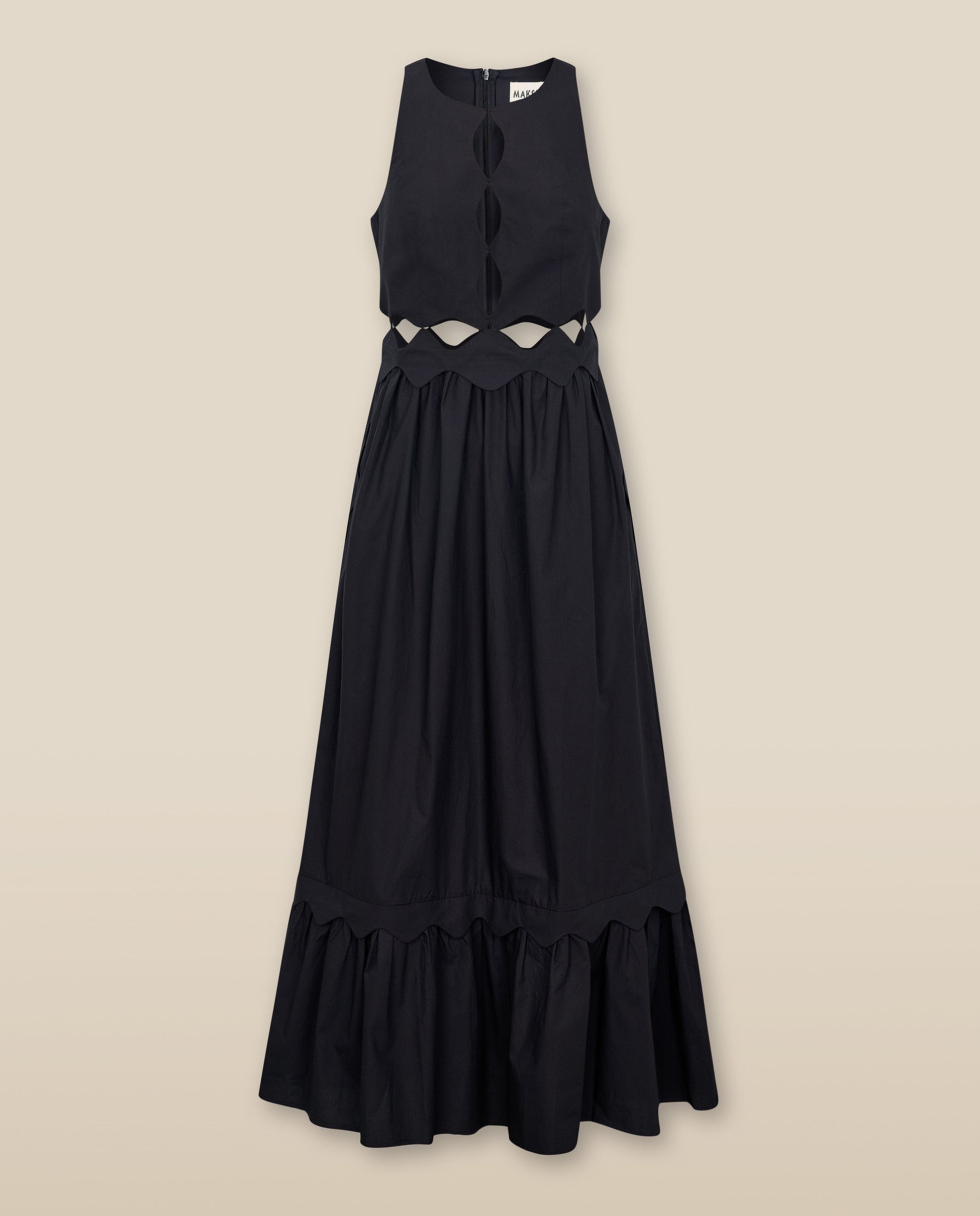 ANUSHA | Black Cut-Out Scallop Cotton Midi Dress