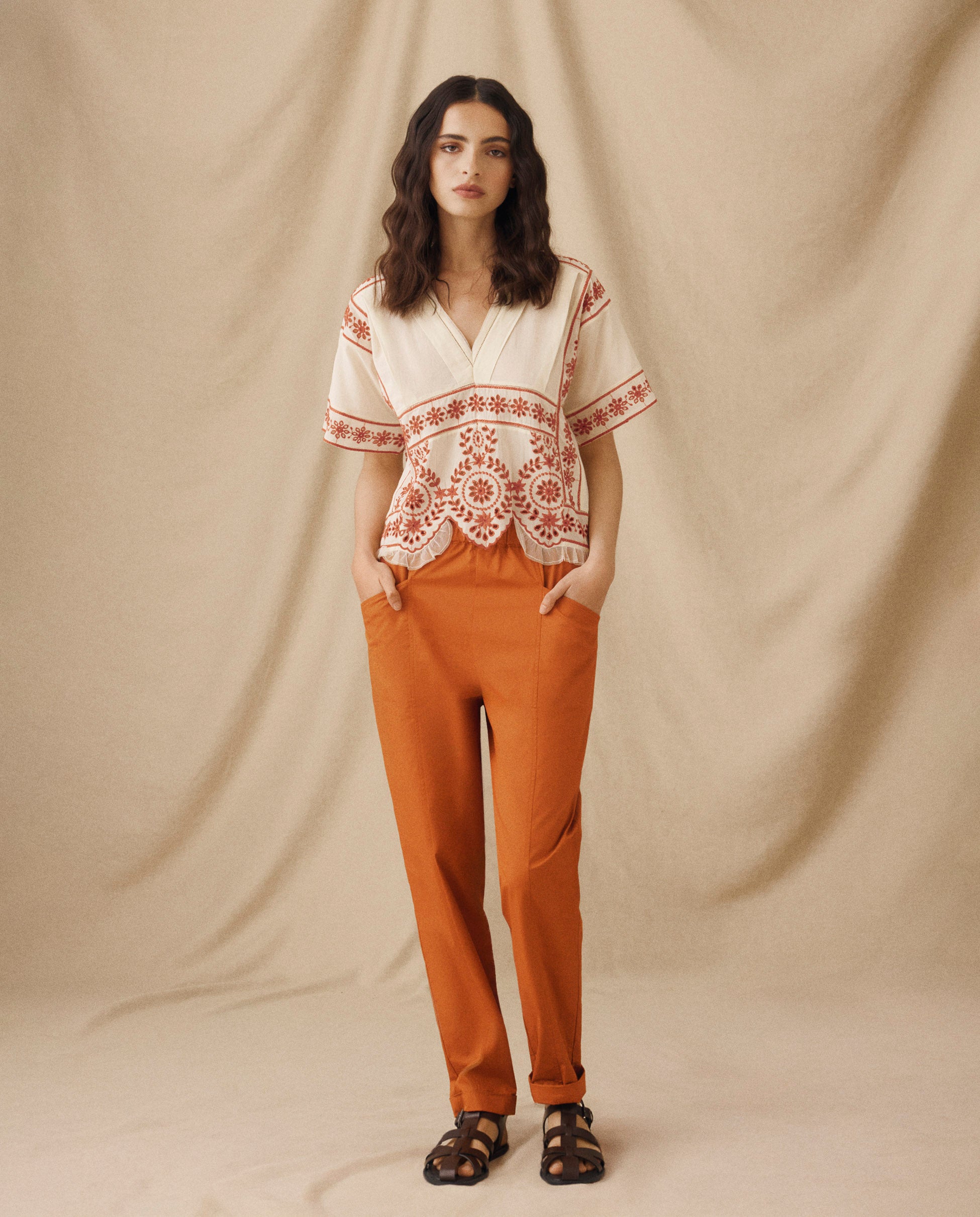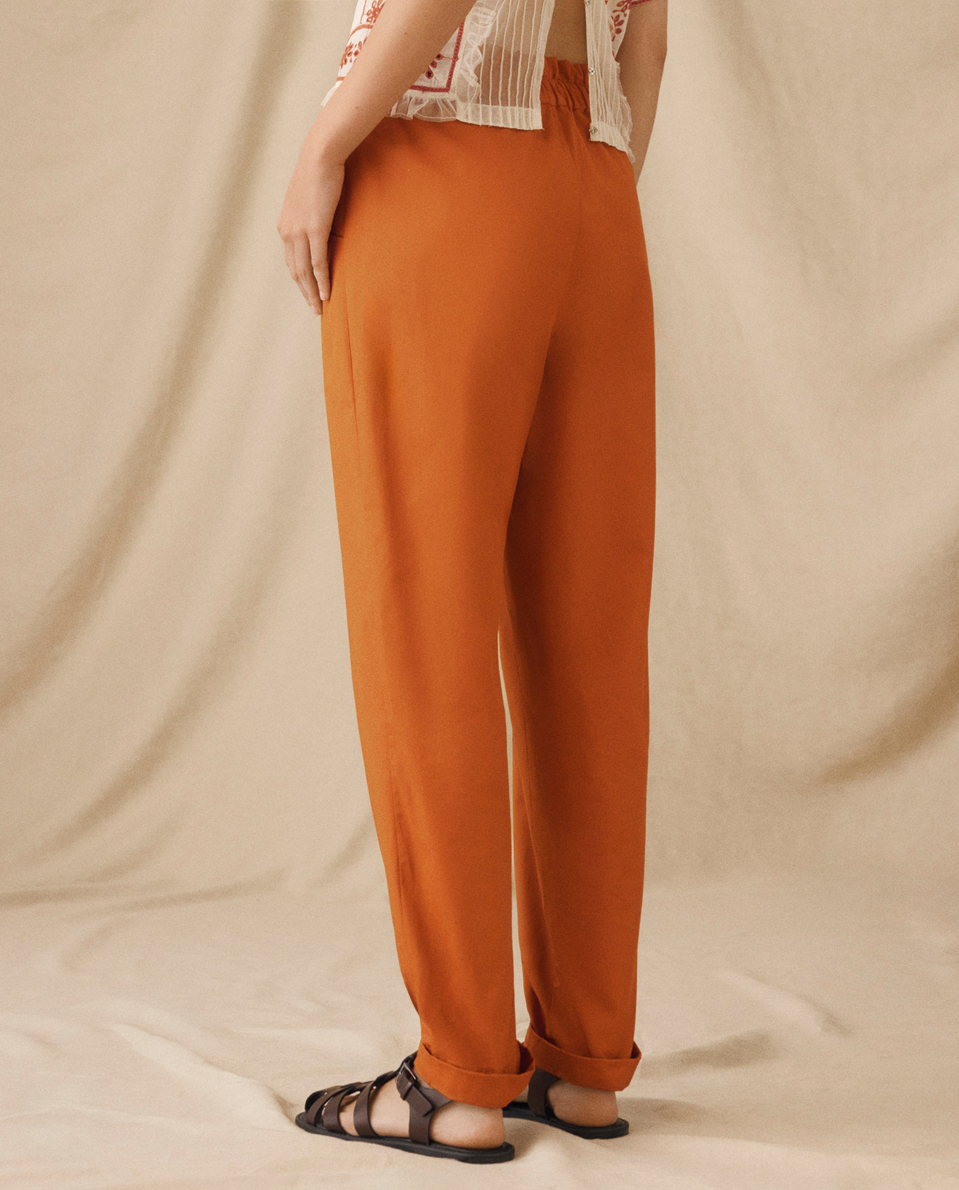 ASTROS | Burnt Orange Cotton Tapered Trousers
