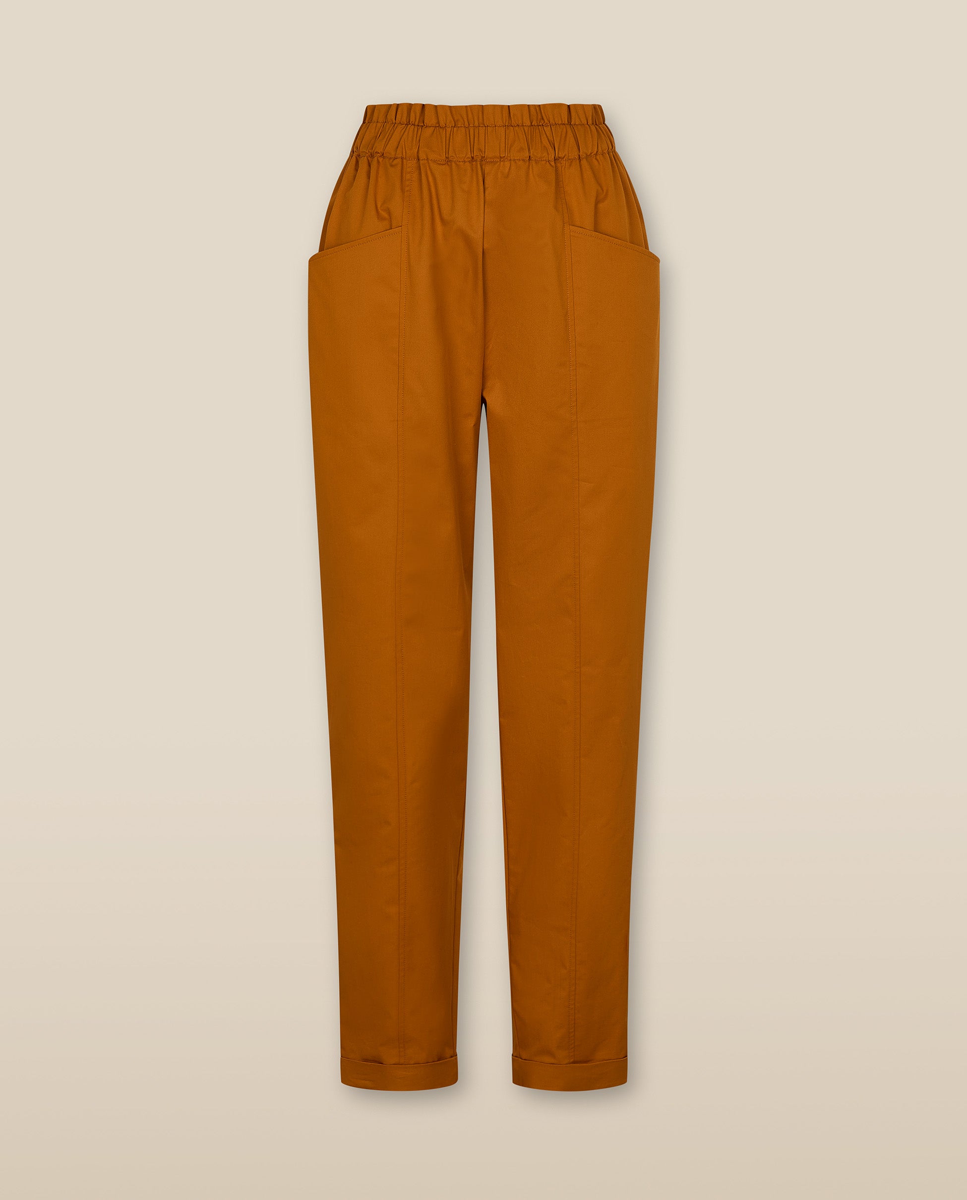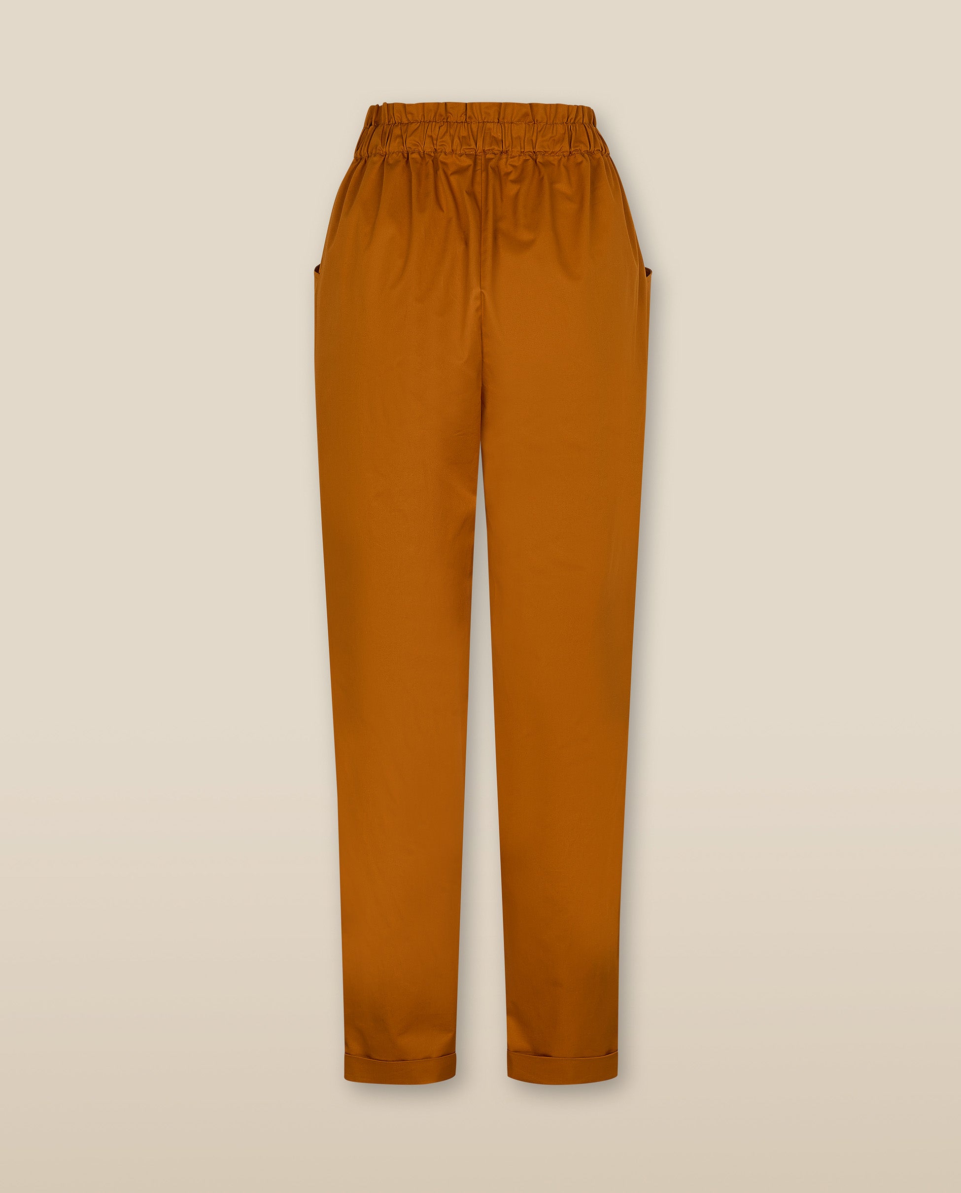 Elevate your everyday wardrobe with the Astros Trousers in burnt orange. Tailored from crisp cotton with a subtle sheen, these tapered trousers combine bold colour with relaxed structure for a fresh take on casual refinement. The elasticated waist and oversized pockets nod to utilitarian ease, while the clean front seams and ankle-grazing length add a polished finish.