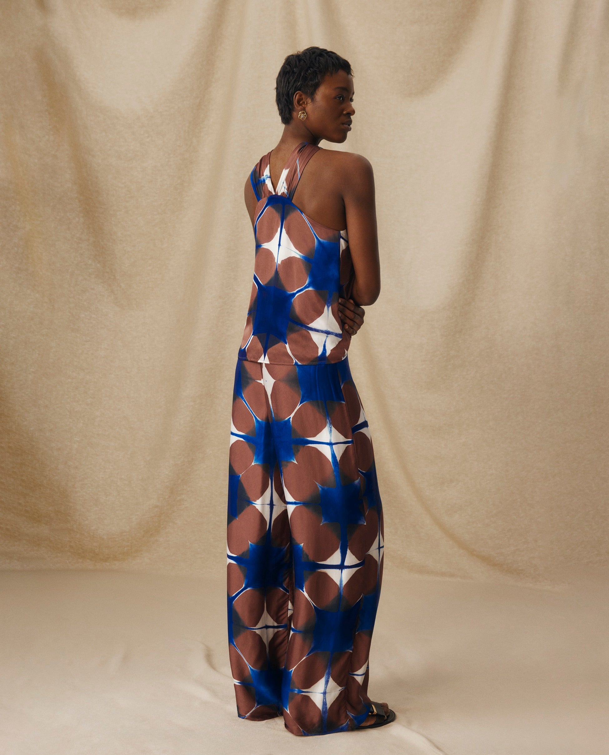Bold yet effortless, the Bruna Trousers showcase an abstract print in rich burgundy and electric blue, created using authentic tie-dye techniques. The wide-leg silhouette flows beautifully with movement, while the elasticated back waistband ensures all-day ease. Pair with the matching top for a striking coordinated look.
