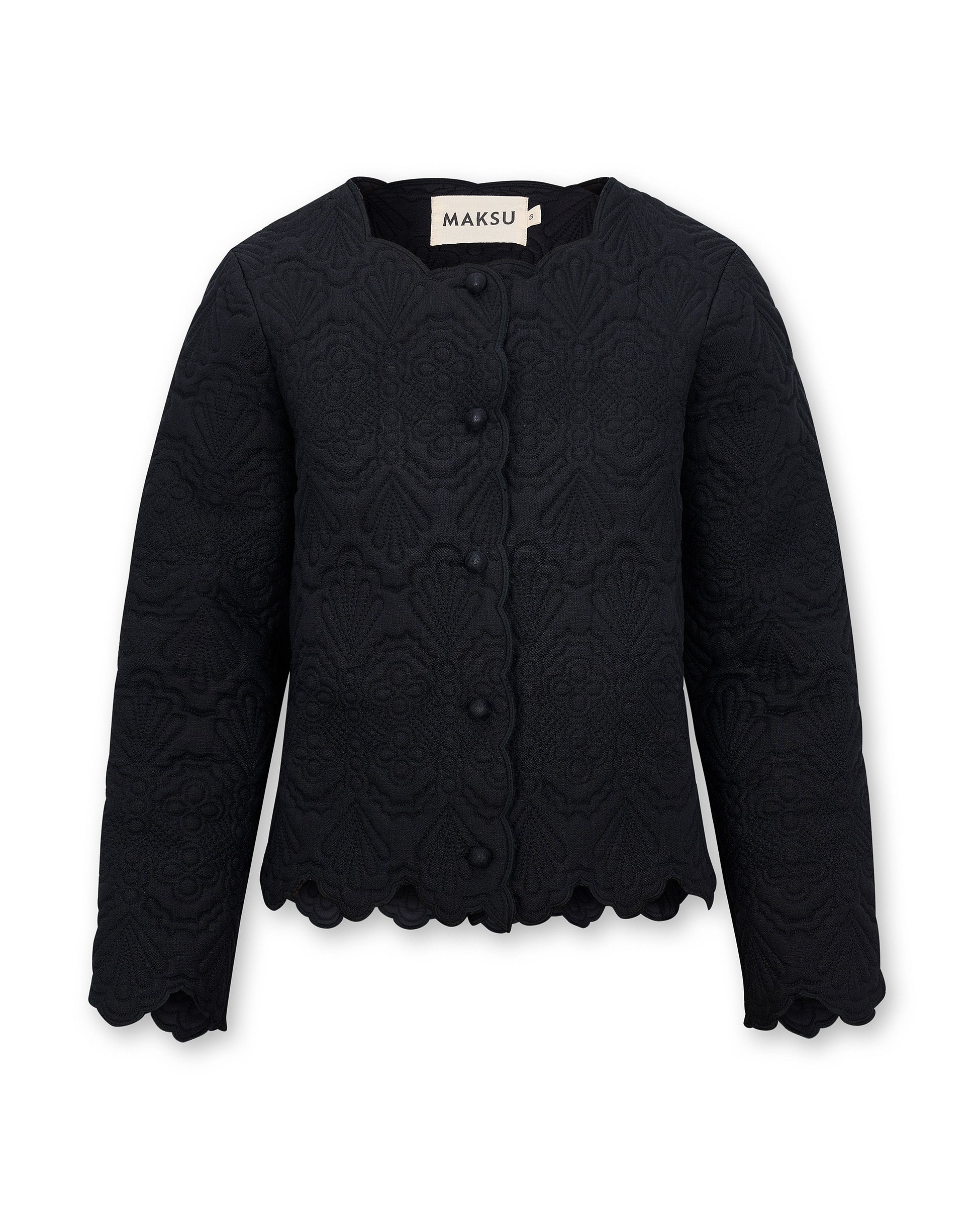 ISHANI | Black Trapunto Embroidered Linen Jacket