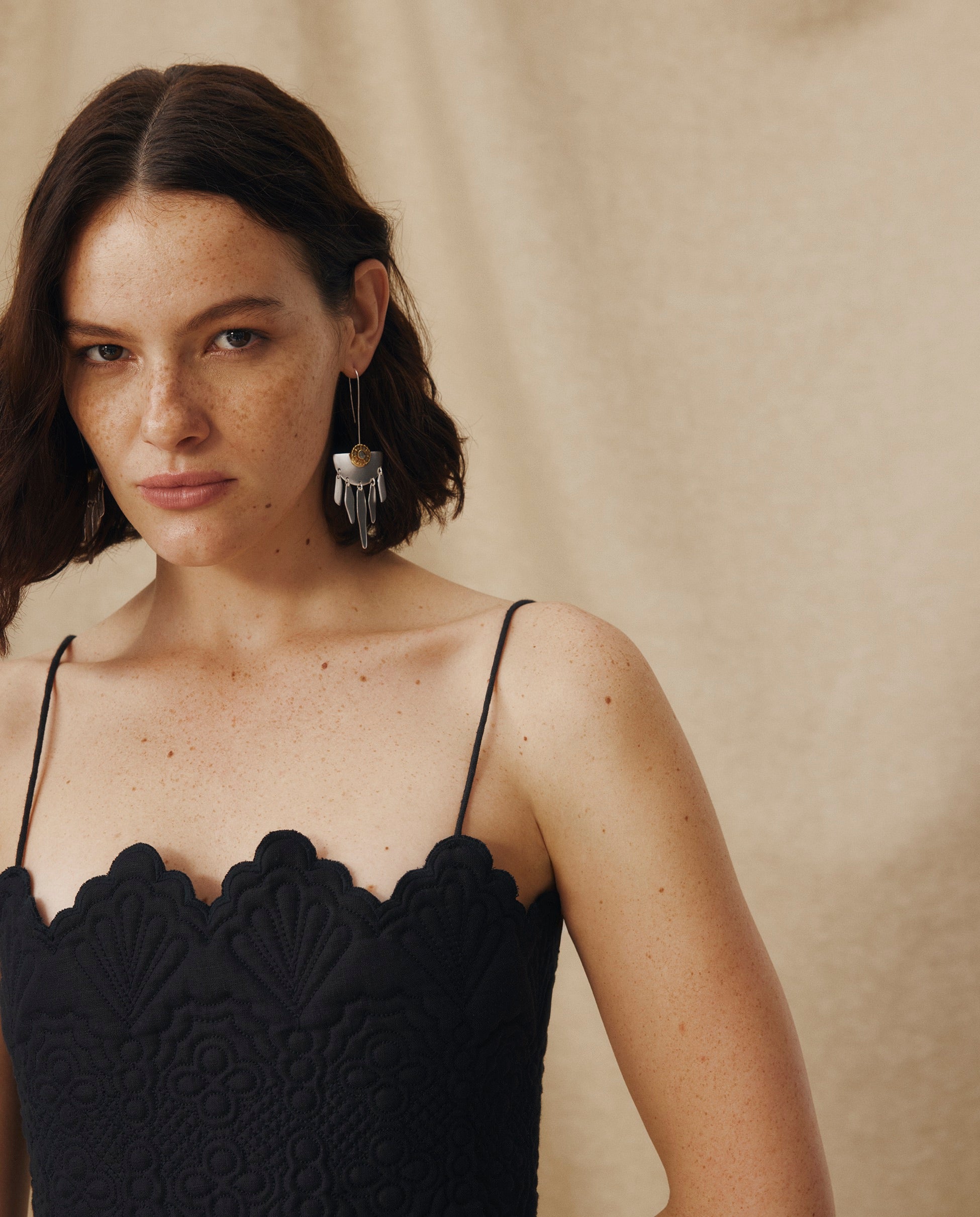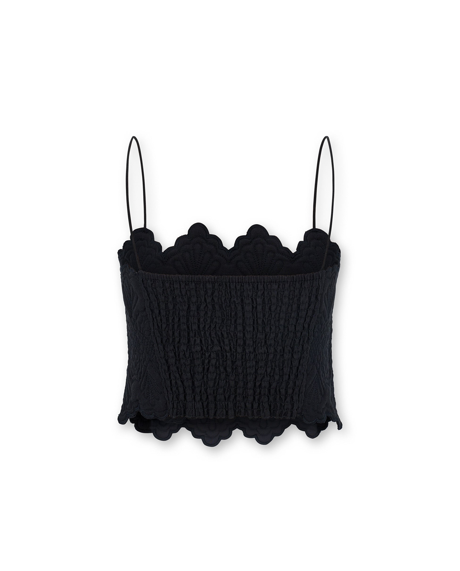 Delicately scalloped edges and intricate embroidery bring a touch of romance to the Ishani Cropped Top. Crafted from airy 100% linen, this strappy design is perfect for warm-weather dressing. Its bohemian yet feminine silhouette is fitted at the bust and finished with an elasticated back for flexible comfort. Style it with the matching shorts or jacket for a coordinated look.