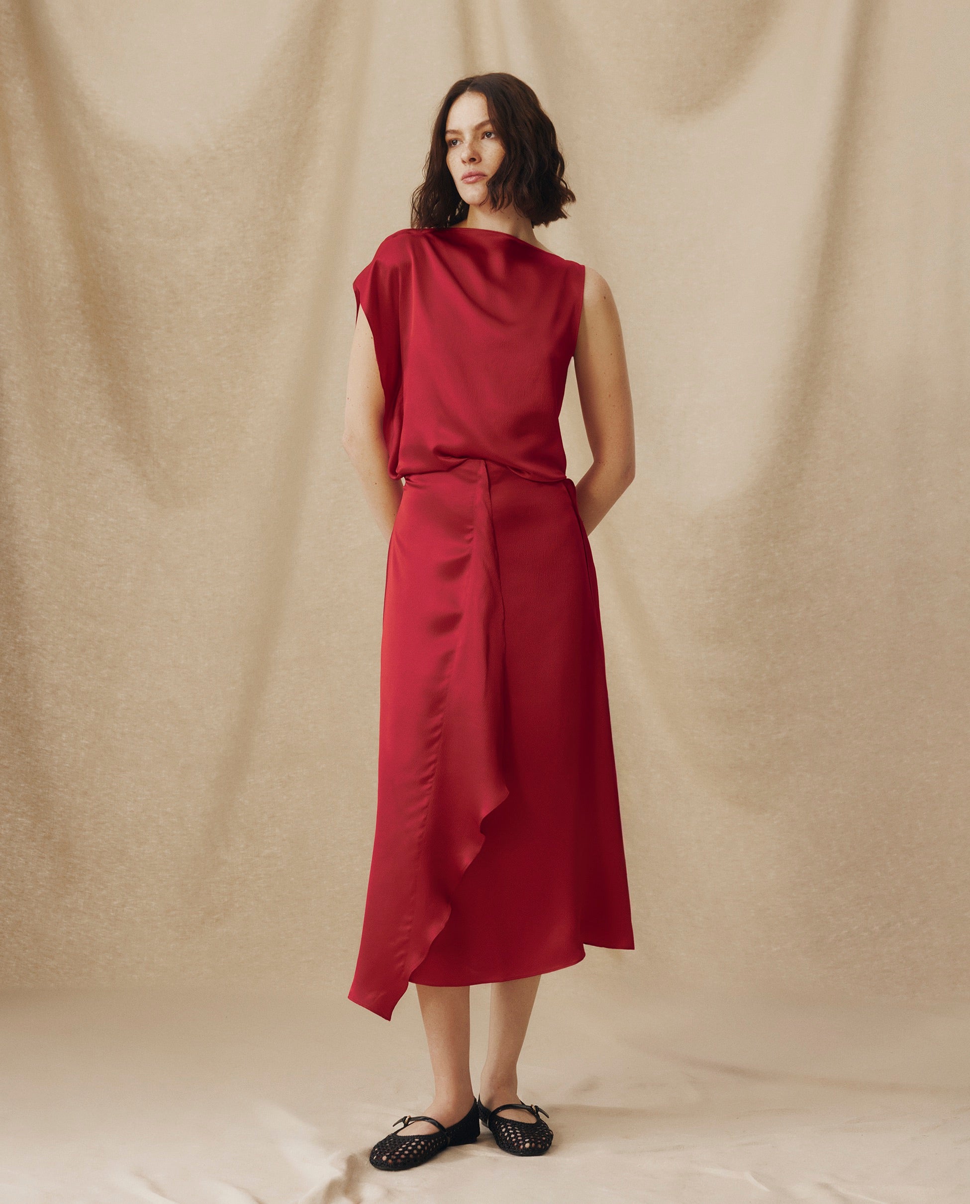 LETIZIA | Crimson Red Asymmetric Silk Skirt