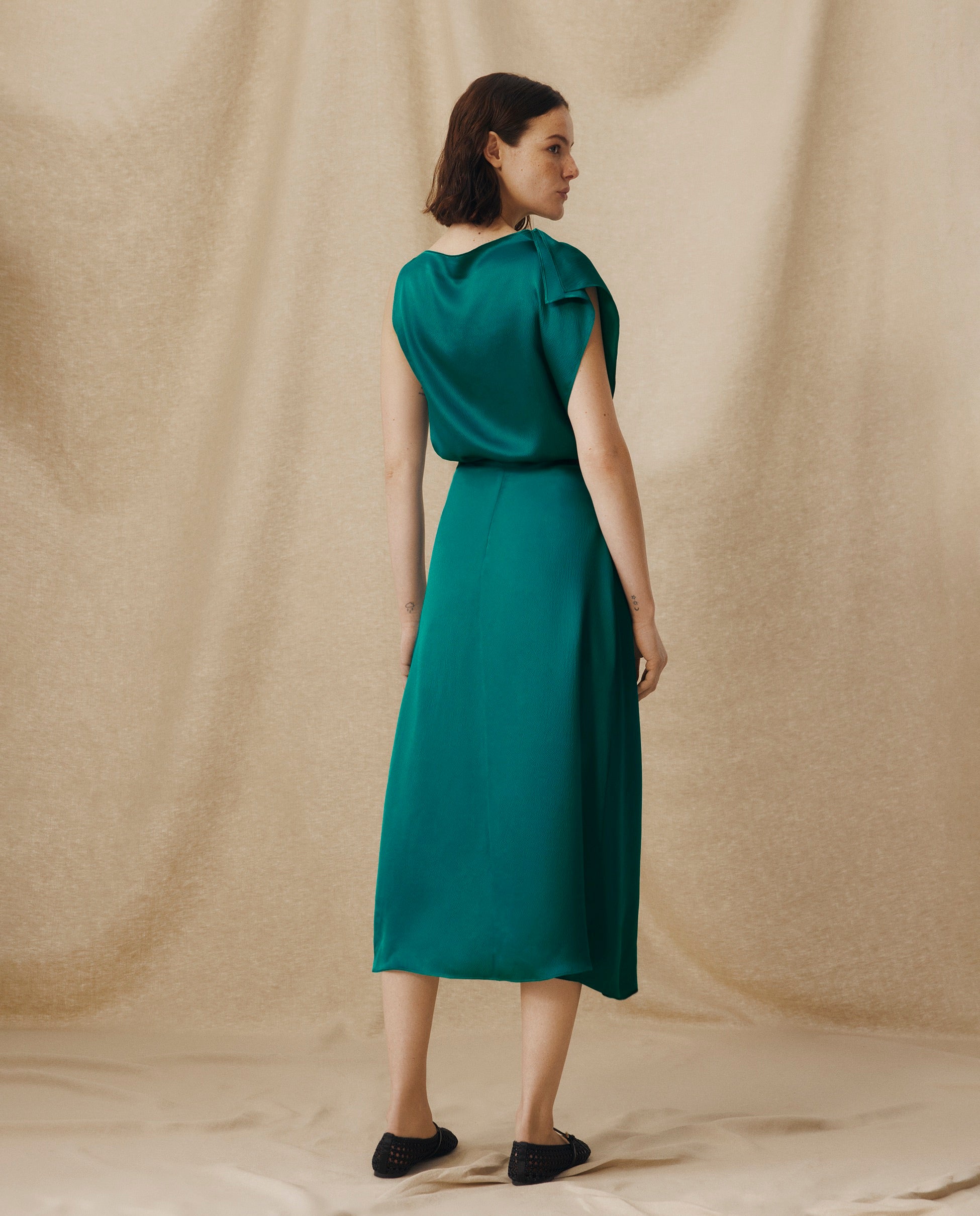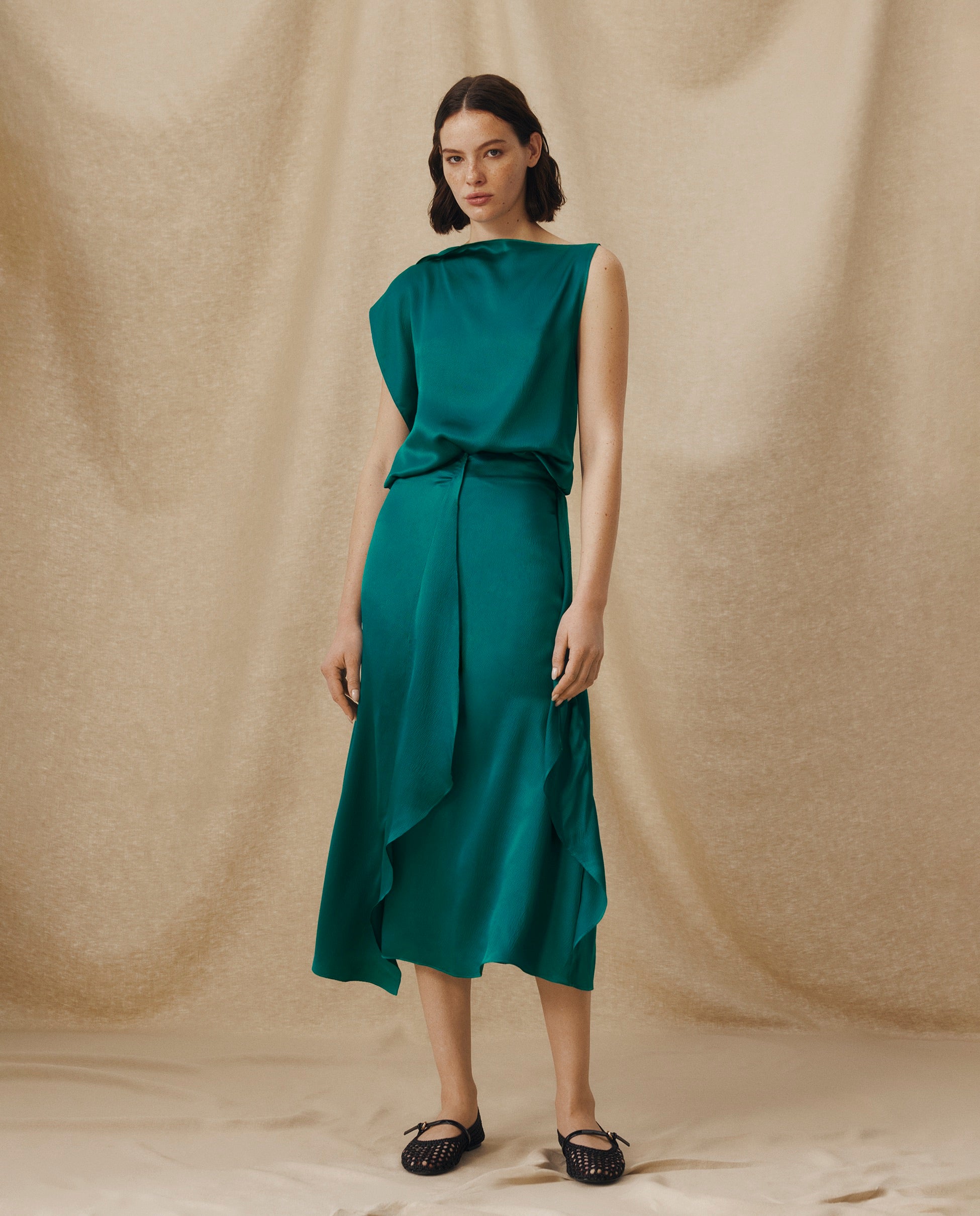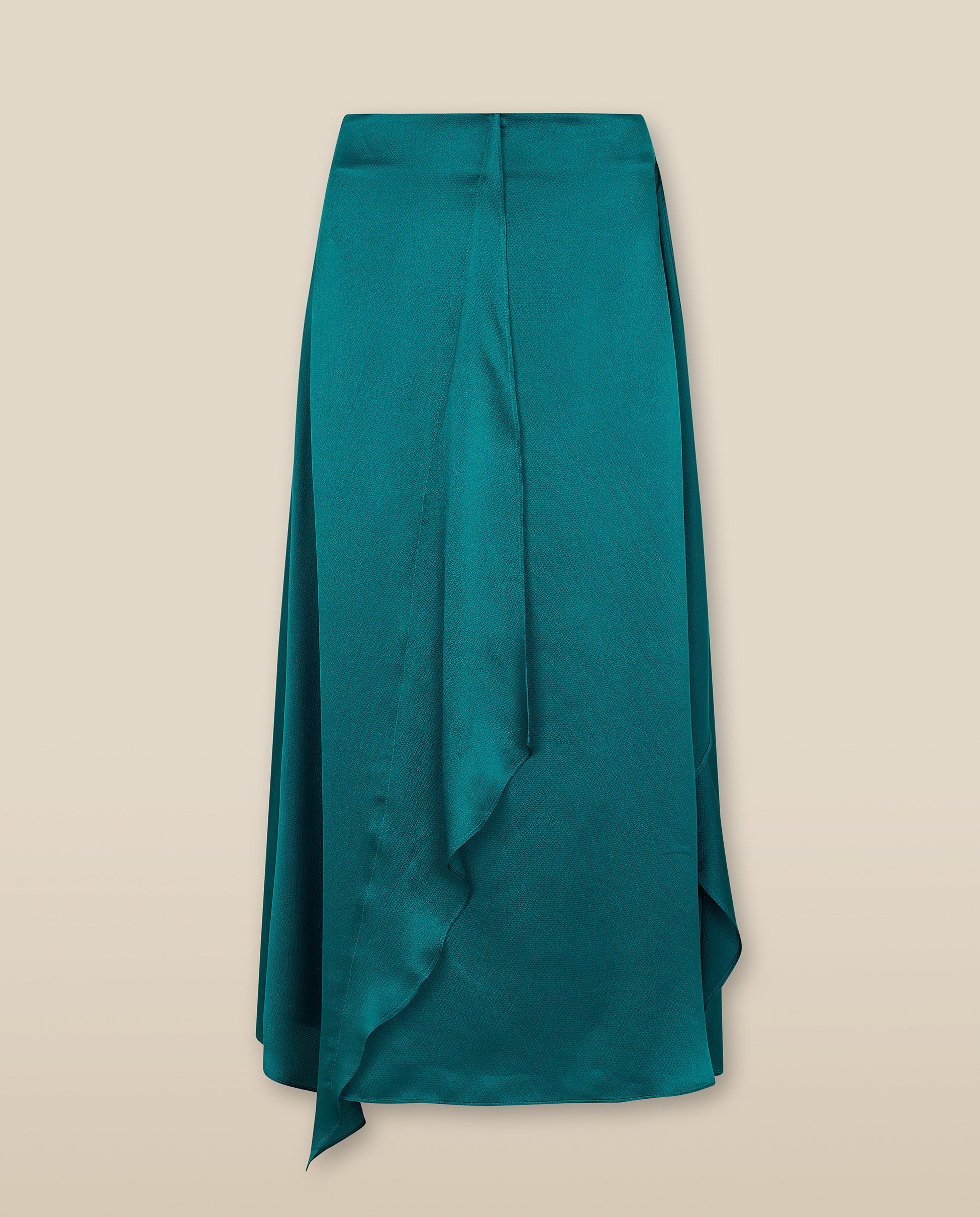 LETIZIA | Emerald Green Asymmetric Silk Skirt