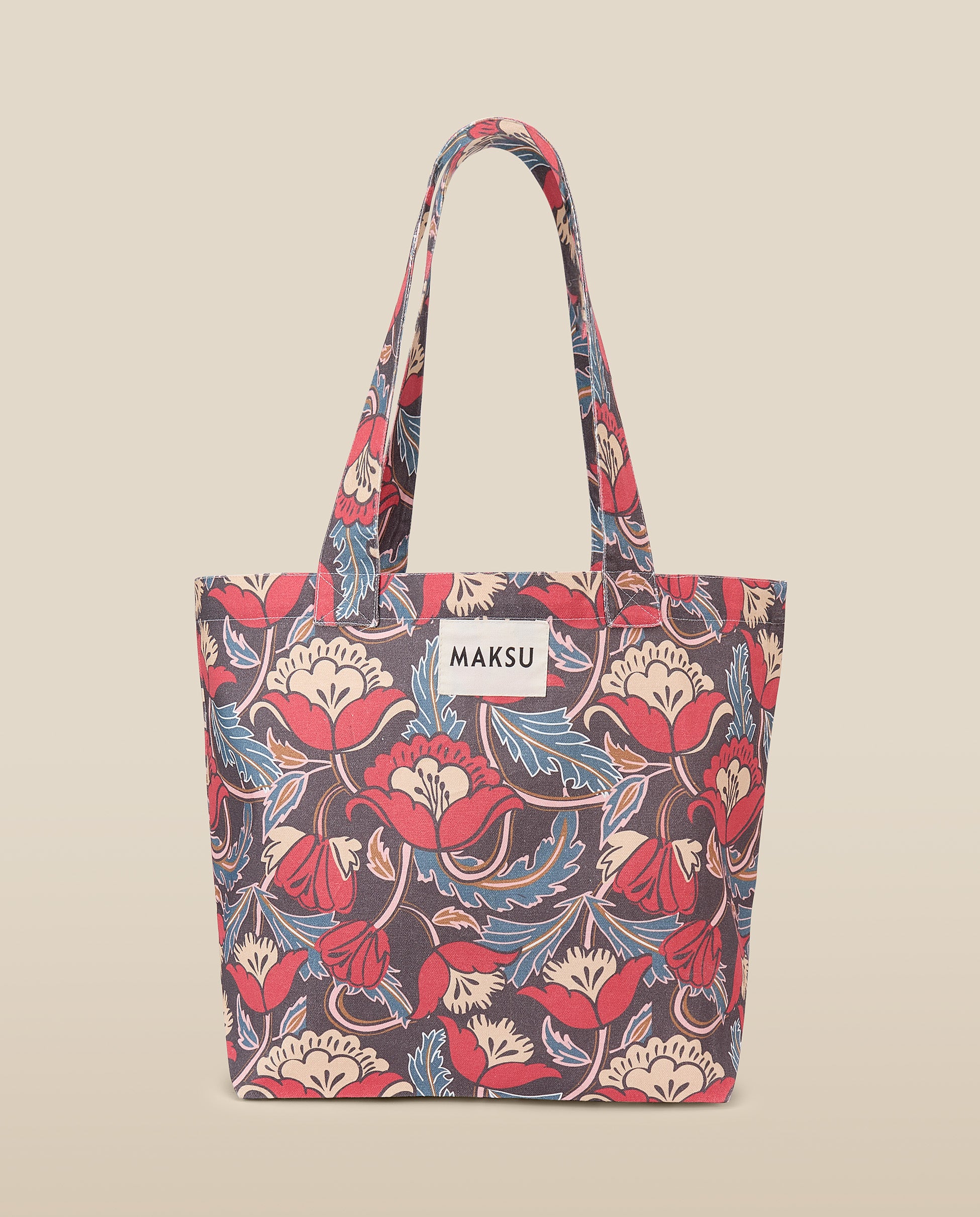 Printed in a bold terracotta floral for the season, the Bimba Tote Bag is a versatile carryall designed for everyday ease. Crafted from 100% cotton, it features wide shoulder straps, a soft silhouette and a signature MAKSU logo patch at the front.
