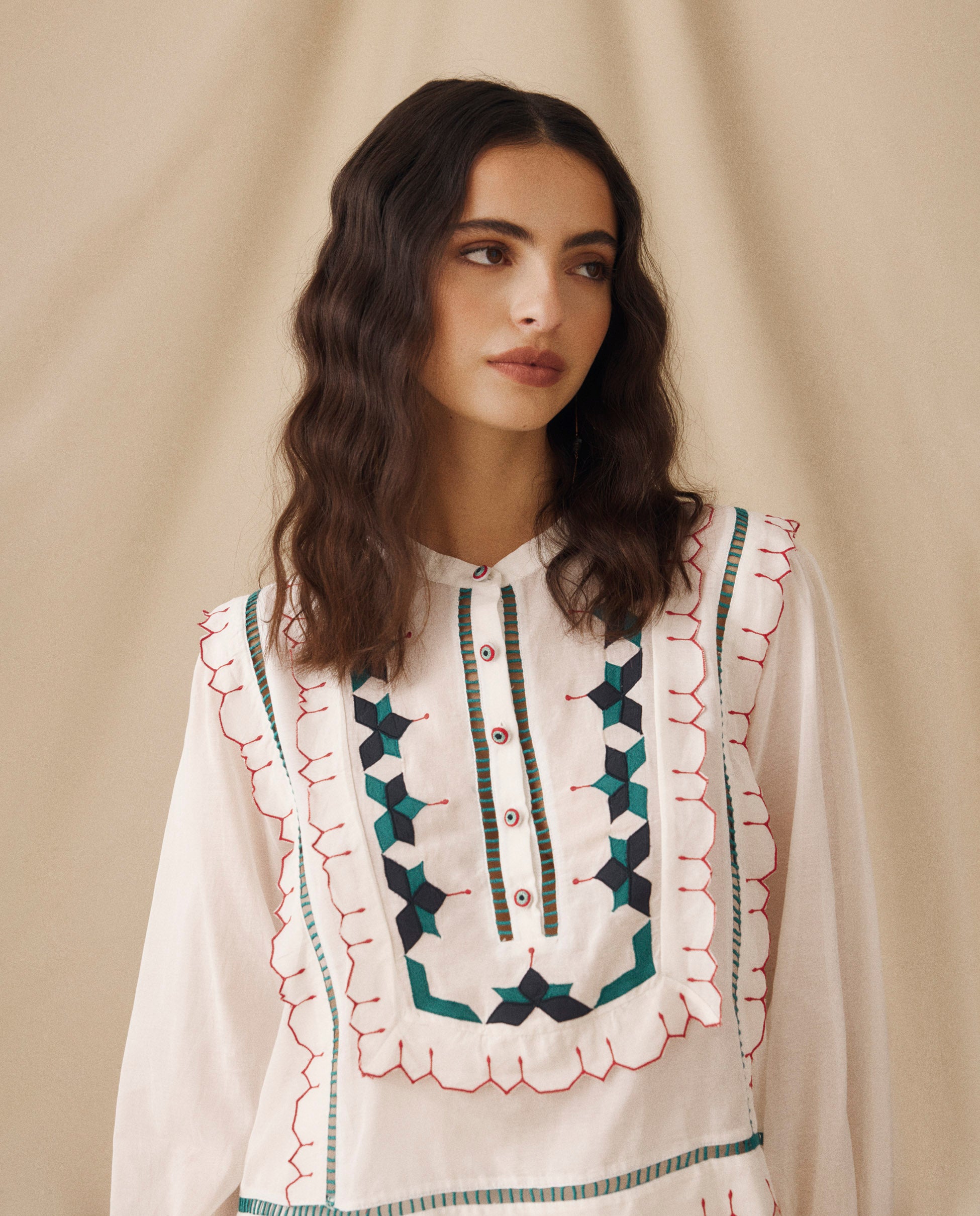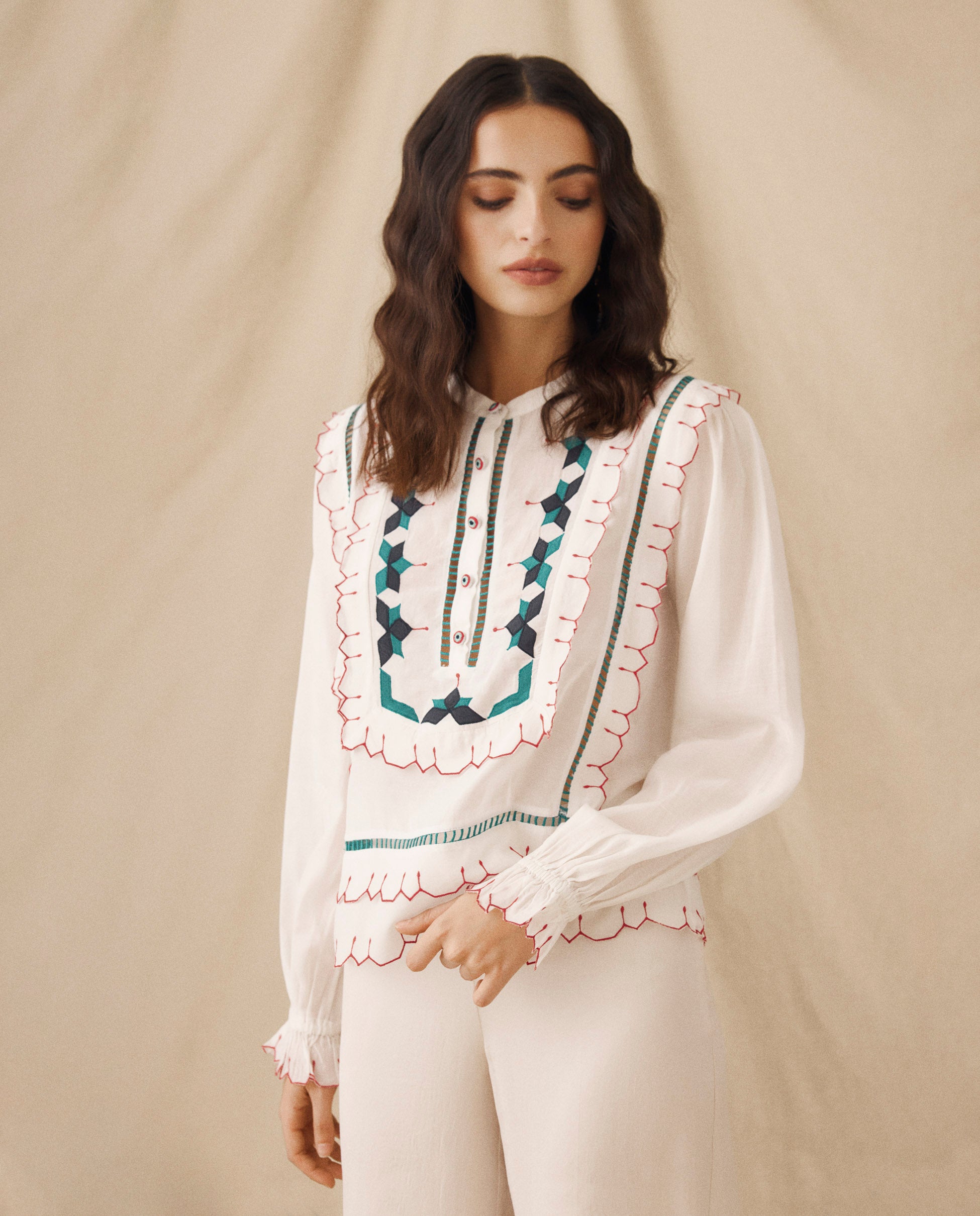 Shop MAKSU’s collection of designer blouses and tops featuring silk and satin blouses, embroidered cotton styles and modern jersey pieces. Crafted from luxurious fabrics with refined detailing, each piece blends day-to-night elegance with timeless sophistication.