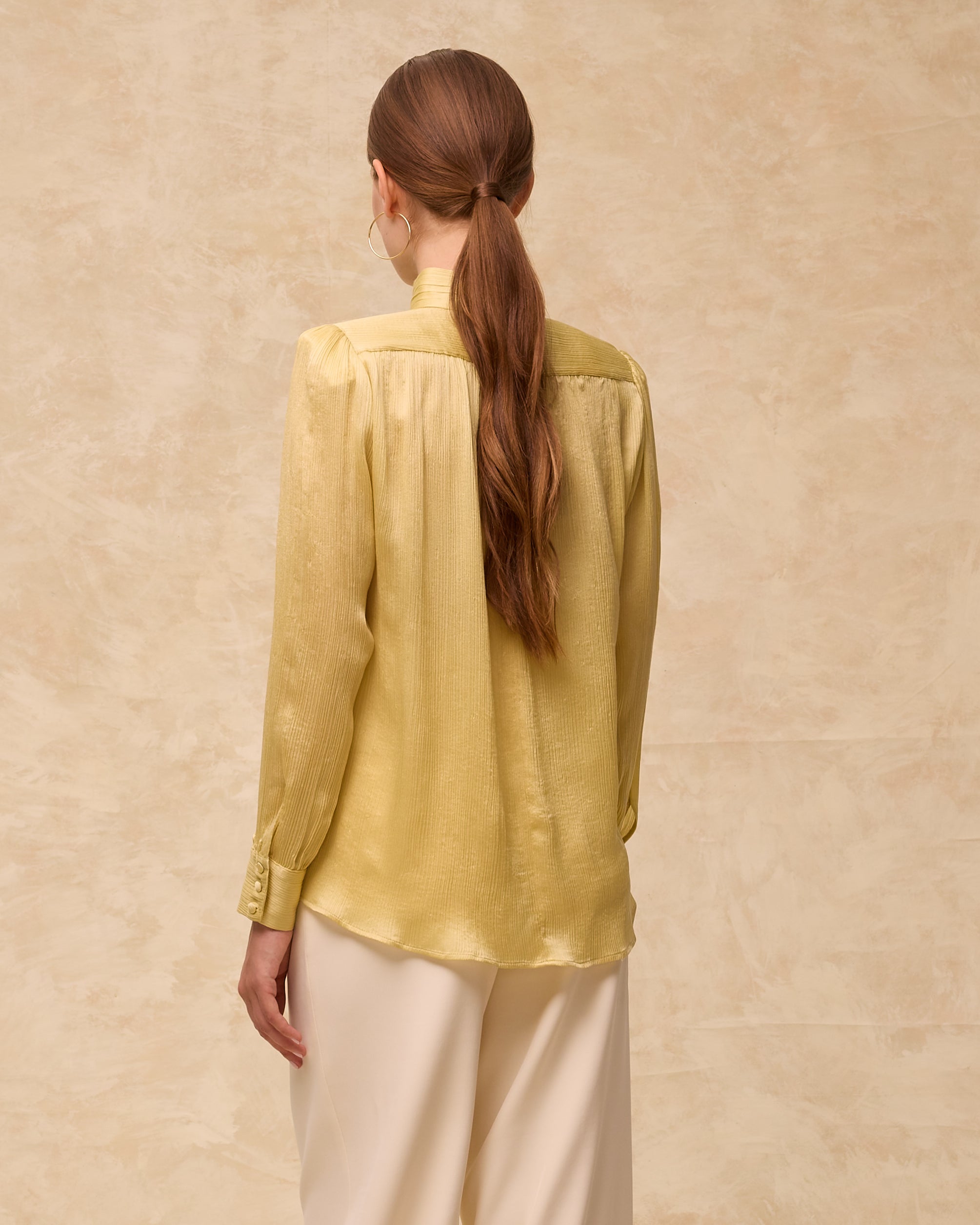 CAROL | Pale Chartreuse Pleated Silk Blouse