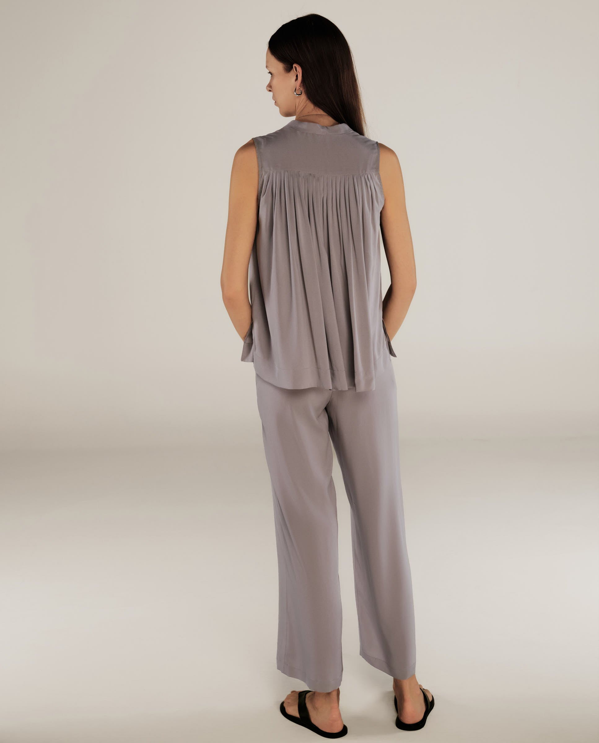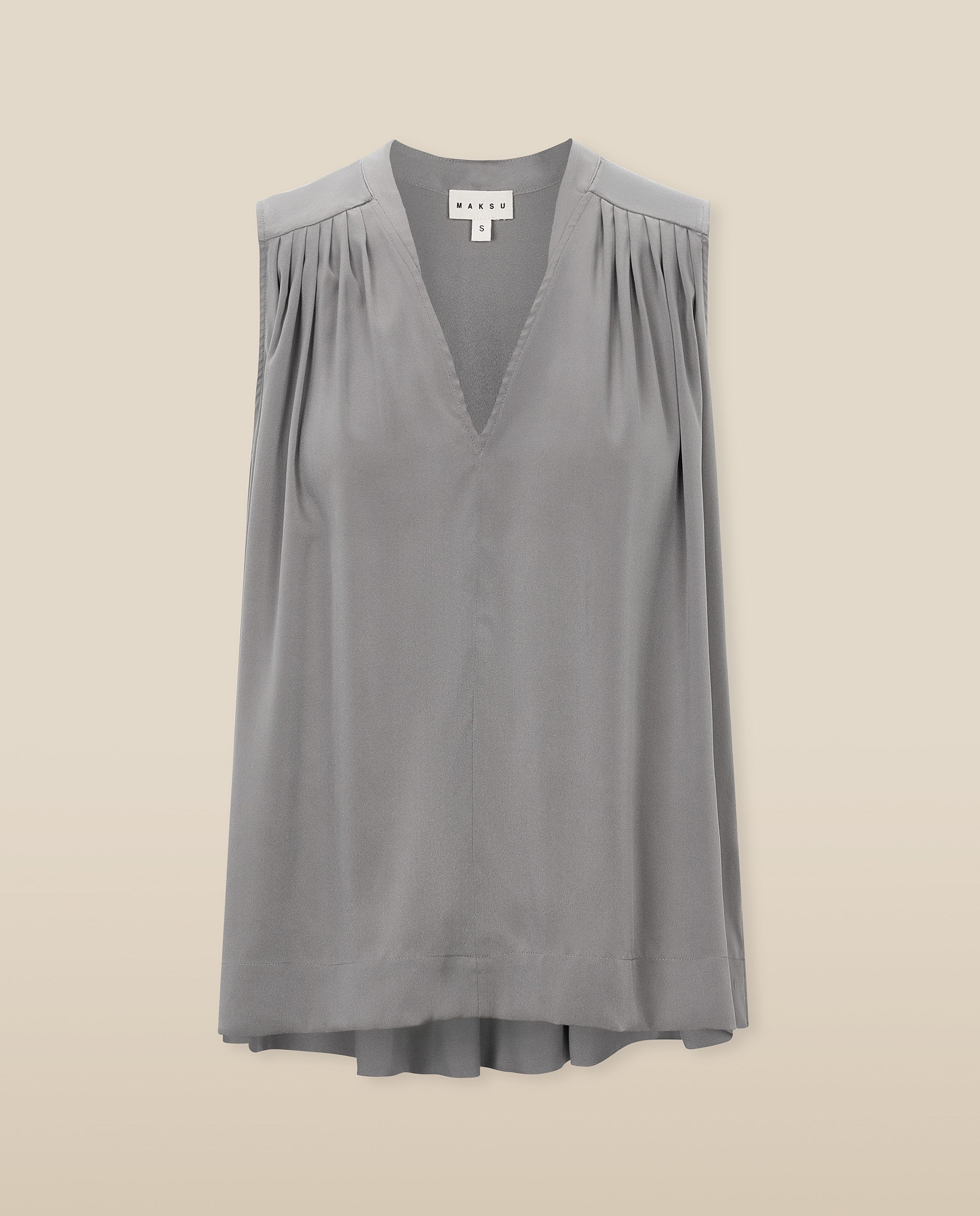 Timeless and effortlessly refined, the Finley Blouse is crafted from 100% silk, prized for its natural sheen, softness and fluid drape. Designed for a relaxed fit, it features a flattering V-neckline and delicate pleated details at the shoulders and across the back, adding subtle texture and movement. With MAKSU's focus on luxe fabrics, this blouse offers a graceful drape, making it a must-have for layering or wearing on its own.