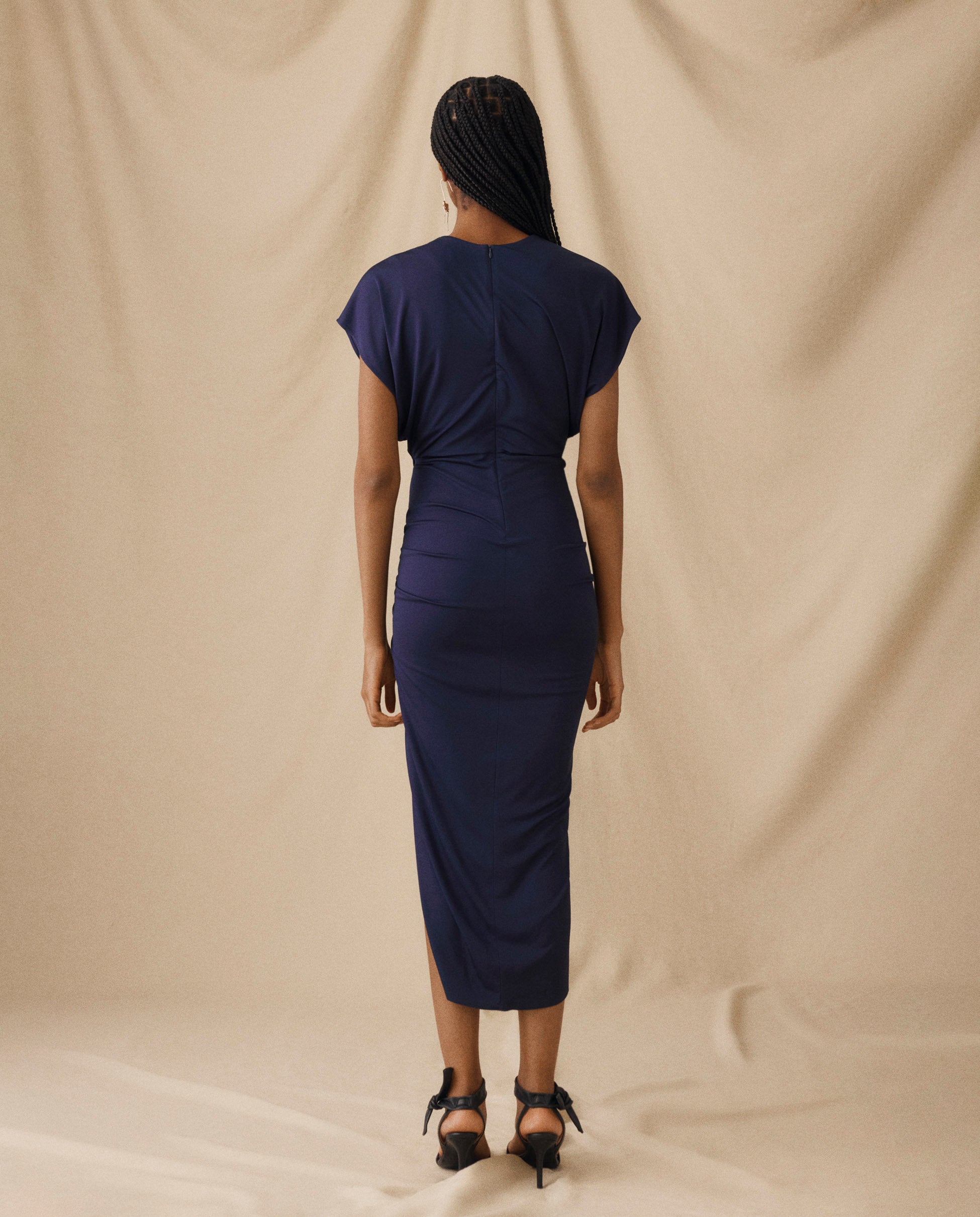 MICHAELA | Navy Draped Midi Dress