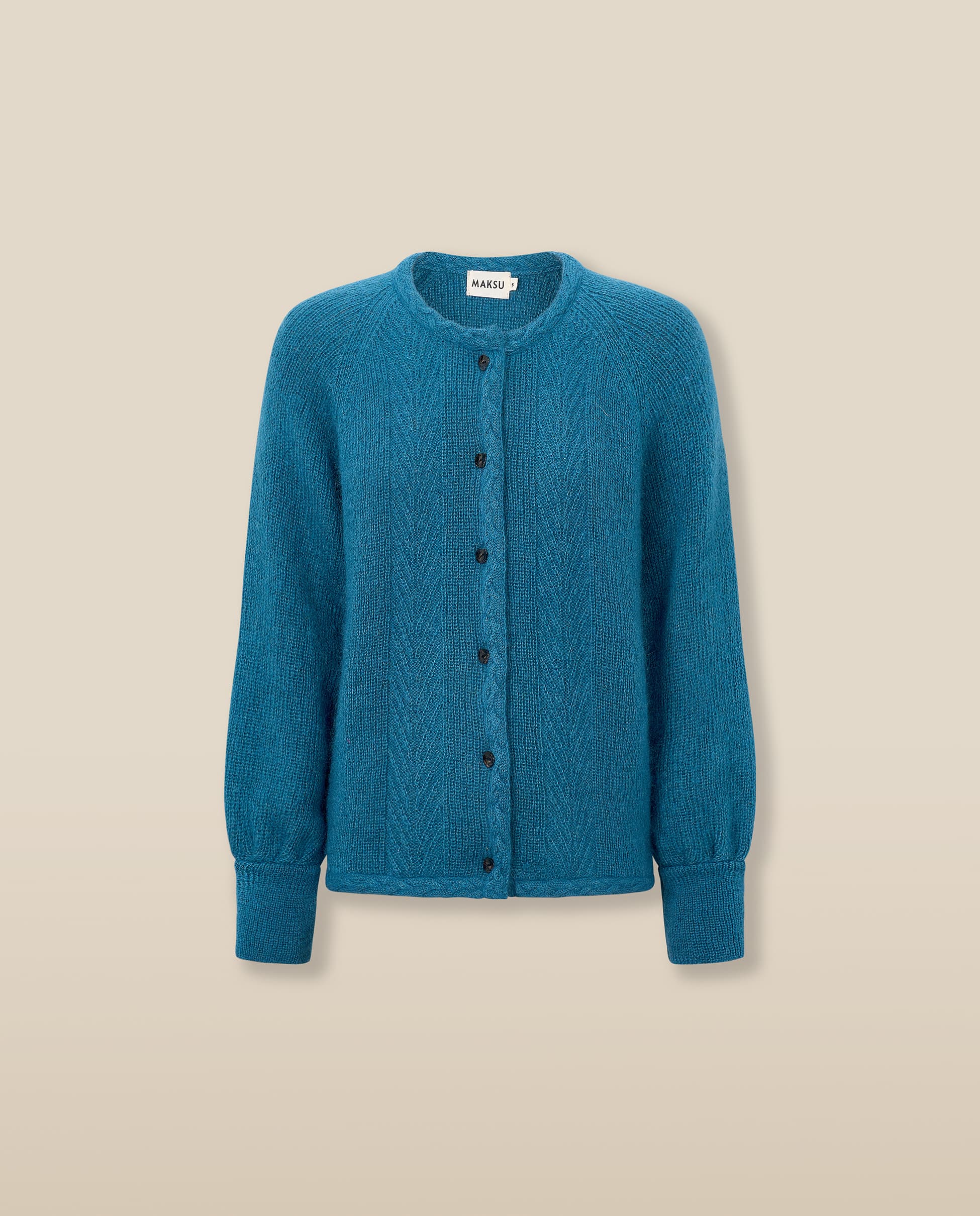 CLAIRE | Teal Mohair Wool Knit Cardigan