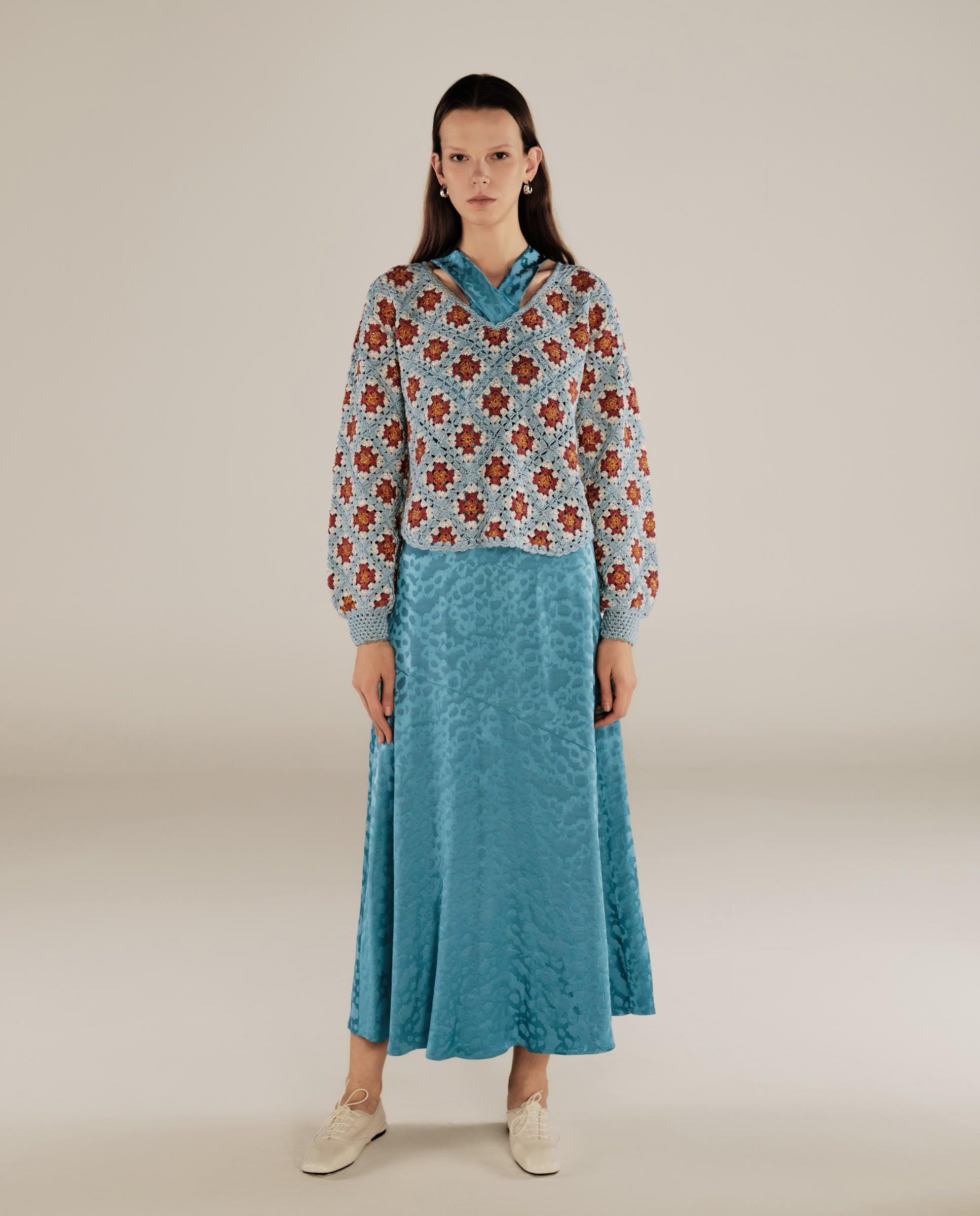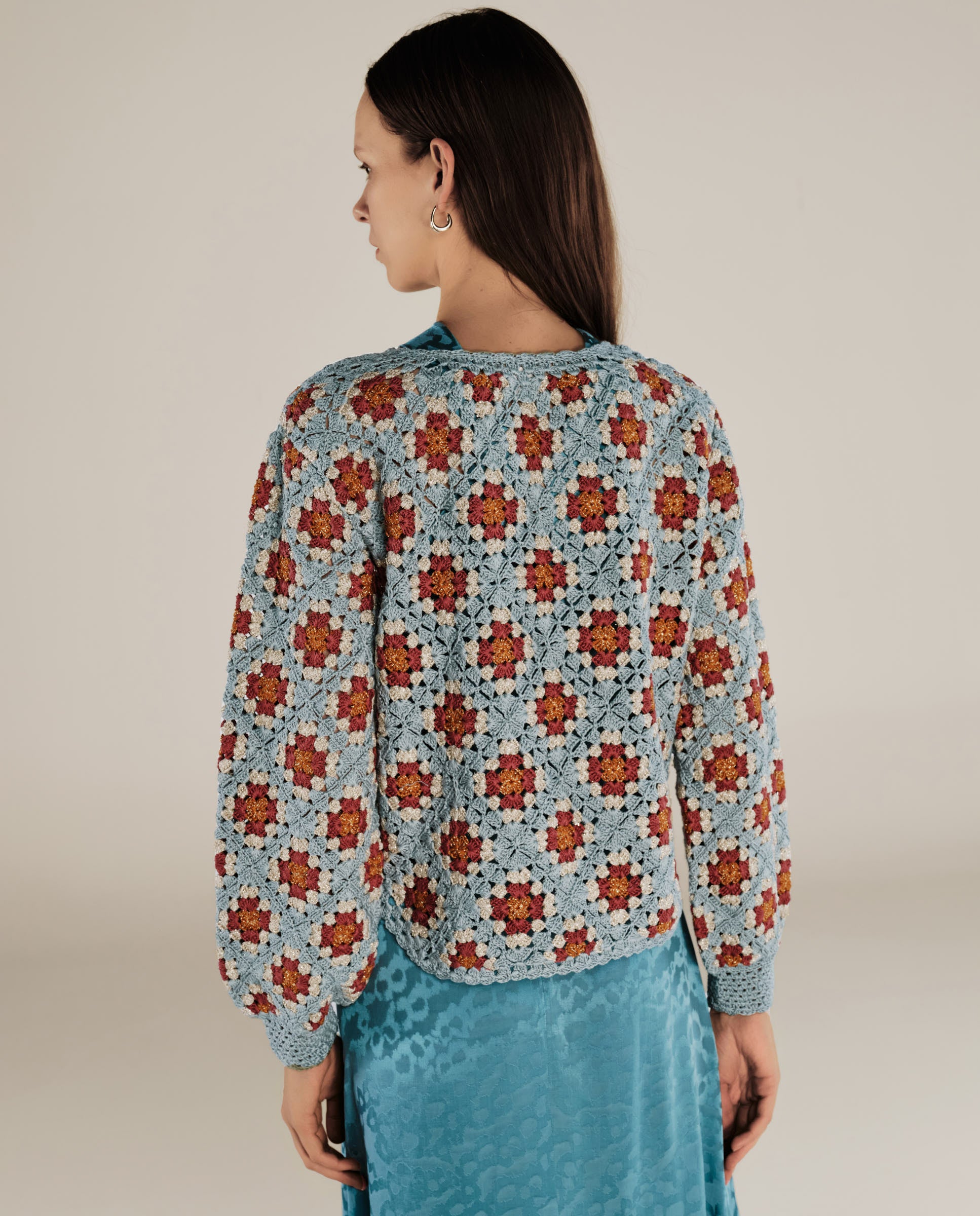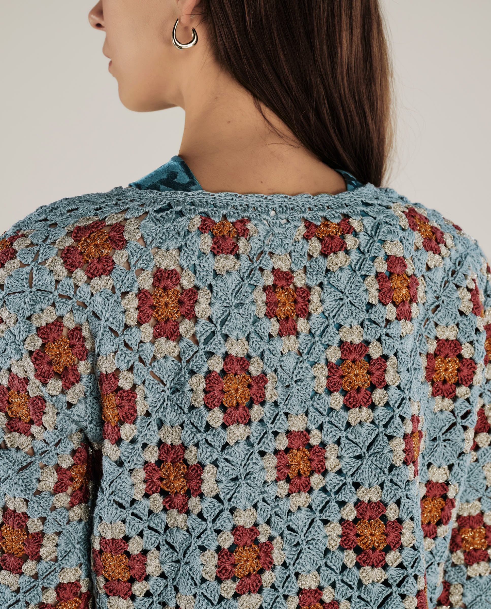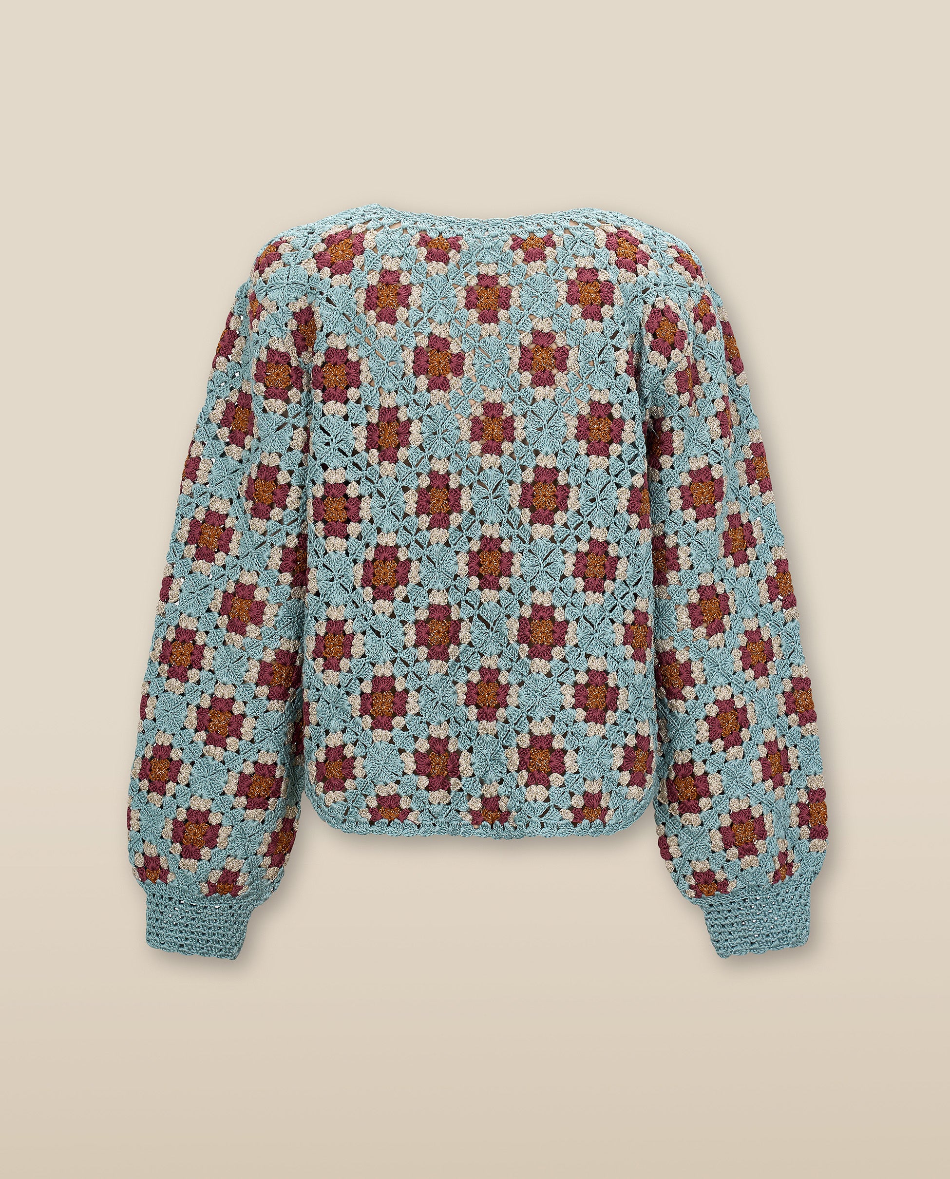 LANA | Teal Multicolour Flower Crochet Cotton Sweater