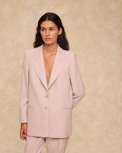 A refined wardrobe foundation, the Florence Trousers are tailored from a structured wool blend in soft beige. Cut with a high waist and clean straight leg, they feature pressed creases, subtle welt pockets and a concealed zip with hook-and-eye fastening for a polished finish. Pair with the matching blazer for effortless coordination.