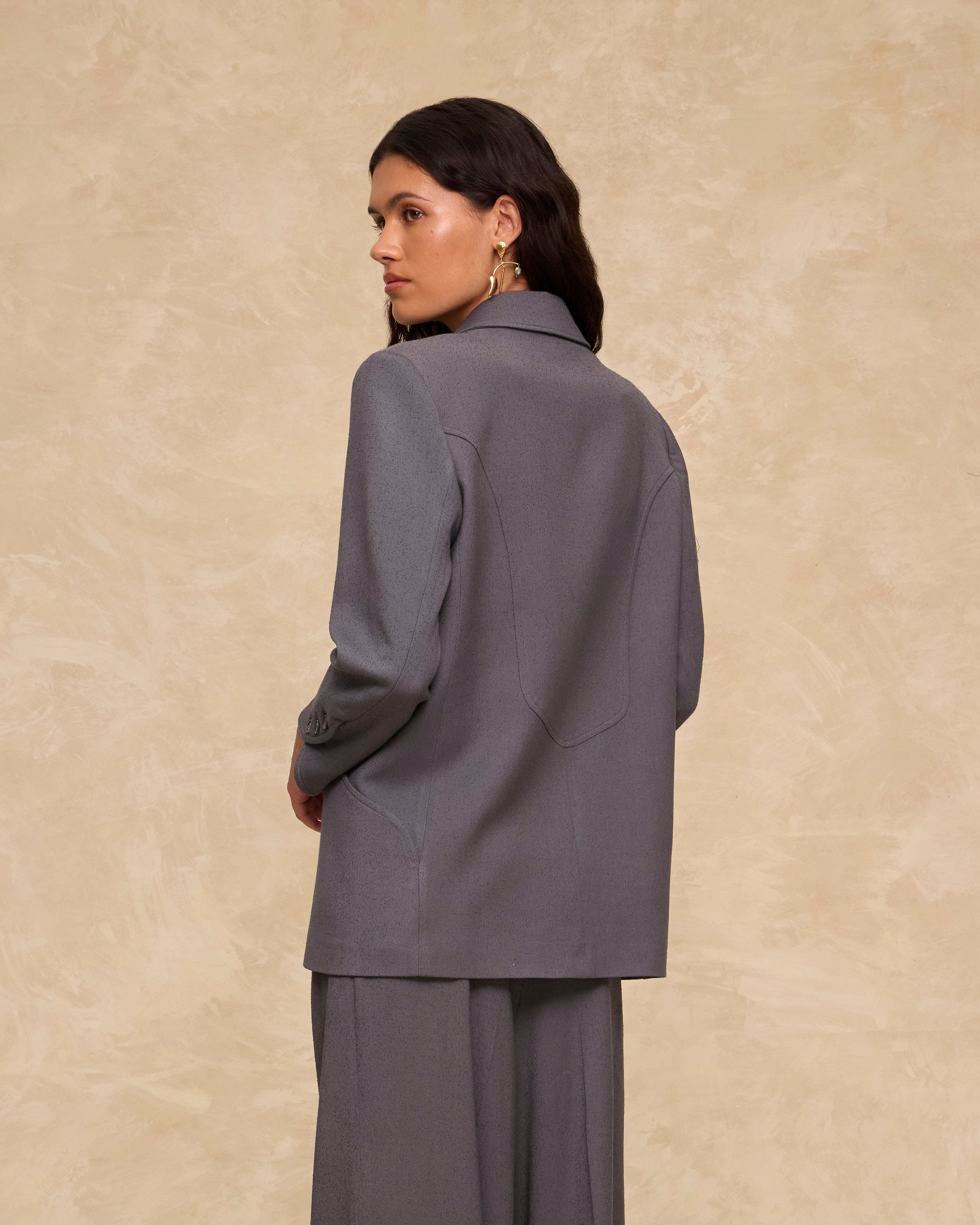 GIOVANA | Dark Grey Wool-Blend Structured Blazer