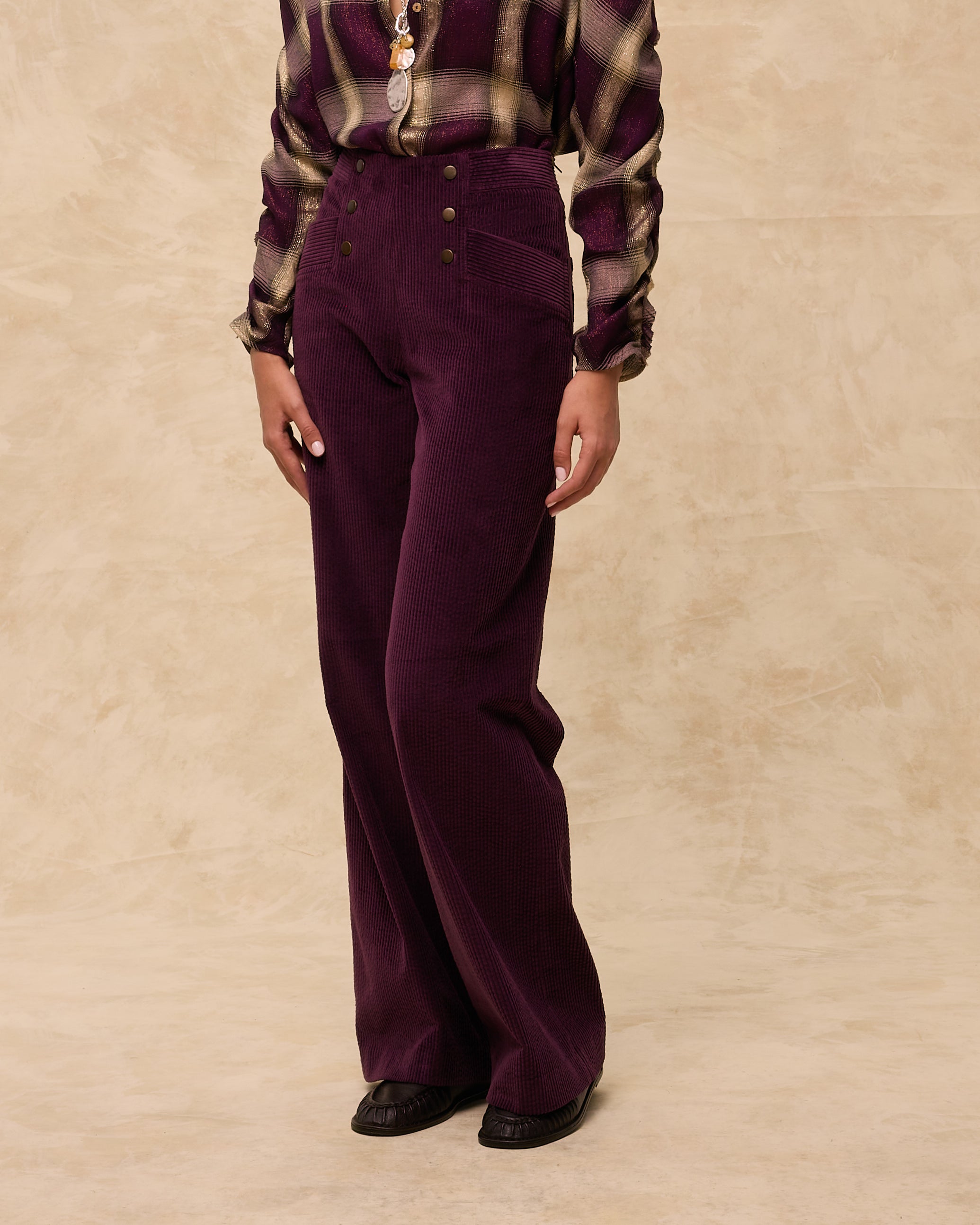 MILENKA | Aubergine Cotton Corduroy Trousers