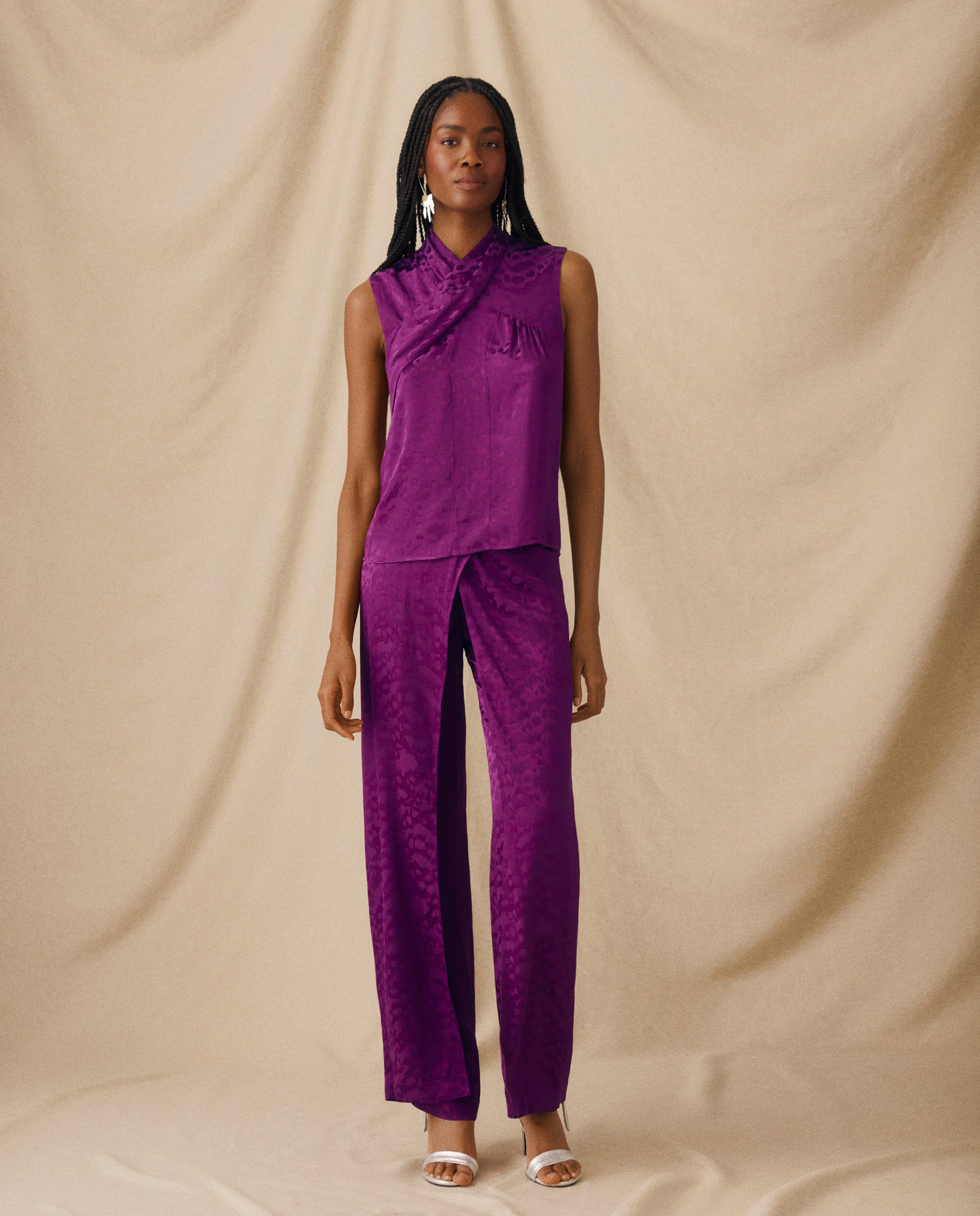 ELAINE | Magenta Jacquard Wide-Leg Trousers