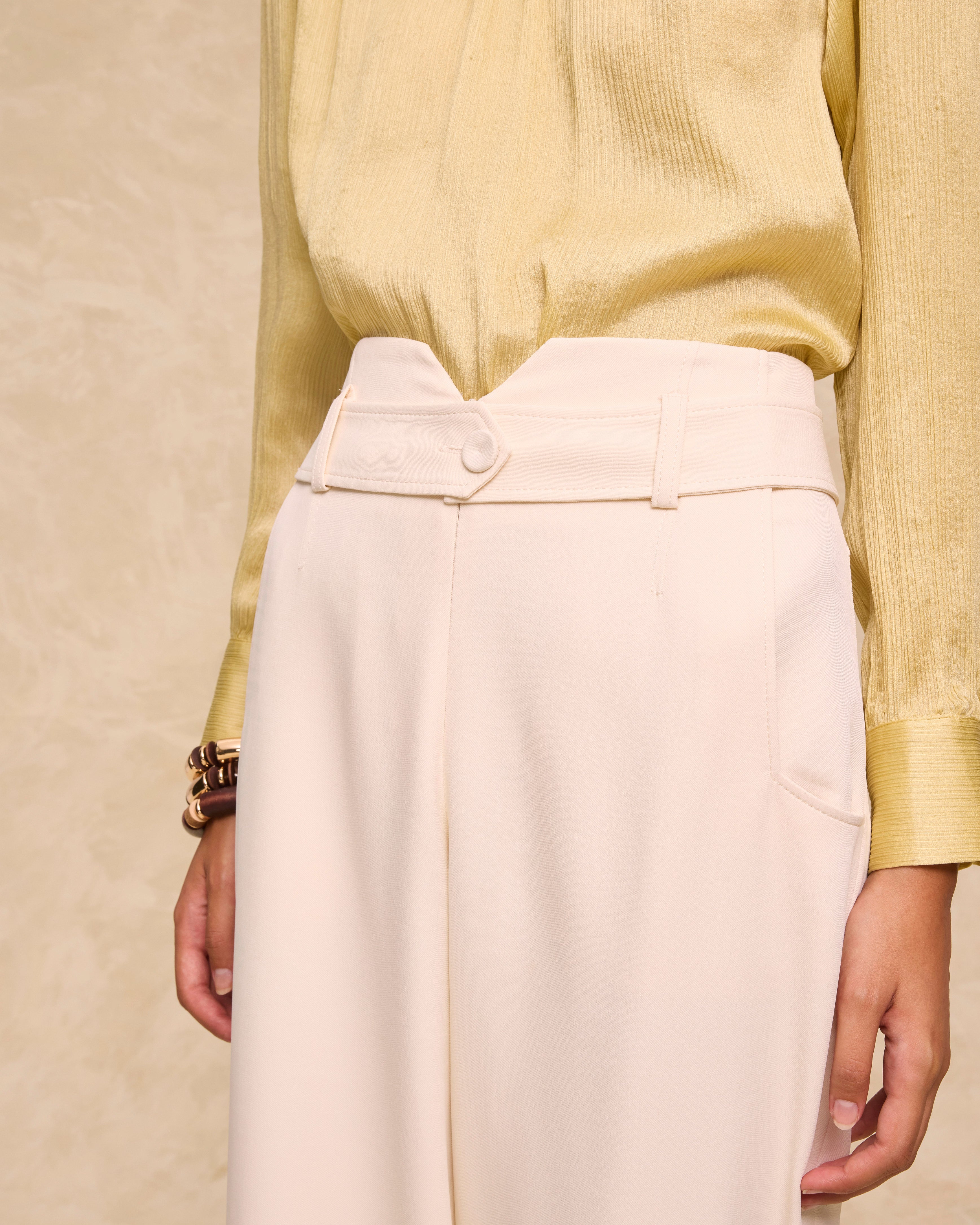 LEMON | Ecru Wide-Leg Tailored Trousers
