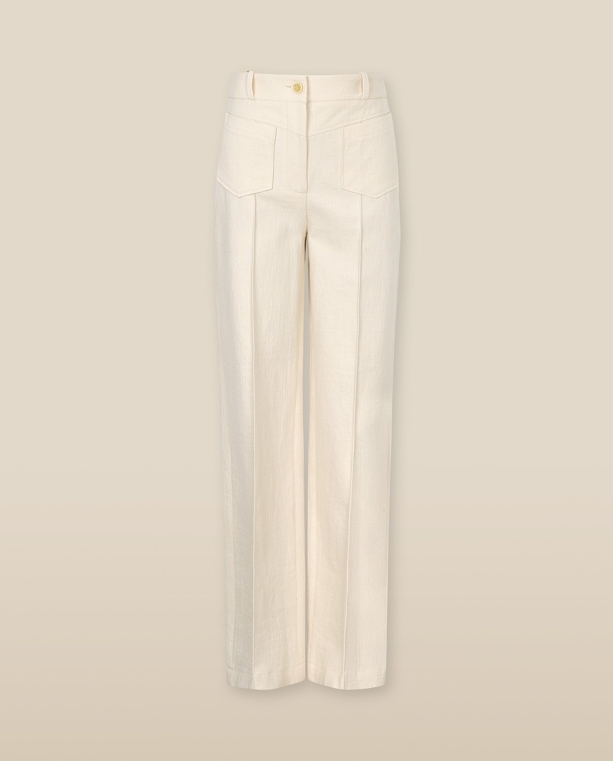 PAOLA | Ecru Pocket Detail Wide Leg Cotton Trousers