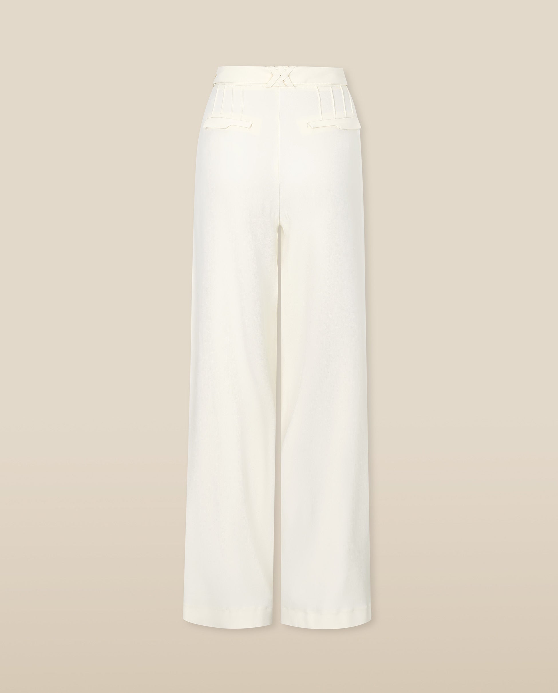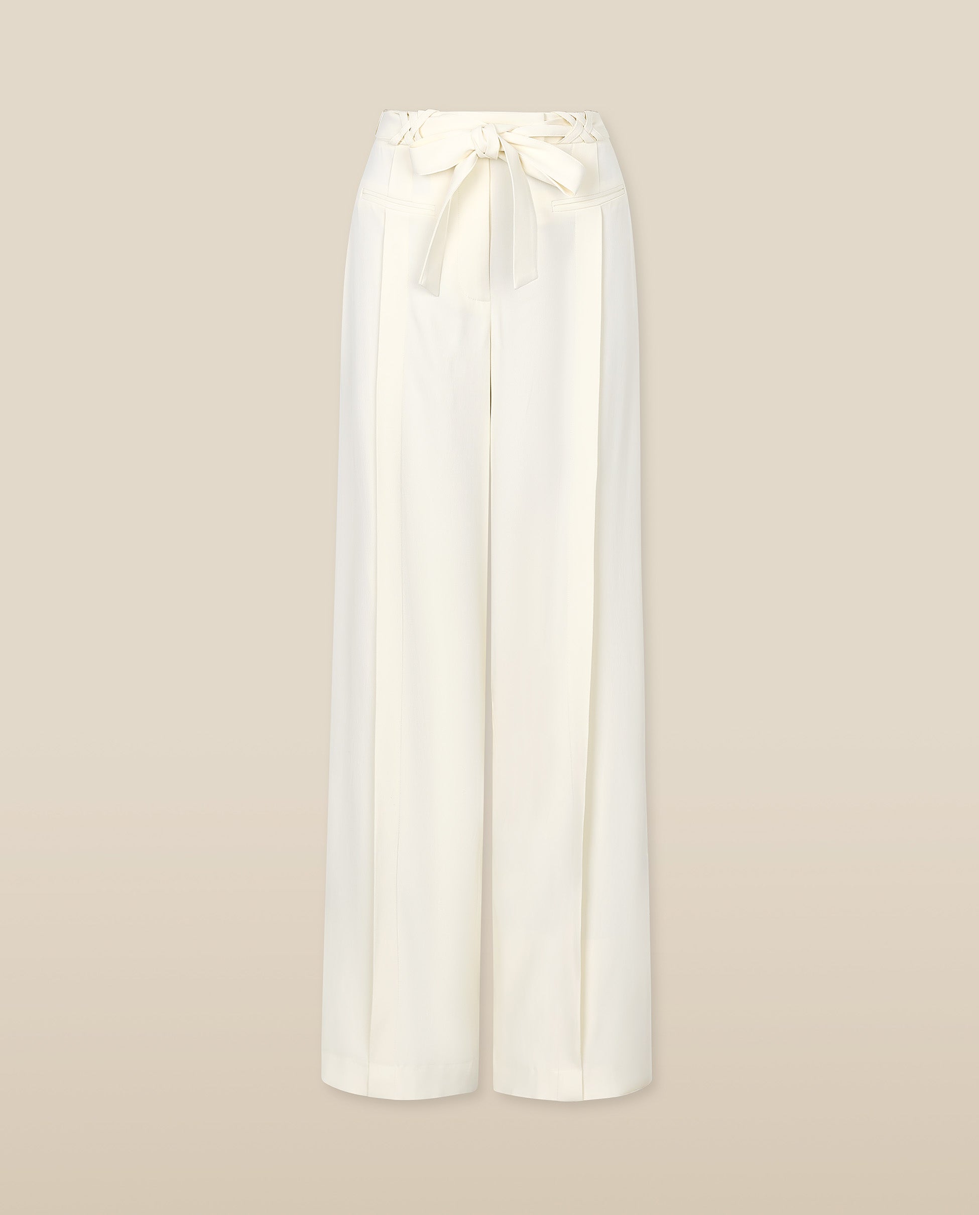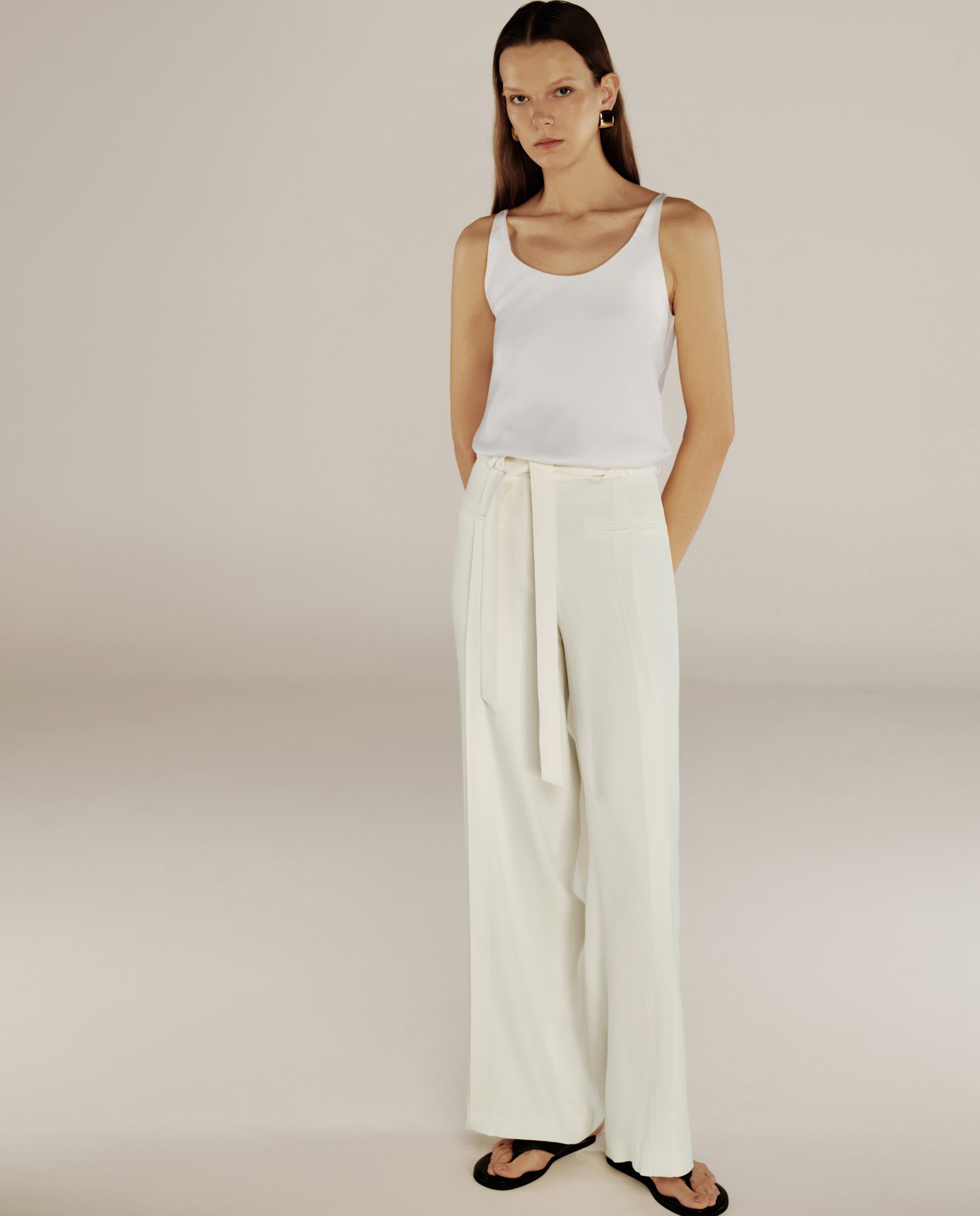 • Flattering high-rise waist with a wide, single-pleat pleat leg that skims the floor