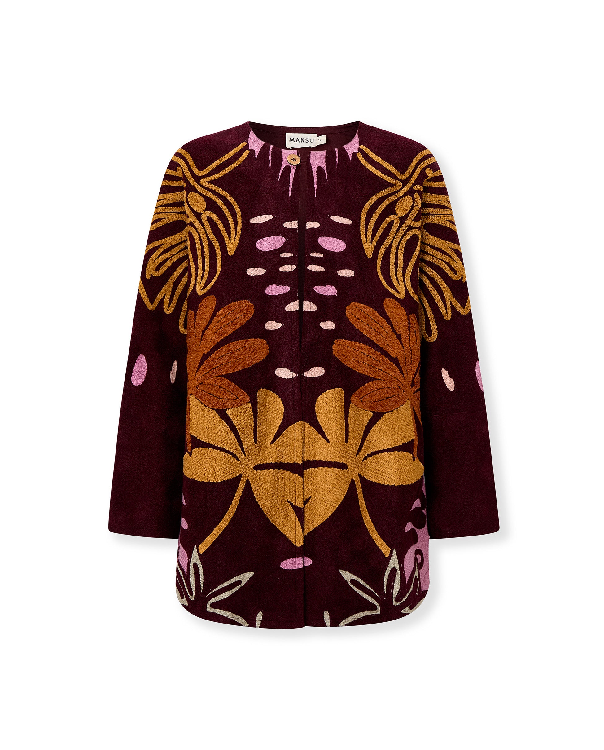 ARRECIFE | Burgundy Embroidered Cotton Coat