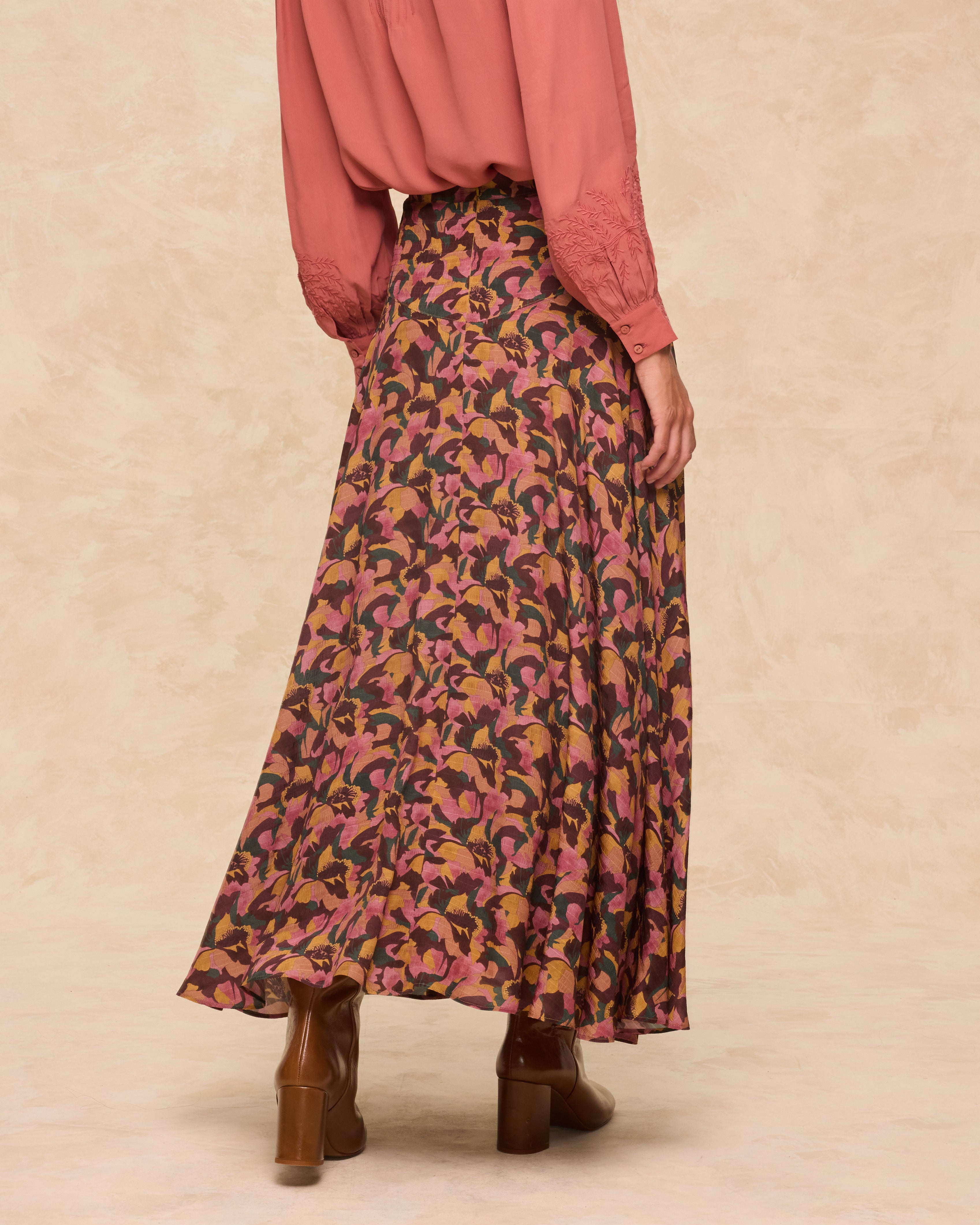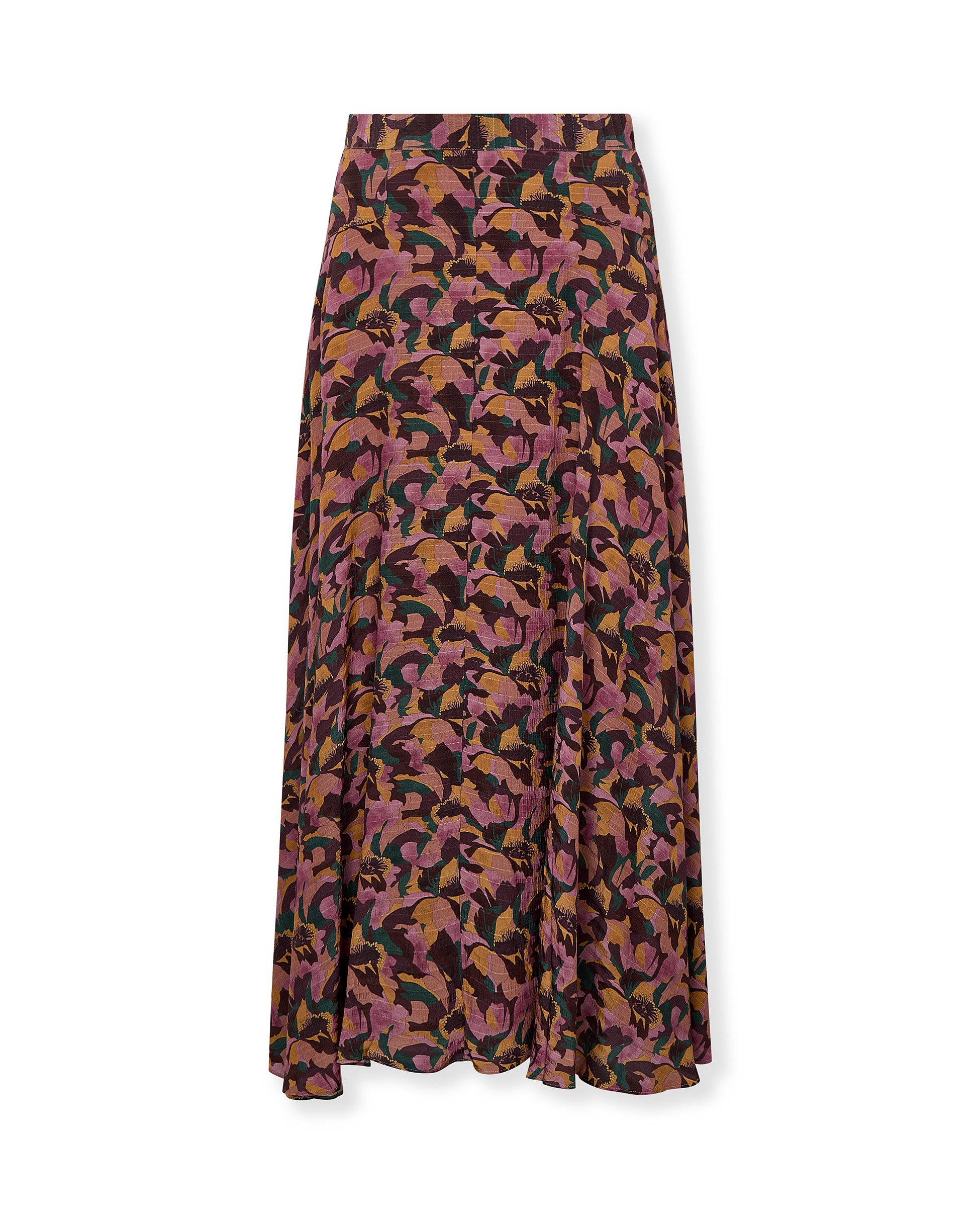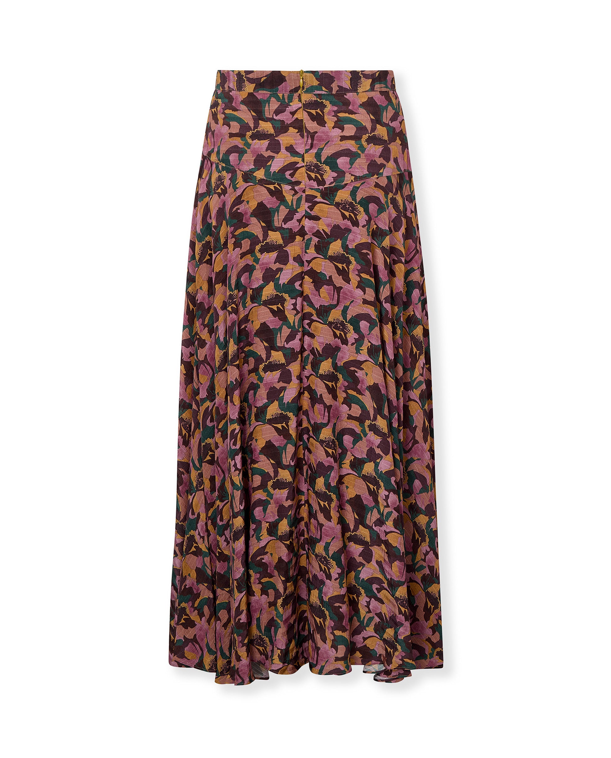 The Saachi Skirt brings a vibrant, vintage-inspired sensibility to everyday dressing. Crafted with a softly structured waistband and a flowing A-line cut, it falls to a midi length with elegant drape and movement. A concealed zip at the back ensures a smooth, flattering fit.