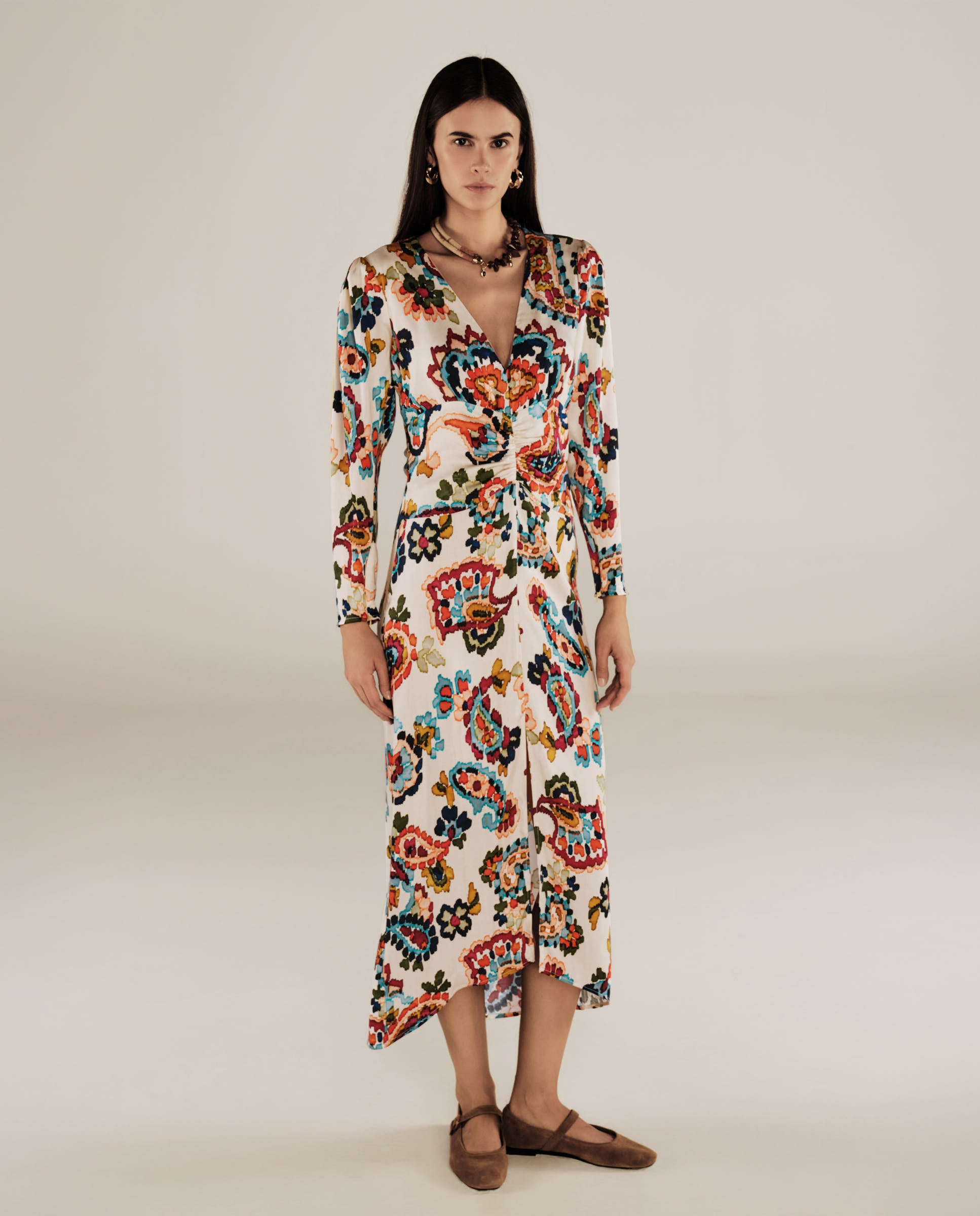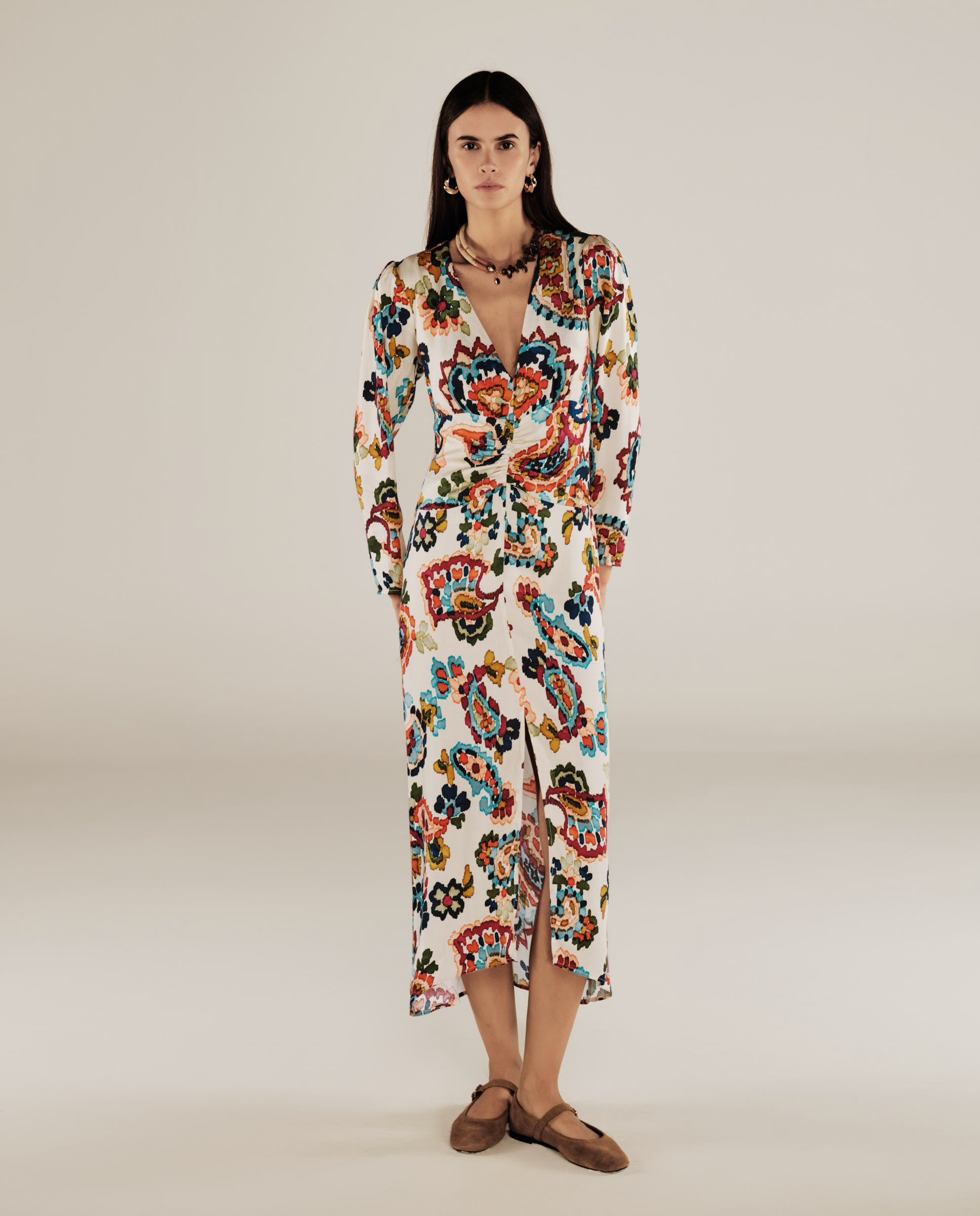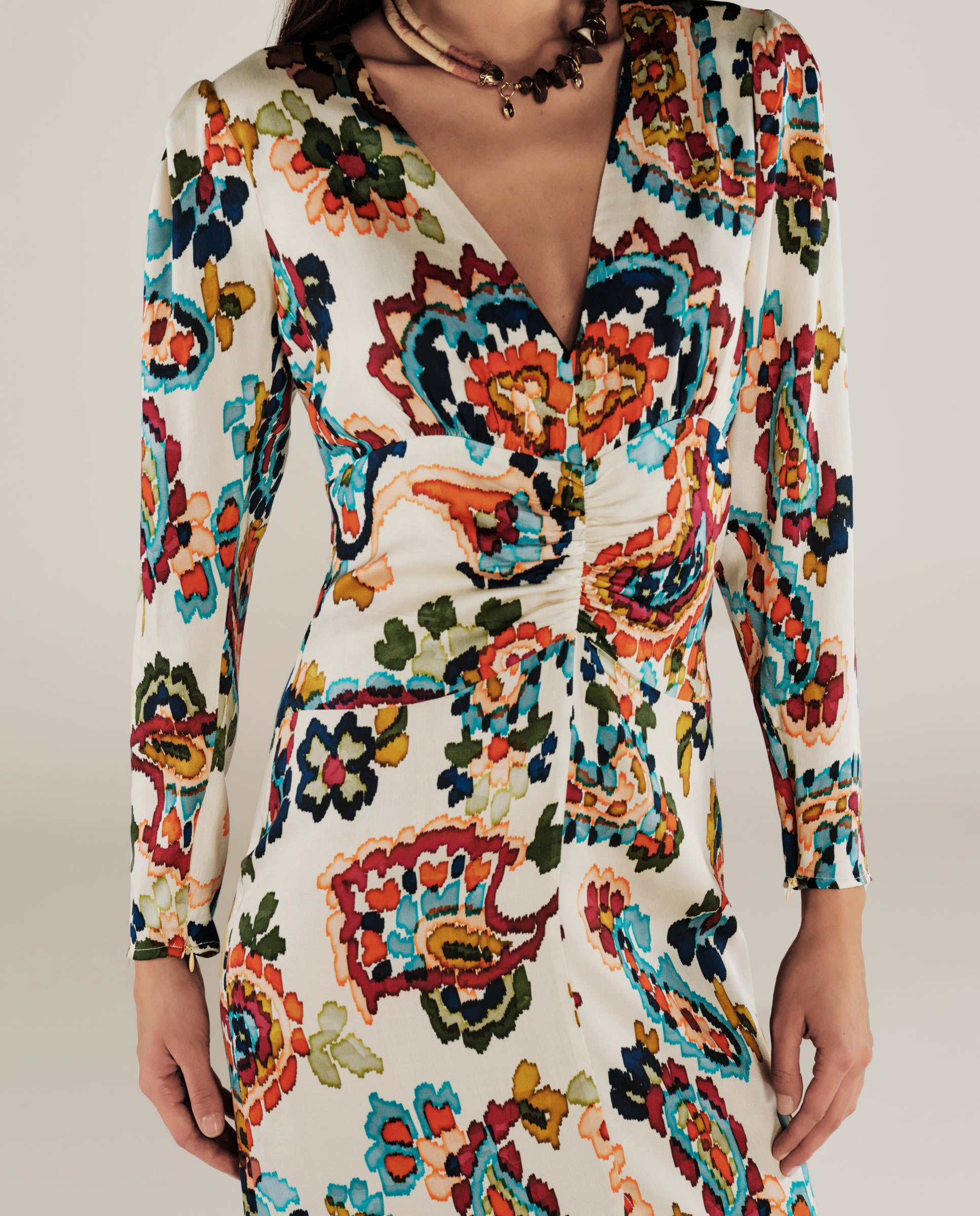 MARSIGLIA | Beige Multi Print Midi Dress