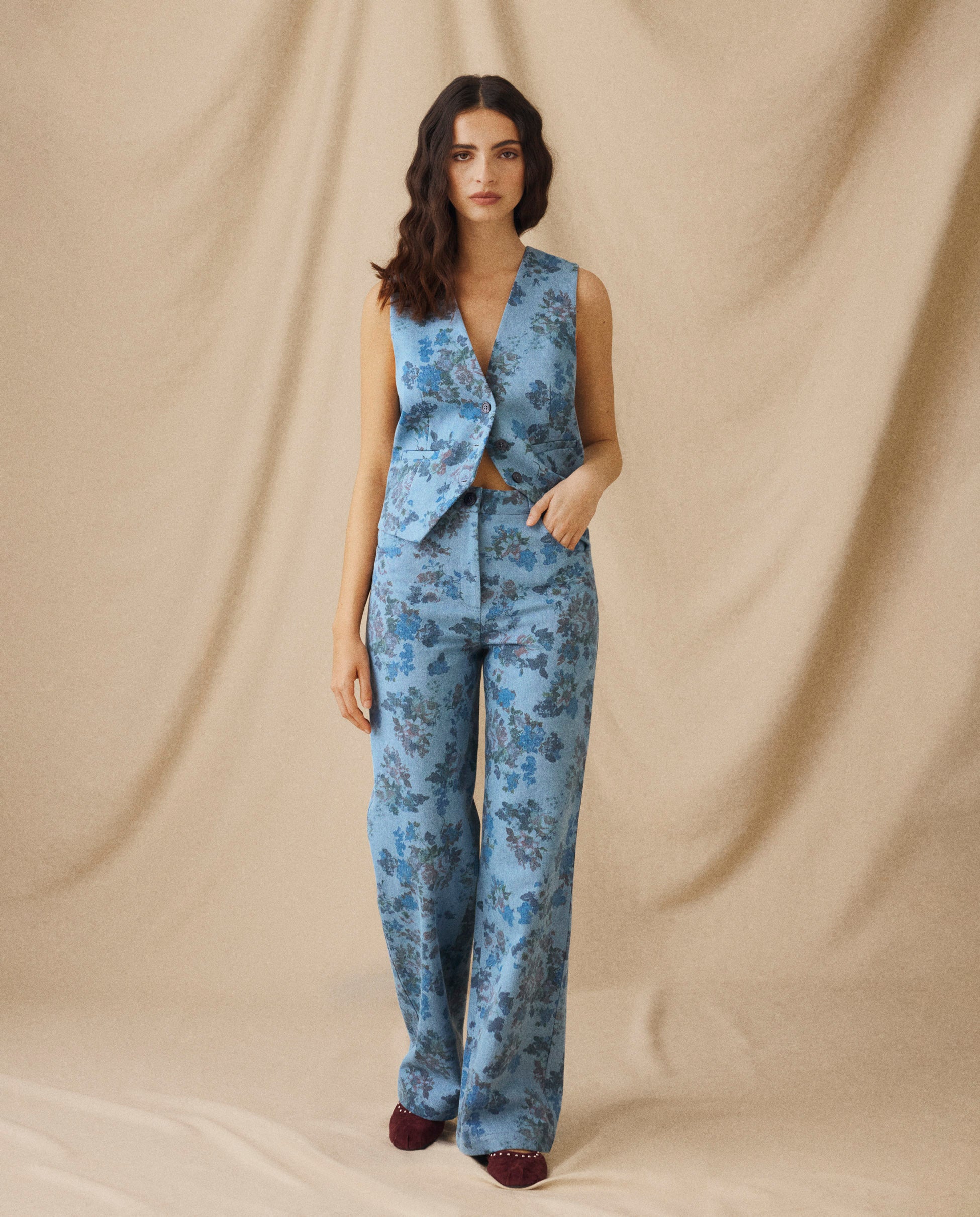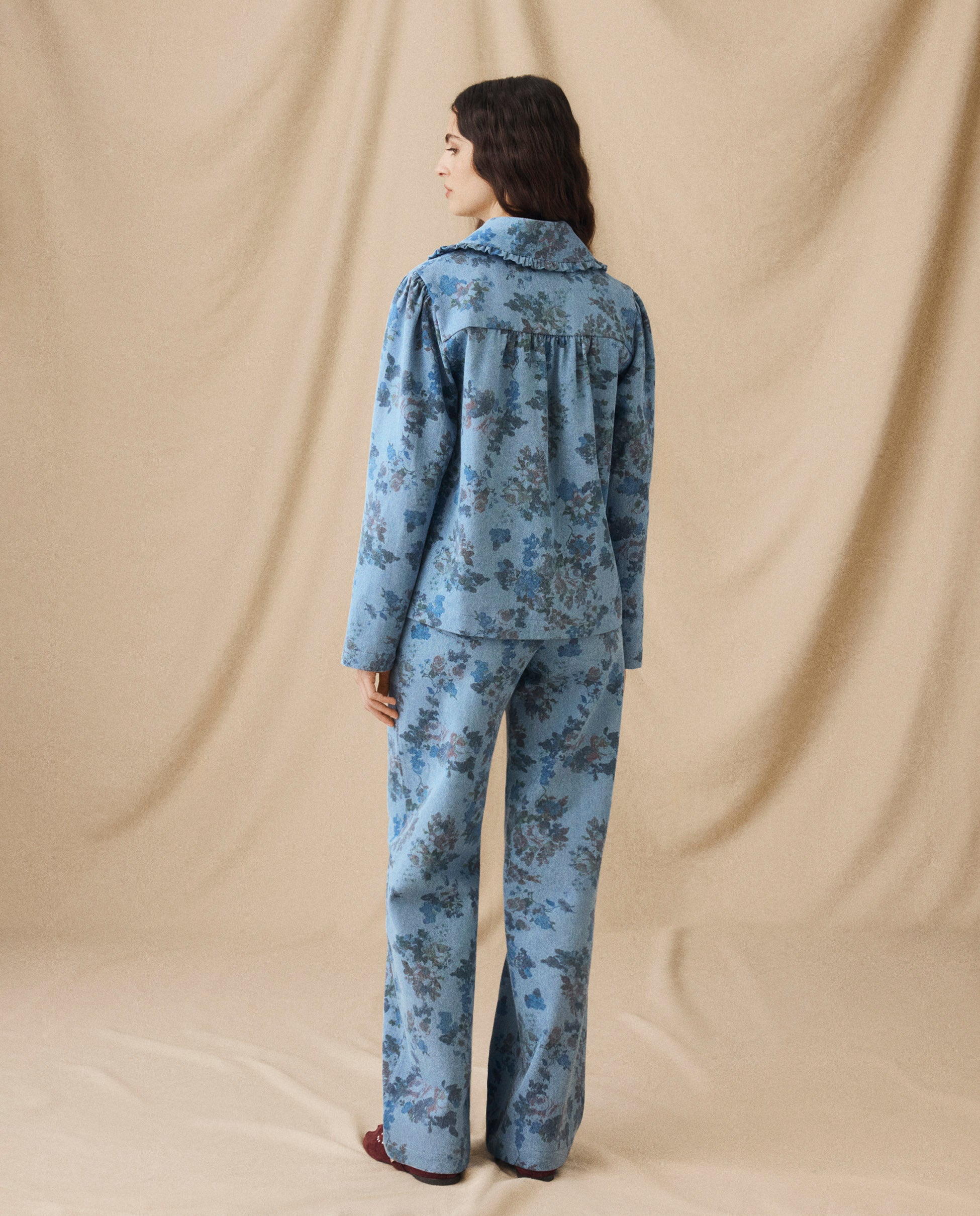 • All-over floral print in soft blue tones