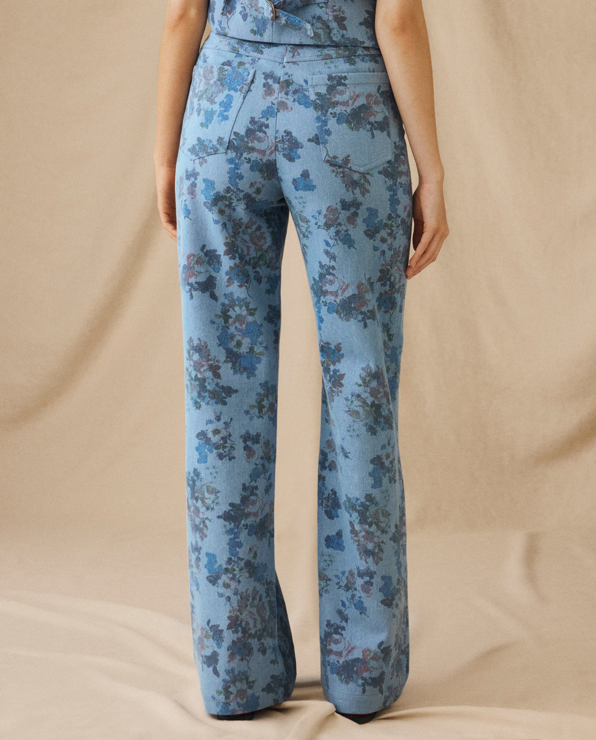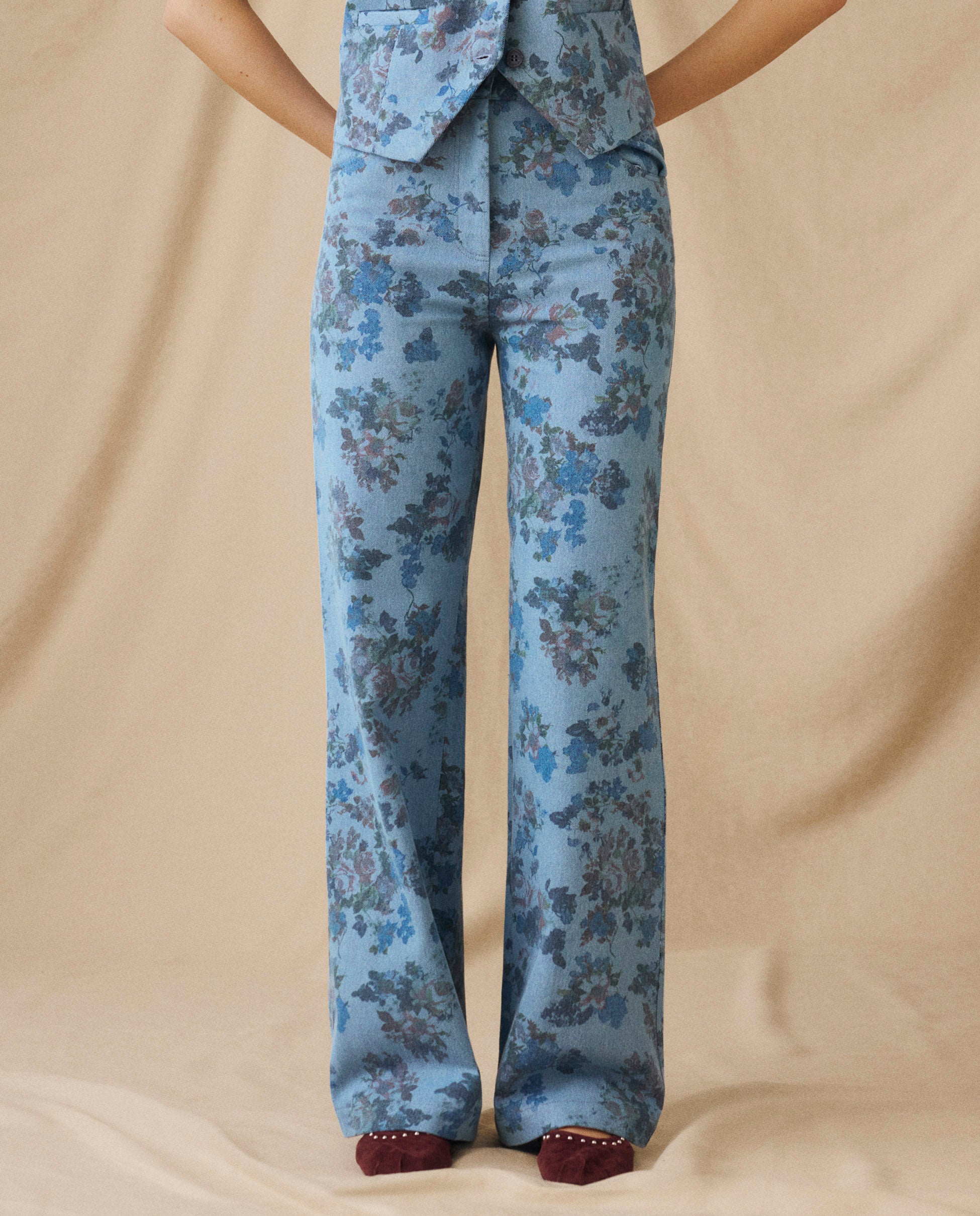 CONNIE | Blue Floral Printed Cotton Trousers