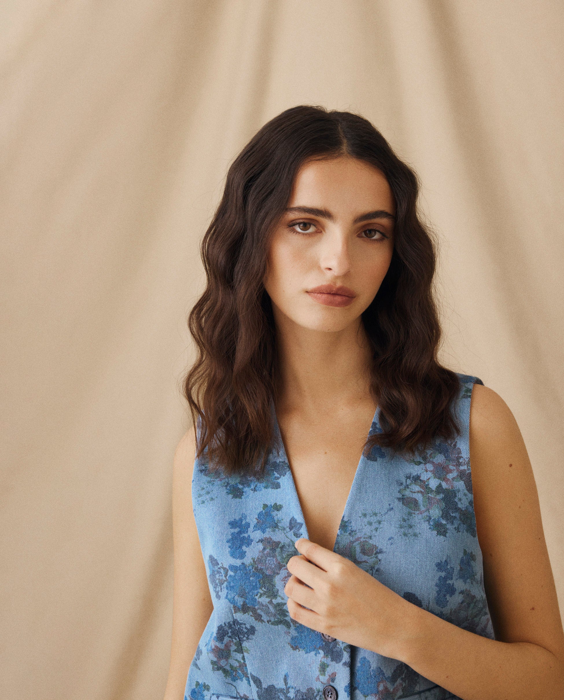 CONNIE | Blue Floral Printed Cotton Vest
