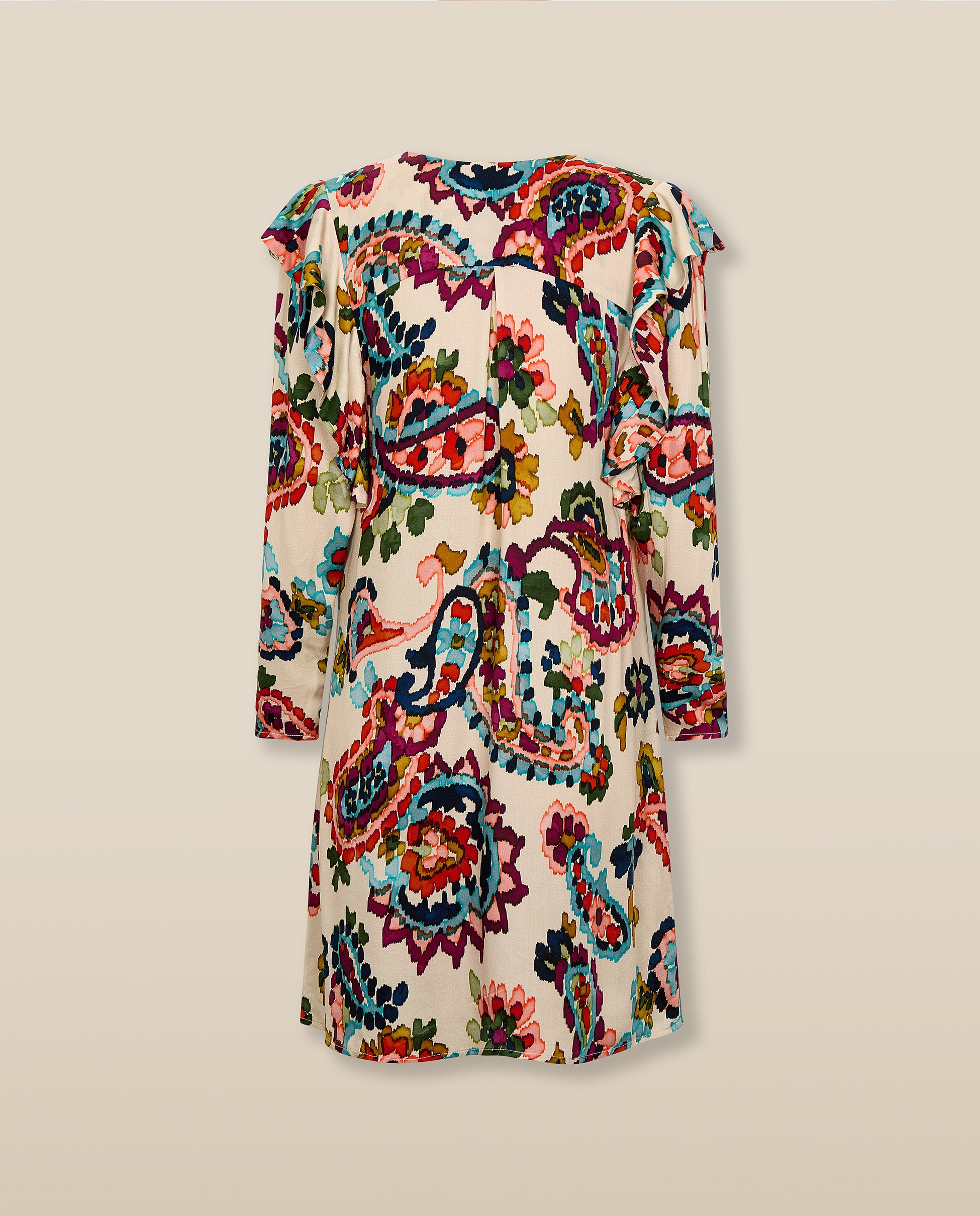 SALENA | Cream Multi Ruche Detail V-Neck Short Dress