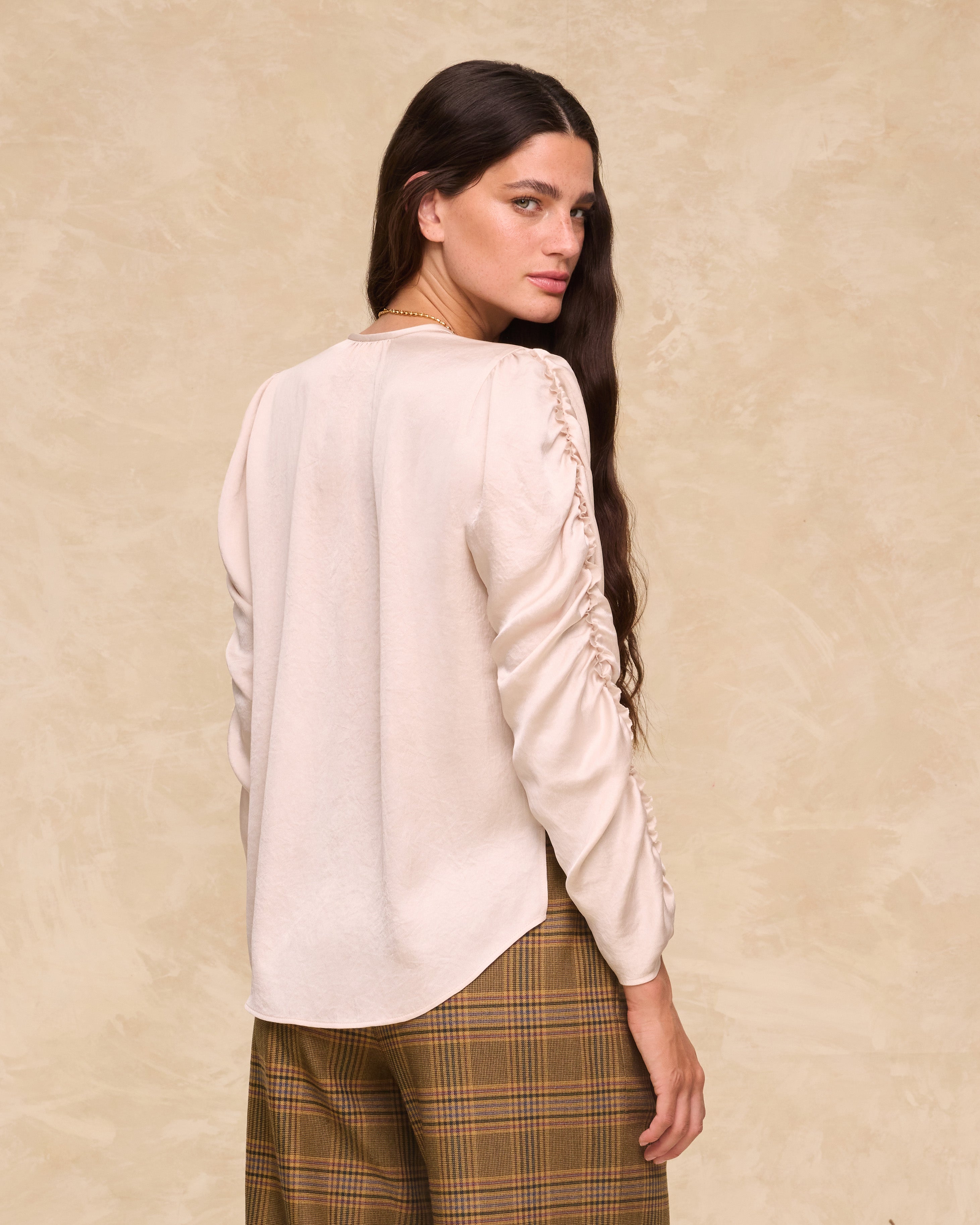 SANDRINE | Ecru Gathered-Sleeve Blouse