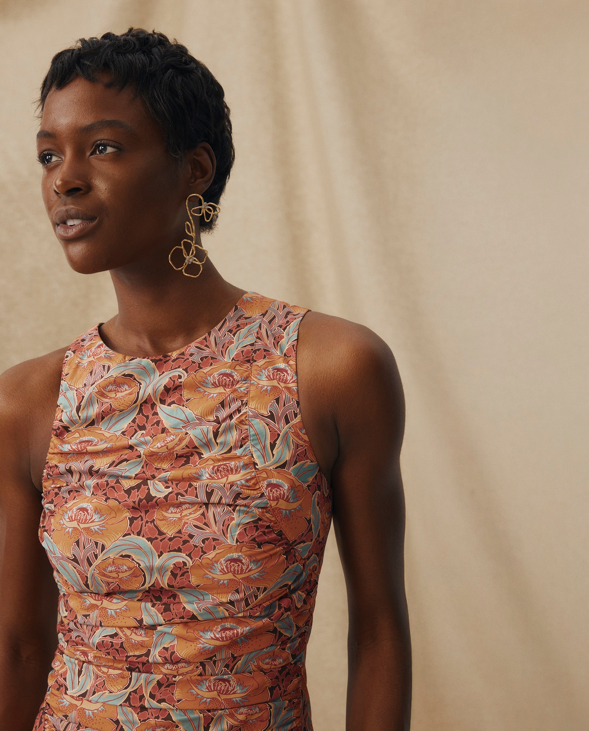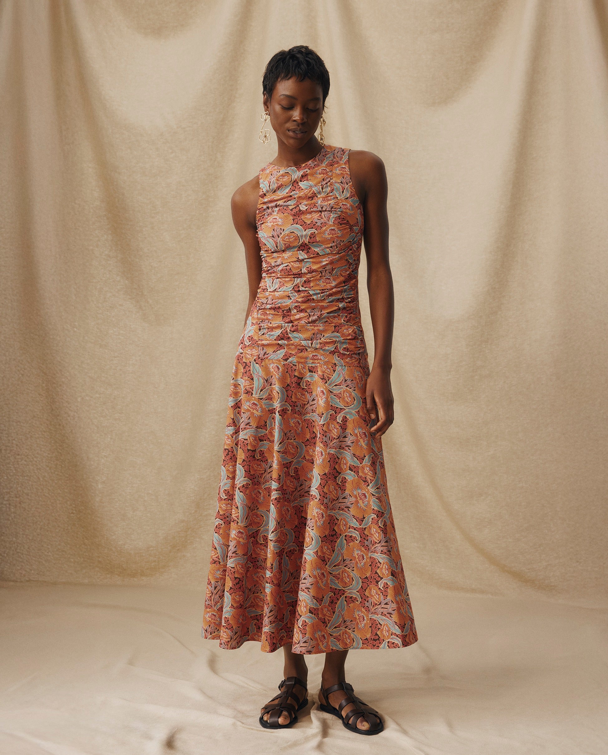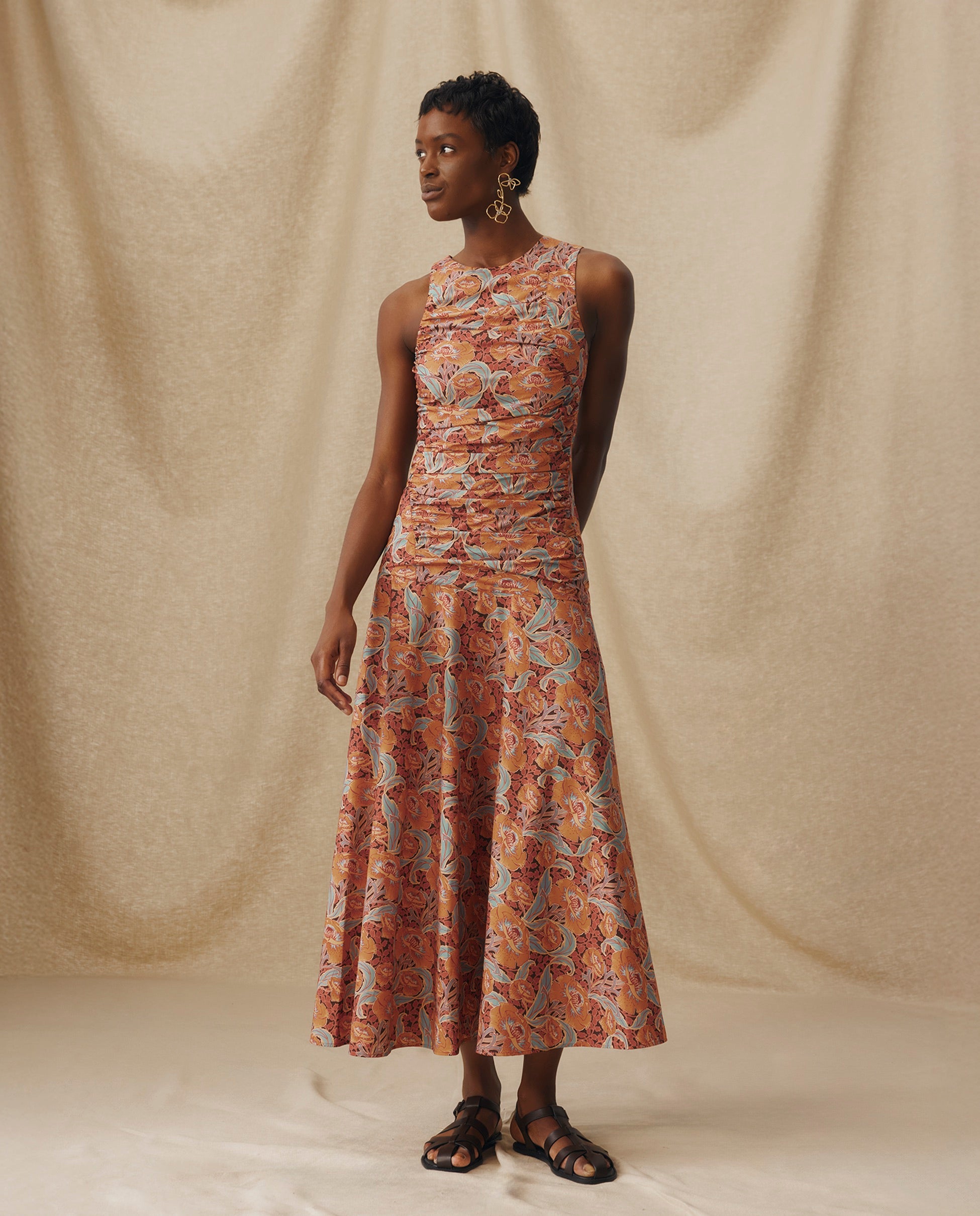 IRAMA | Terracotta Multi Liberty Floral Cotton Midi Dress