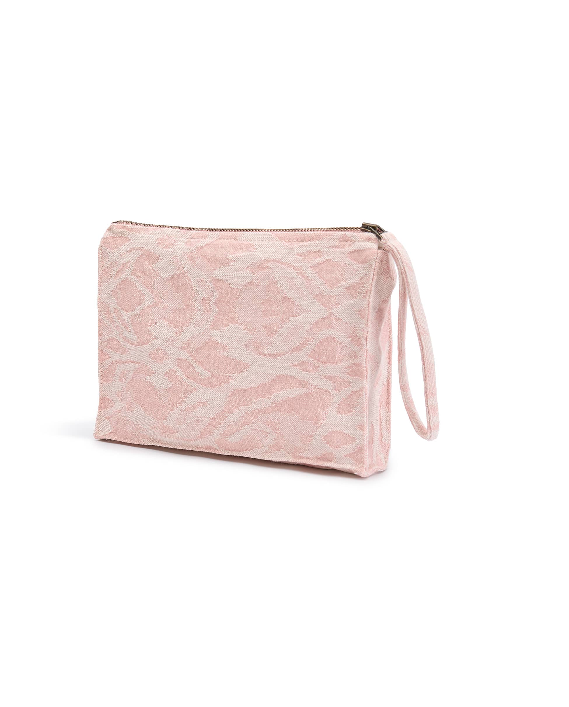 The Veronica toiletry bag in size S is made from pink cotton fabric. Its dusty-toned abstract print is elegant, feminine, and timeless. With a structured and convenient design, it’s perfect for those seeking a small, practical toiletry bag. Ideal for travel or everyday use, it features a durable zipper and a cotton-lined interior. This versatile piece is perfect as a toiletry bag or make-up pouch.